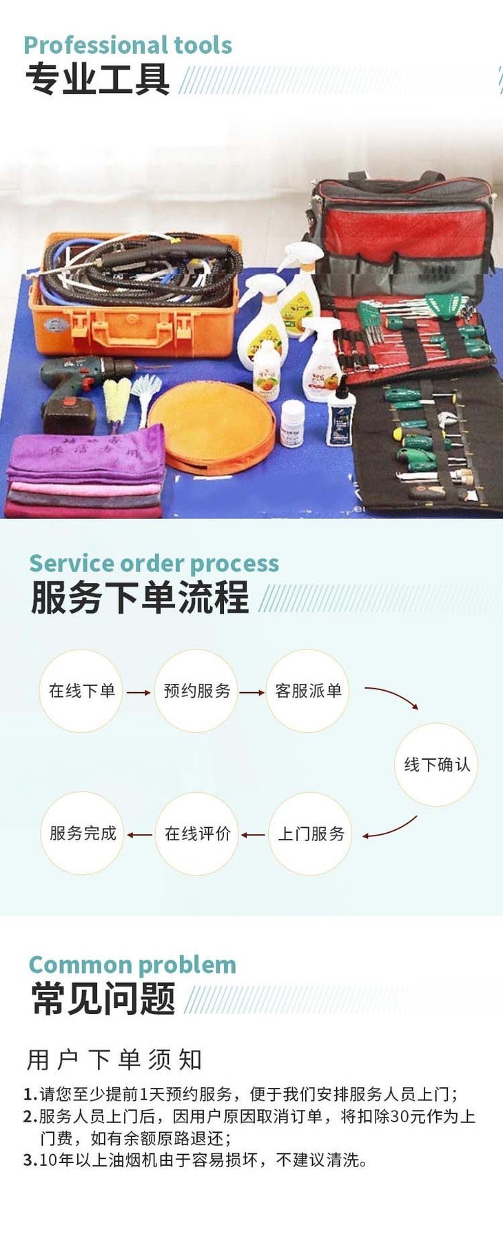 下单后24小时内会有客服联系,清洗服务需要提前1-2天预约!