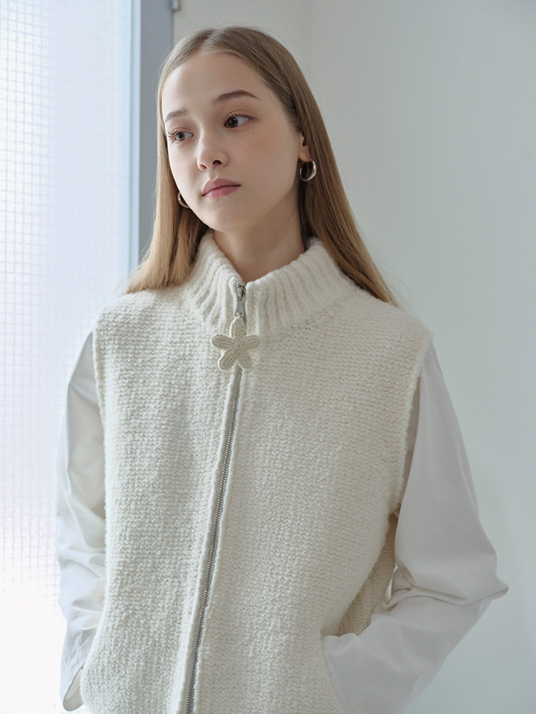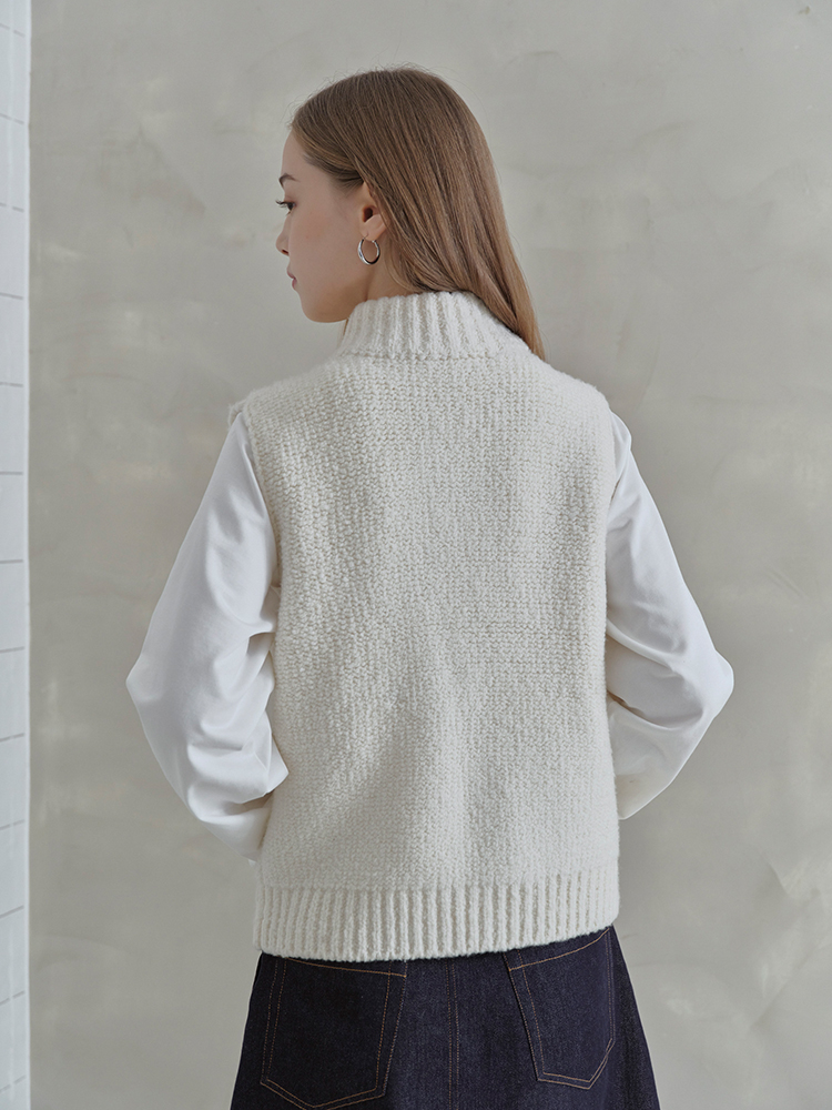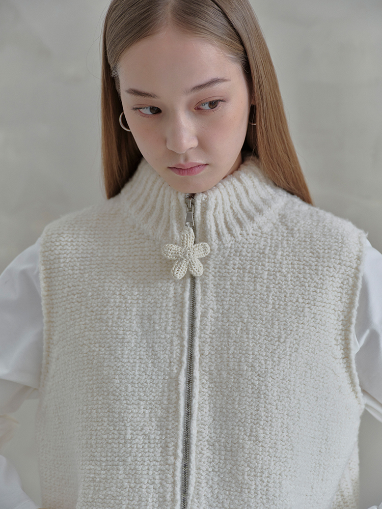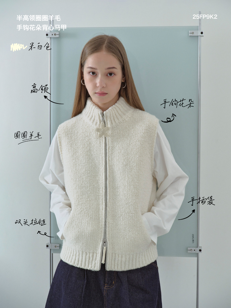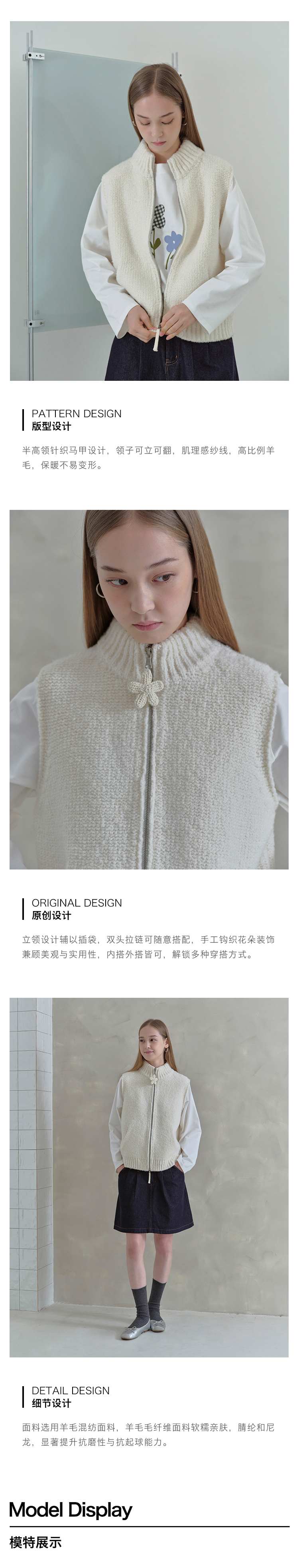 ForPoem 25/FW 原创半高领圈圈羊毛手钩花朵加厚针织背心马甲