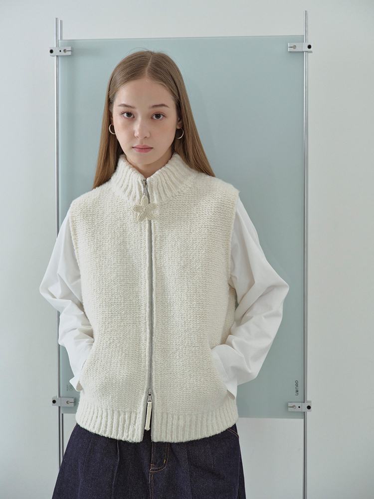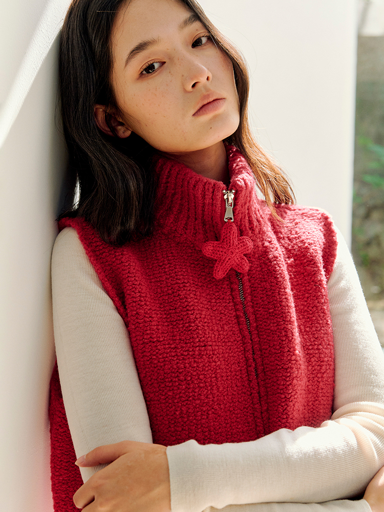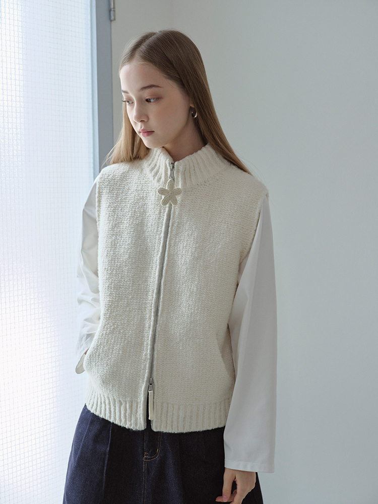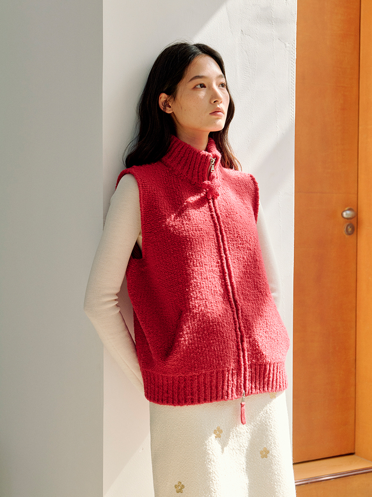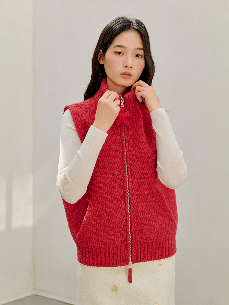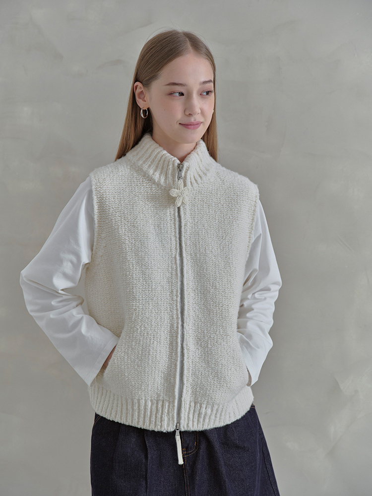 ForPoem 25/FW 原创半高领圈圈羊毛手钩花朵加厚针织背心马甲
