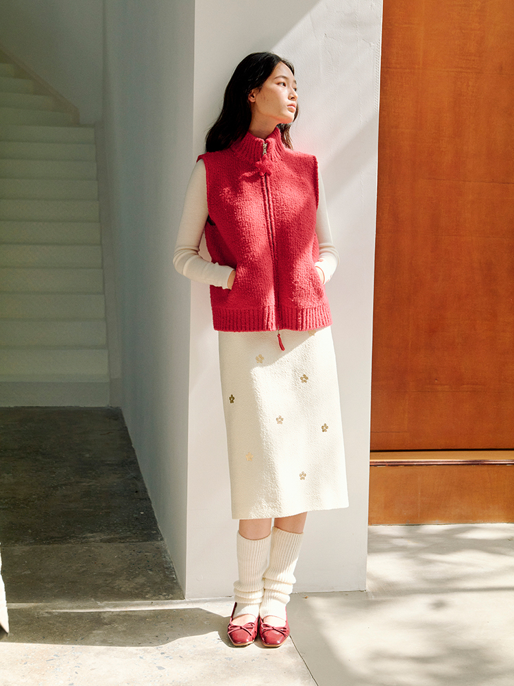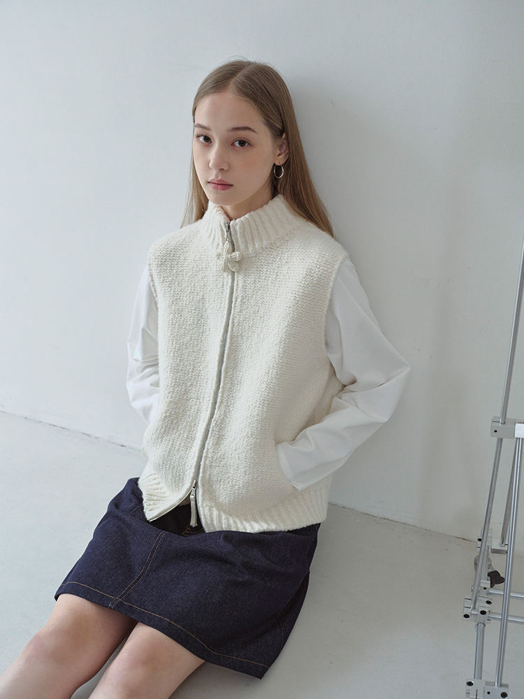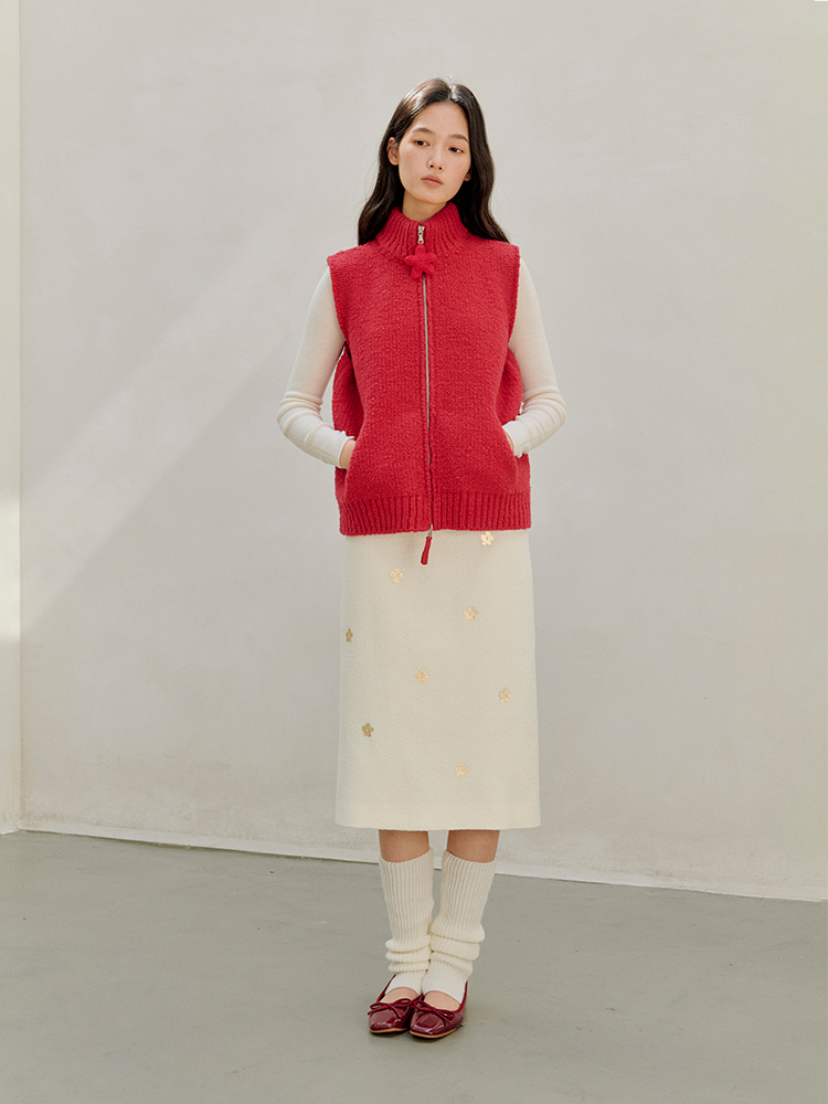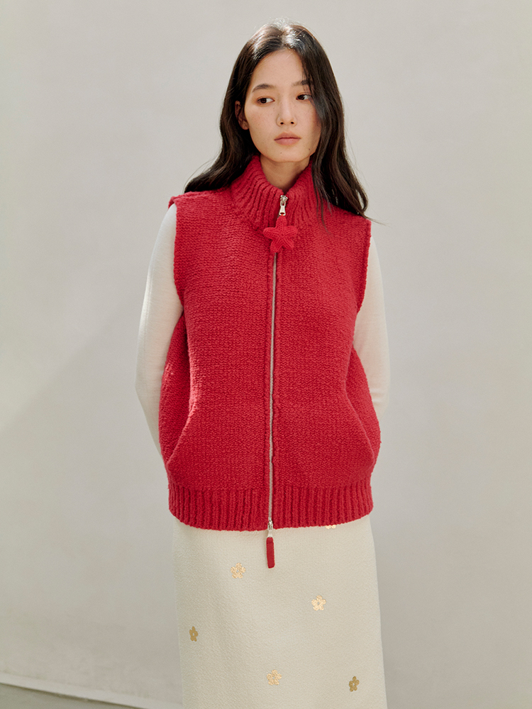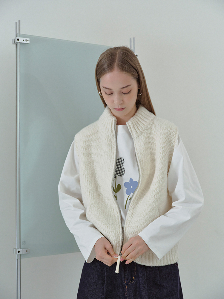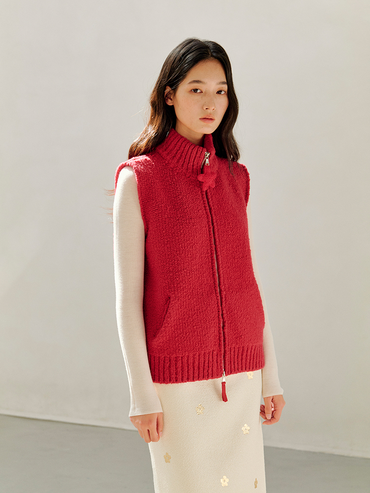 ForPoem 25/FW 原创半高领圈圈羊毛手钩花朵加厚针织背心马甲