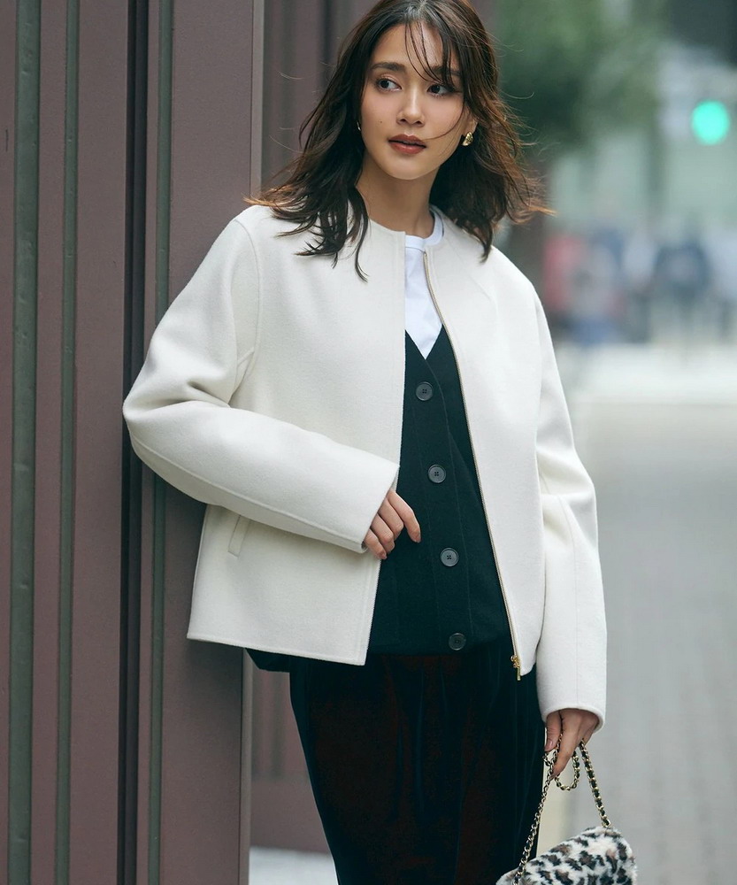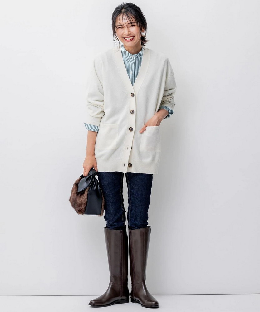 23区日系春季通勤宽松羊毛棉混纺圆领套头二件套针织毛衣商场同款