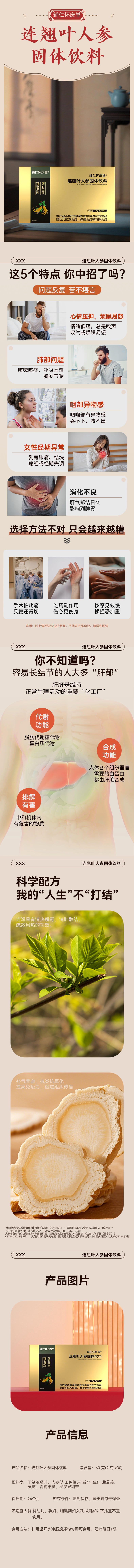 【科学配方】辅仁怀庆堂 连翘叶人参固体饮料 60克(2克*30袋)/盒 匠心品质