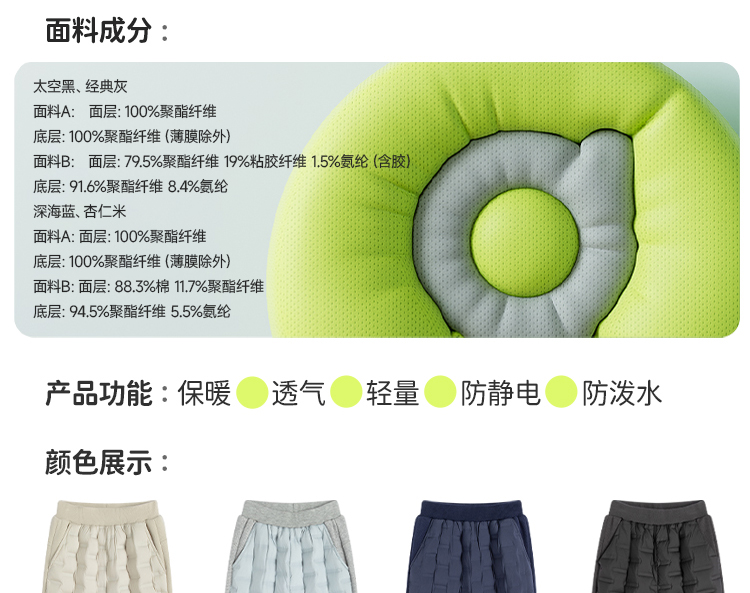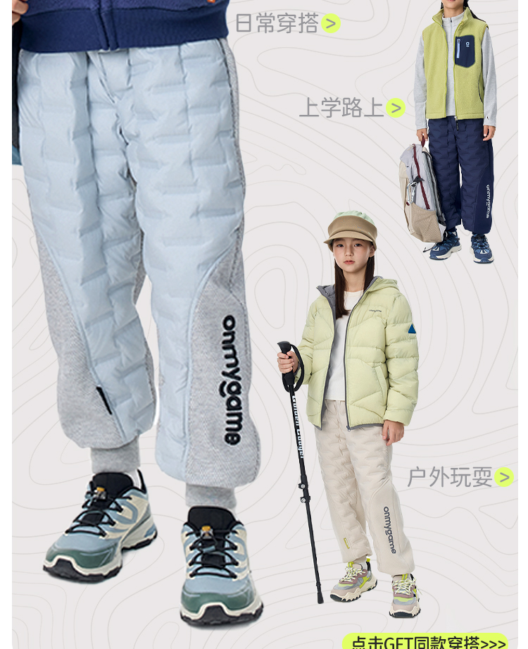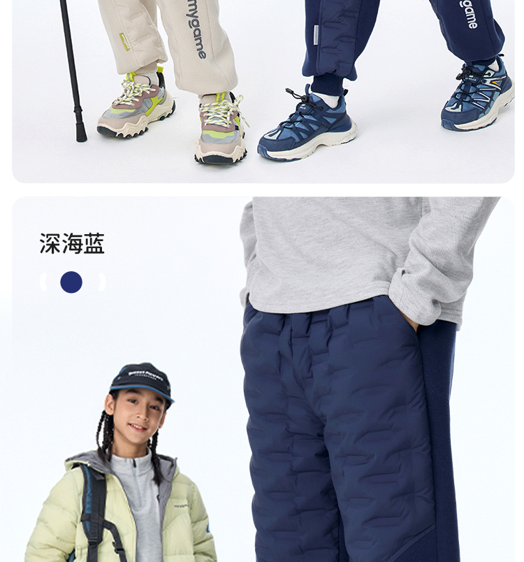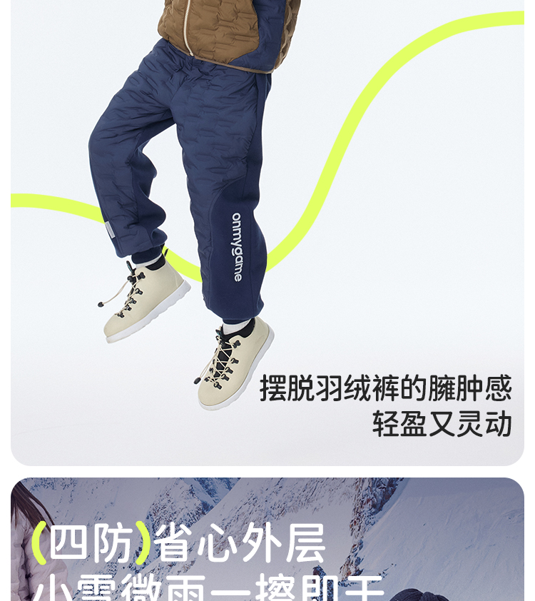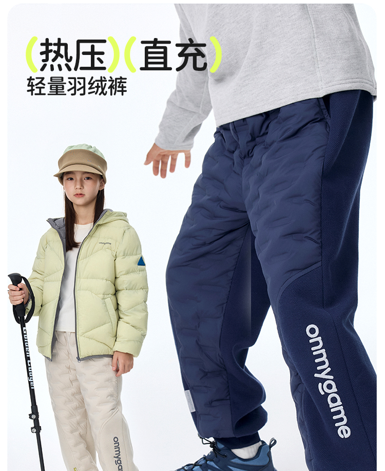 onmygame轻暖系列儿童羽绒裤秋冬男童三防运动裤保暖裤子