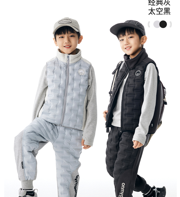 onmygame【轻暖系列】儿童三防羽绒马甲秋冬装男女童背心运动外套