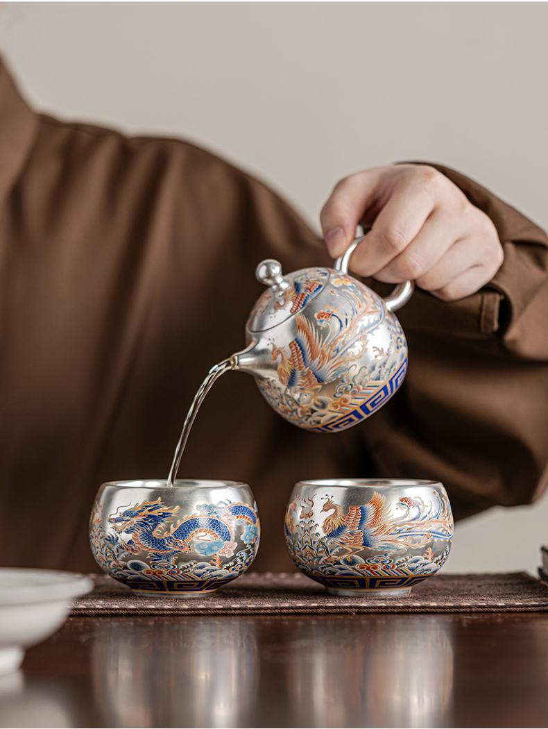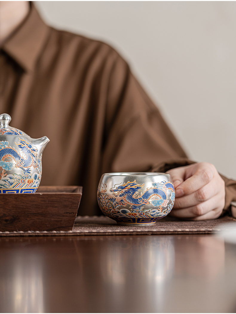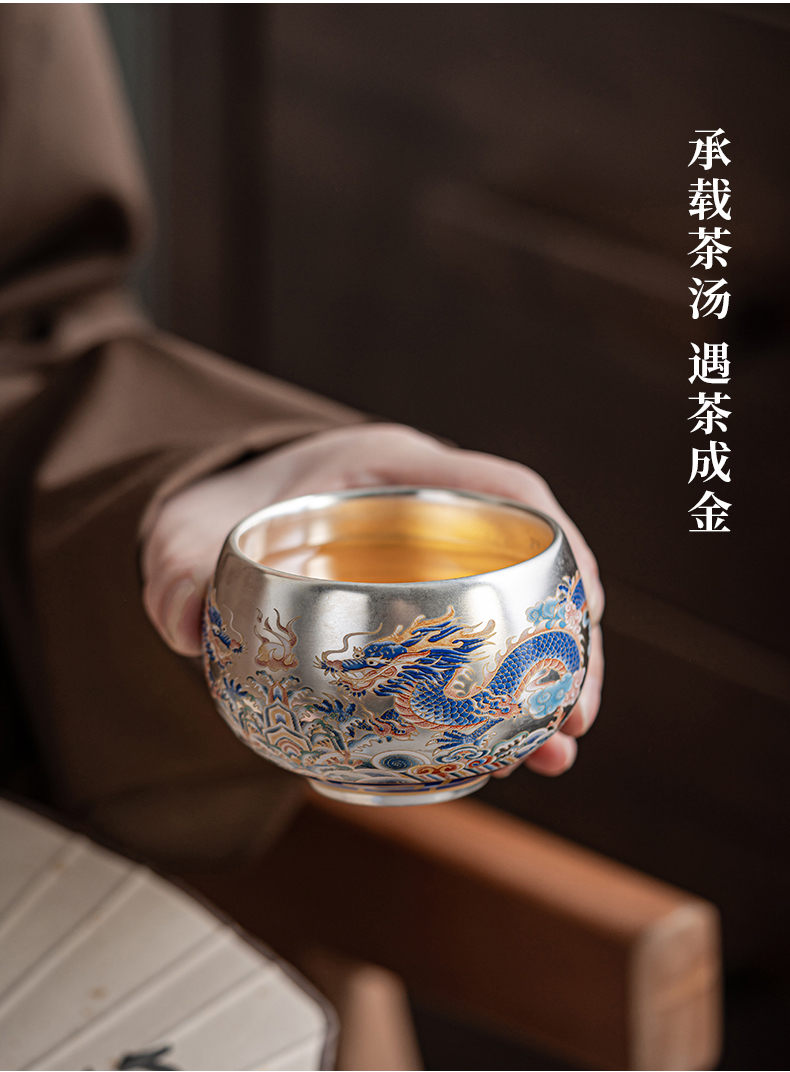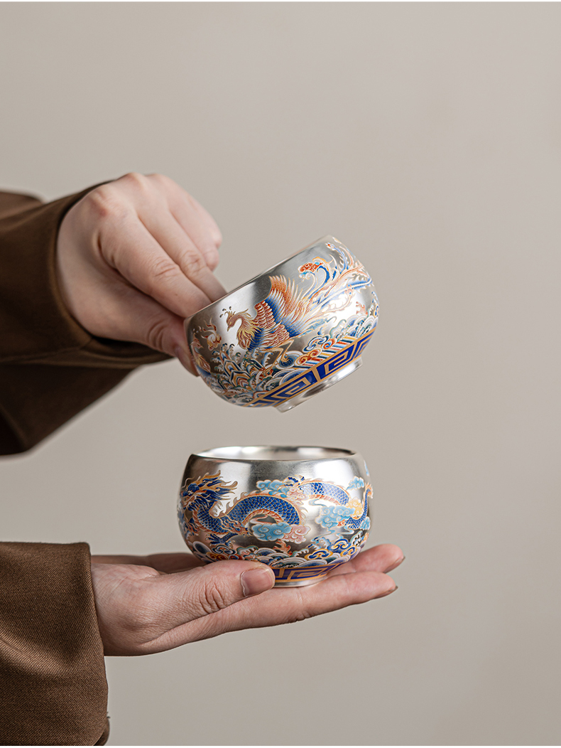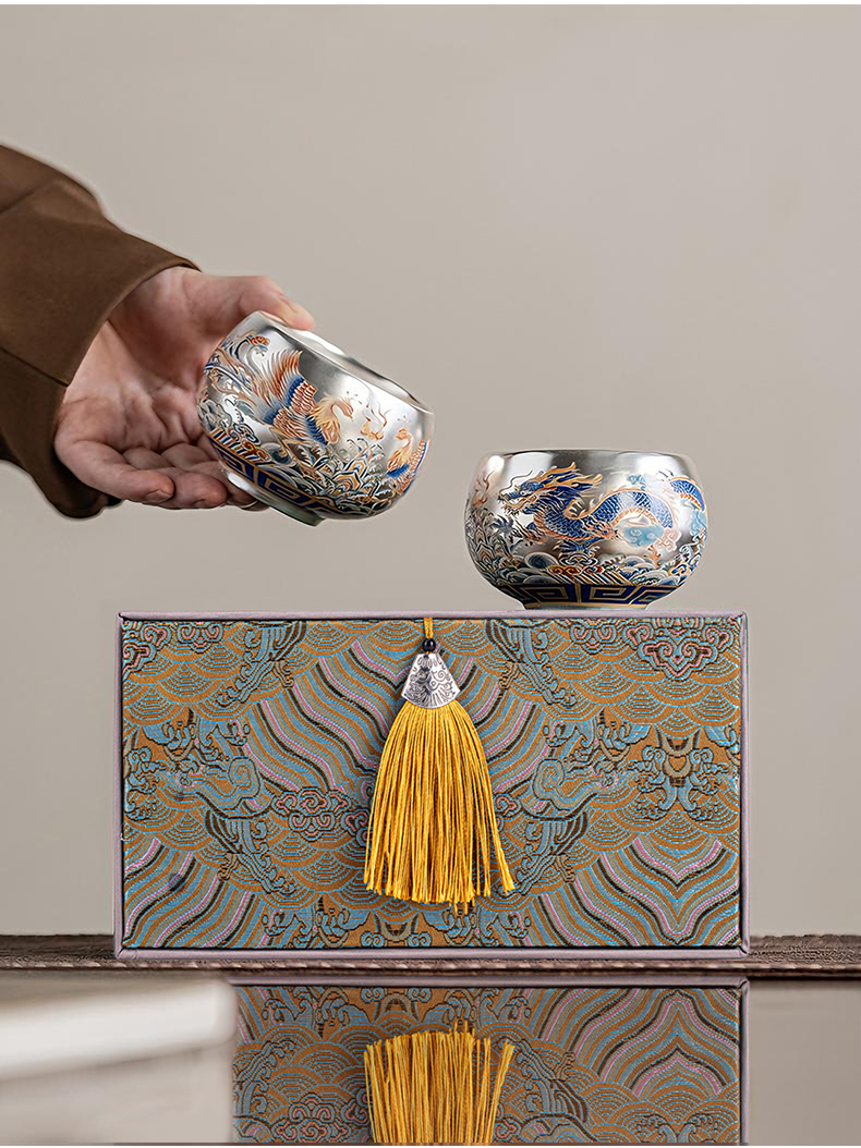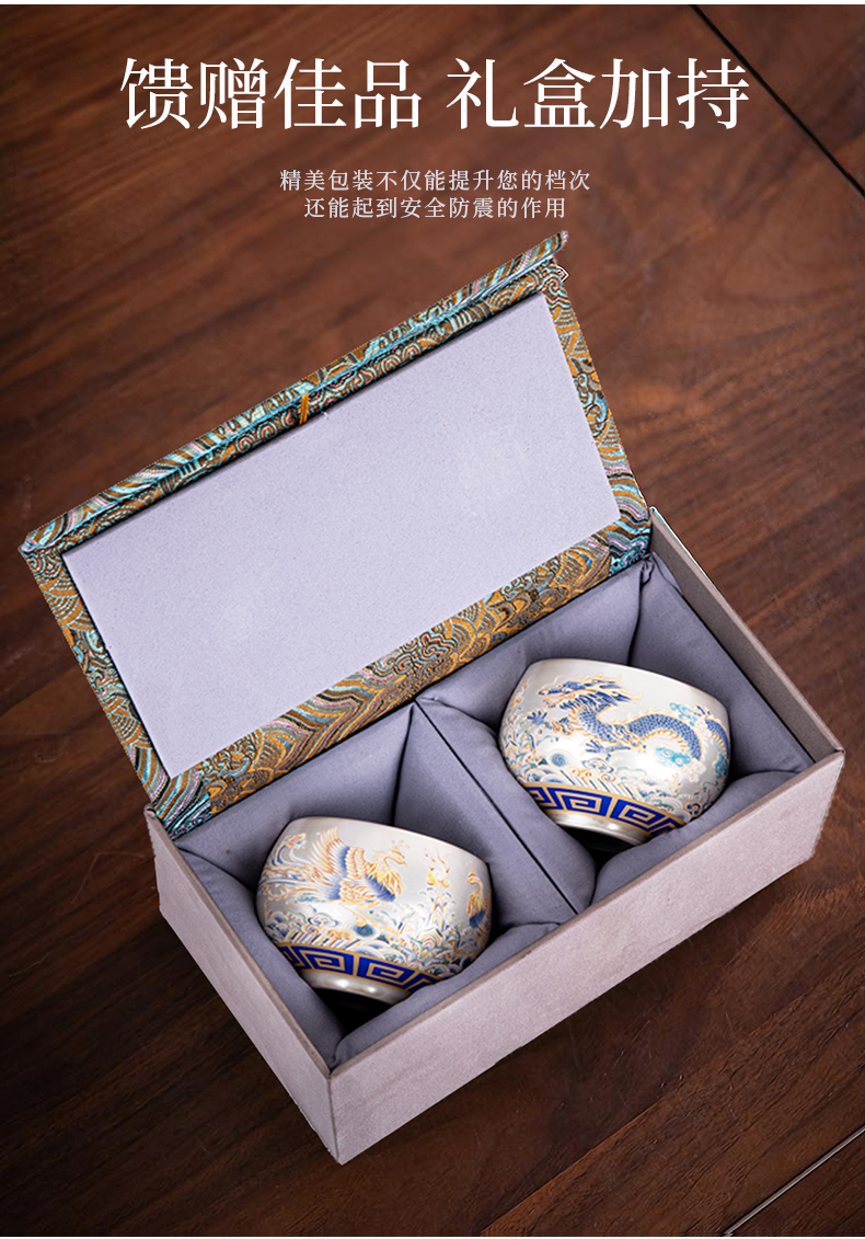 朕的潮代·龙凤对杯茶具礼盒,非遗传承 瓷胎鎏银技艺 胎质细腻 图案精美 馈赠佳品 收藏茗器
