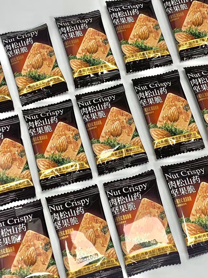 【商品名称】肉松山药坚果脆 【上架规格】约300g/箱(到手约34~36包) 【保质期】9个月 【生产日期】最新(随批次更新) 【储存条件】放置于阴凉干燥处,避免阳光直射 【发货地】福建漳州 【生产地】广东 【发货快递】中通 韵达 申通 邮政随机 【不发货地区】甘肃,宁夏,青海,新疆,西藏,内蒙古,港澳台 【加运费地区】北京,上海+1元/件 【发货时效】72小时 【售后规则】 1、食品类不支持7天无理由退换货 2、若收到产品有质量问题或者破损少件,请签收24小时内对产品拍照+快递箱面单照片联系售后处理 3、个人口味问题不在售后范围内 【拦截/拒收/退货扣费】扣除4元