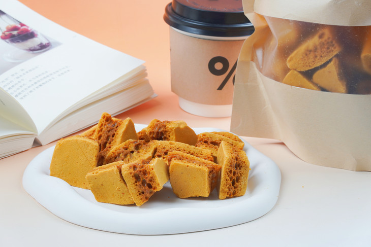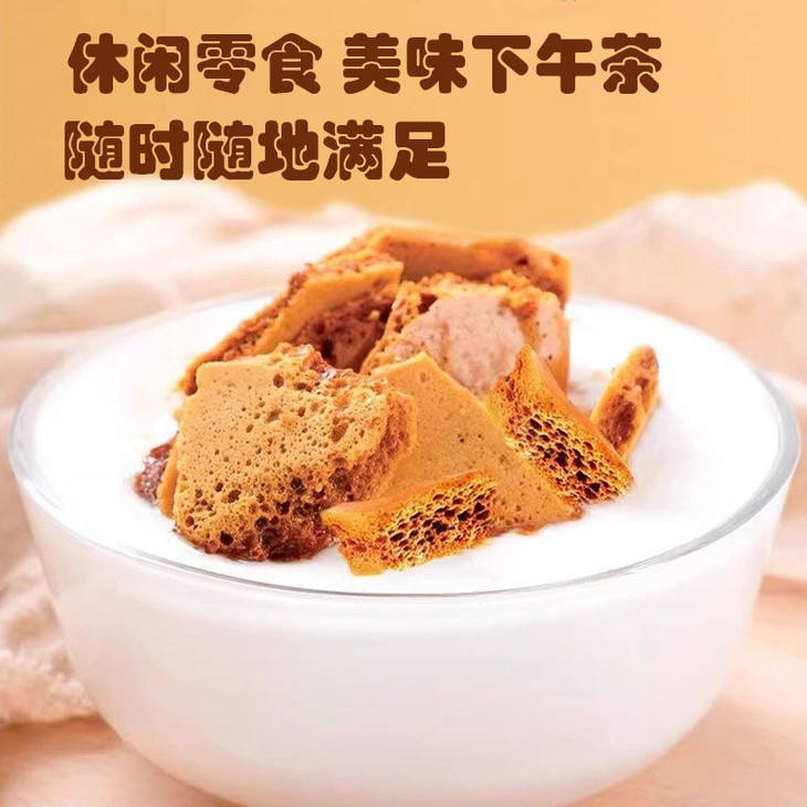 甜度也就奶茶五六分甜的样子😻 多亏小苏打造就的疏松蜂窝结构😋 轻咬一口“咔哧”脆 浓醇焦糖香一下子就把味蕾叫醒了 10秒扫光困意😎 清爽续航到下班!