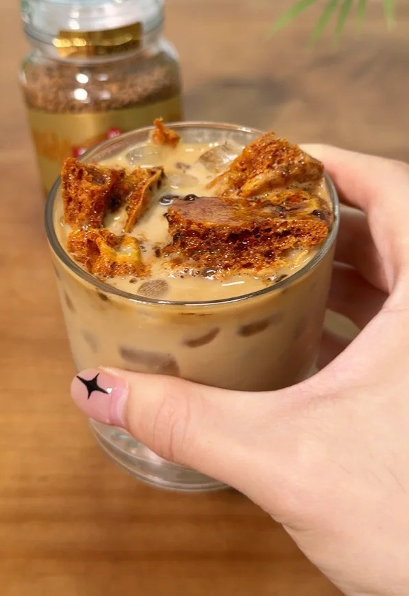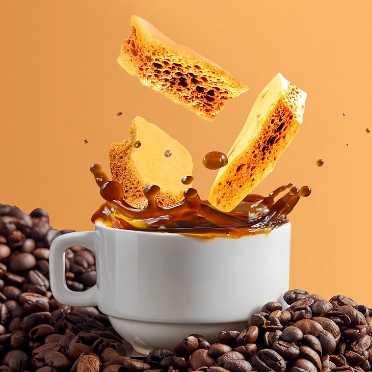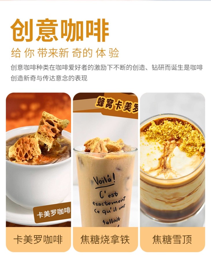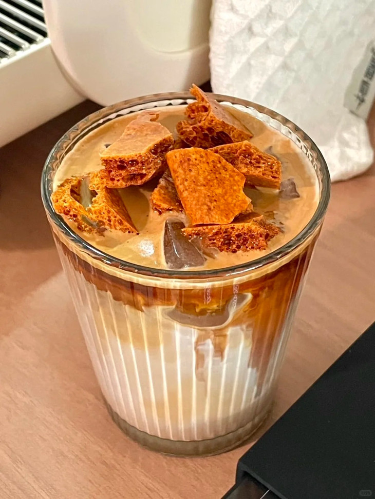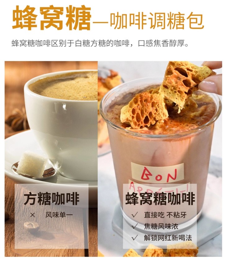 蜂窝状的疏松结构😲 热咖啡里秒溶 冷咖啡中慢慢释放焦香🥰 既能中和苦味 又能添上一层醇厚焦糖味 喝着就像自带焦糖布丁的顺滑感😊 在家随手就能调出咖啡店级别的焦糖拿铁。