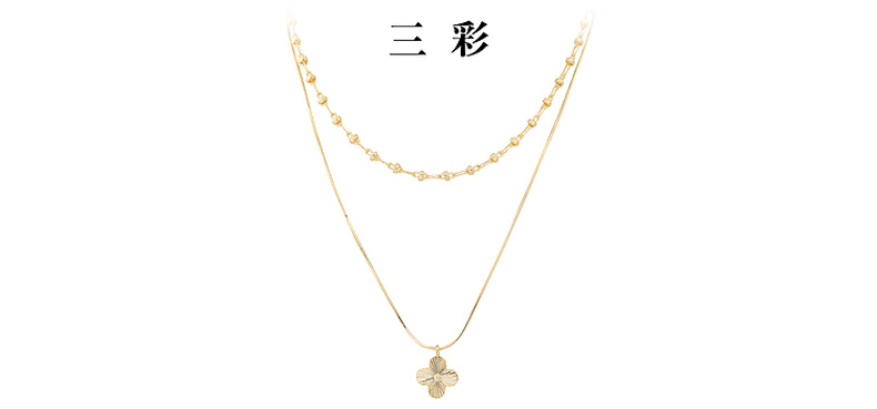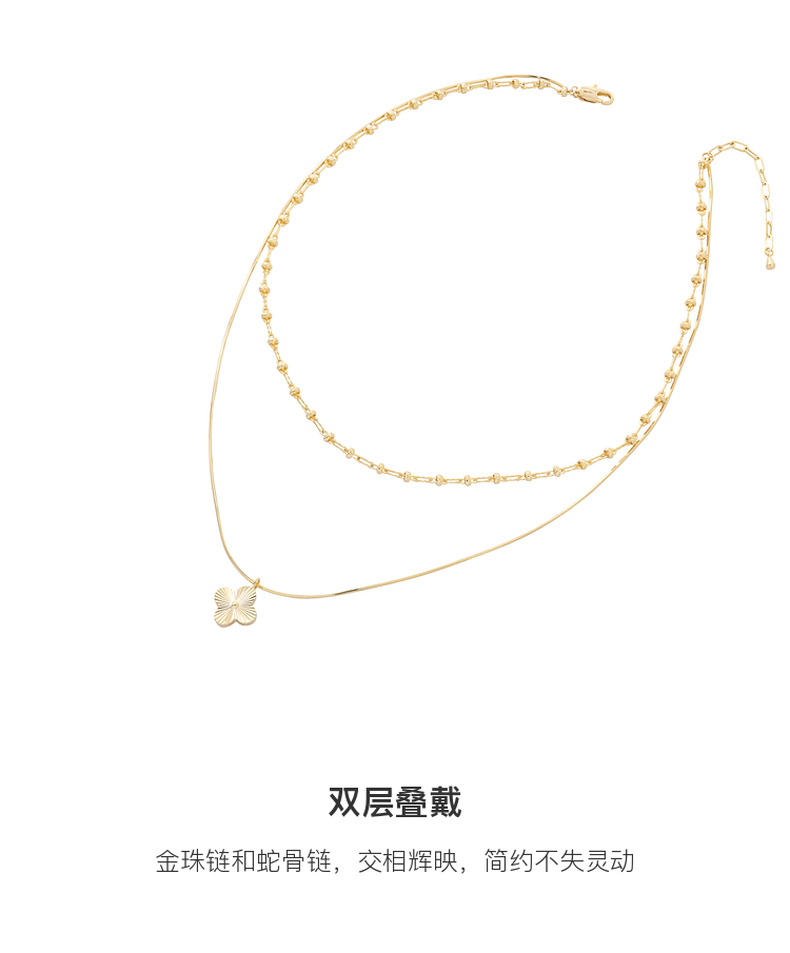 【东方系列】三彩2025新款车花四叶海棠项链双层叠戴蛇骨链浪漫