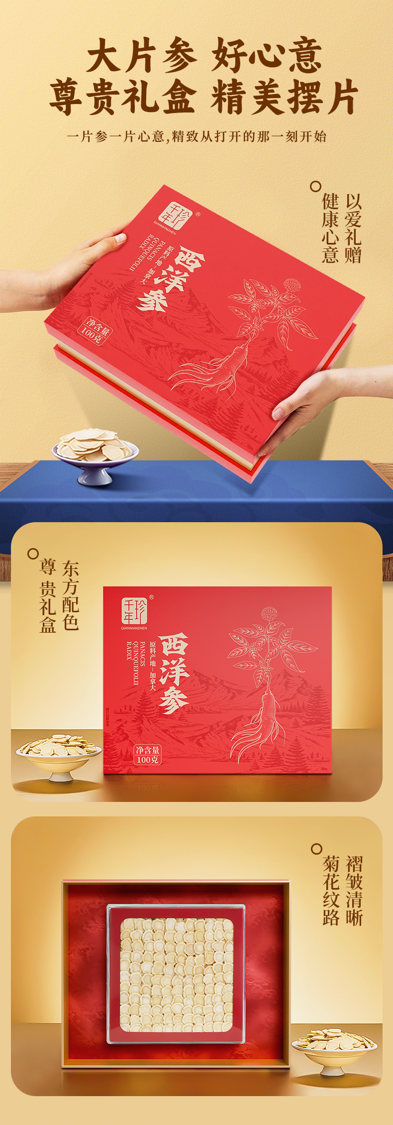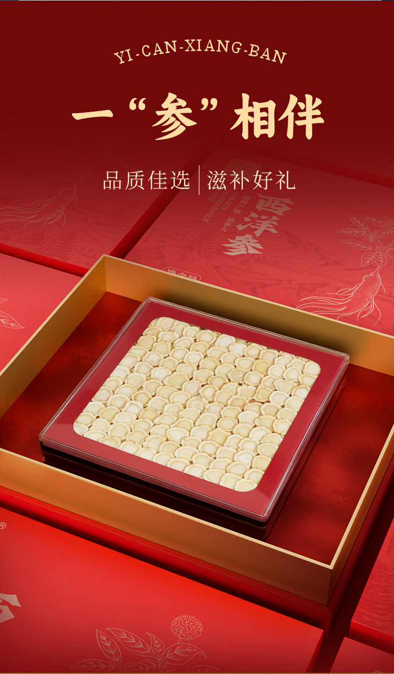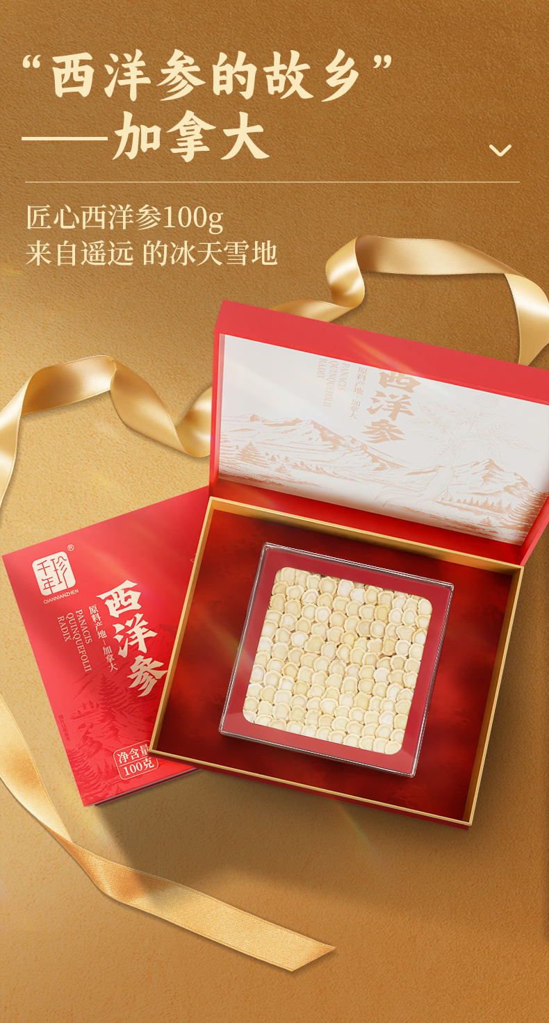 加拿大进口西洋参方礼盒100g/盒(1.6cm厚)摆片