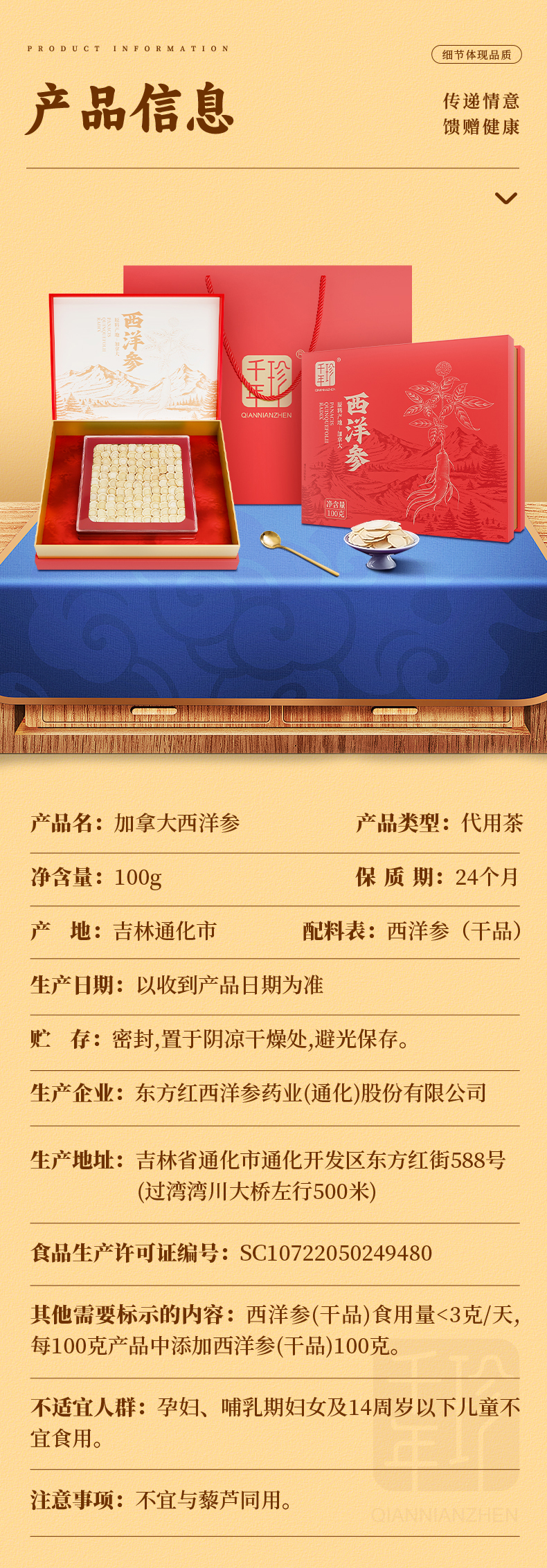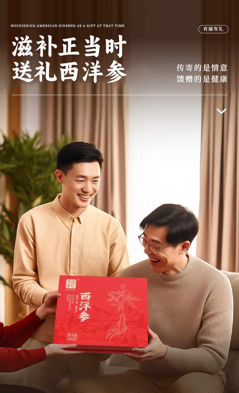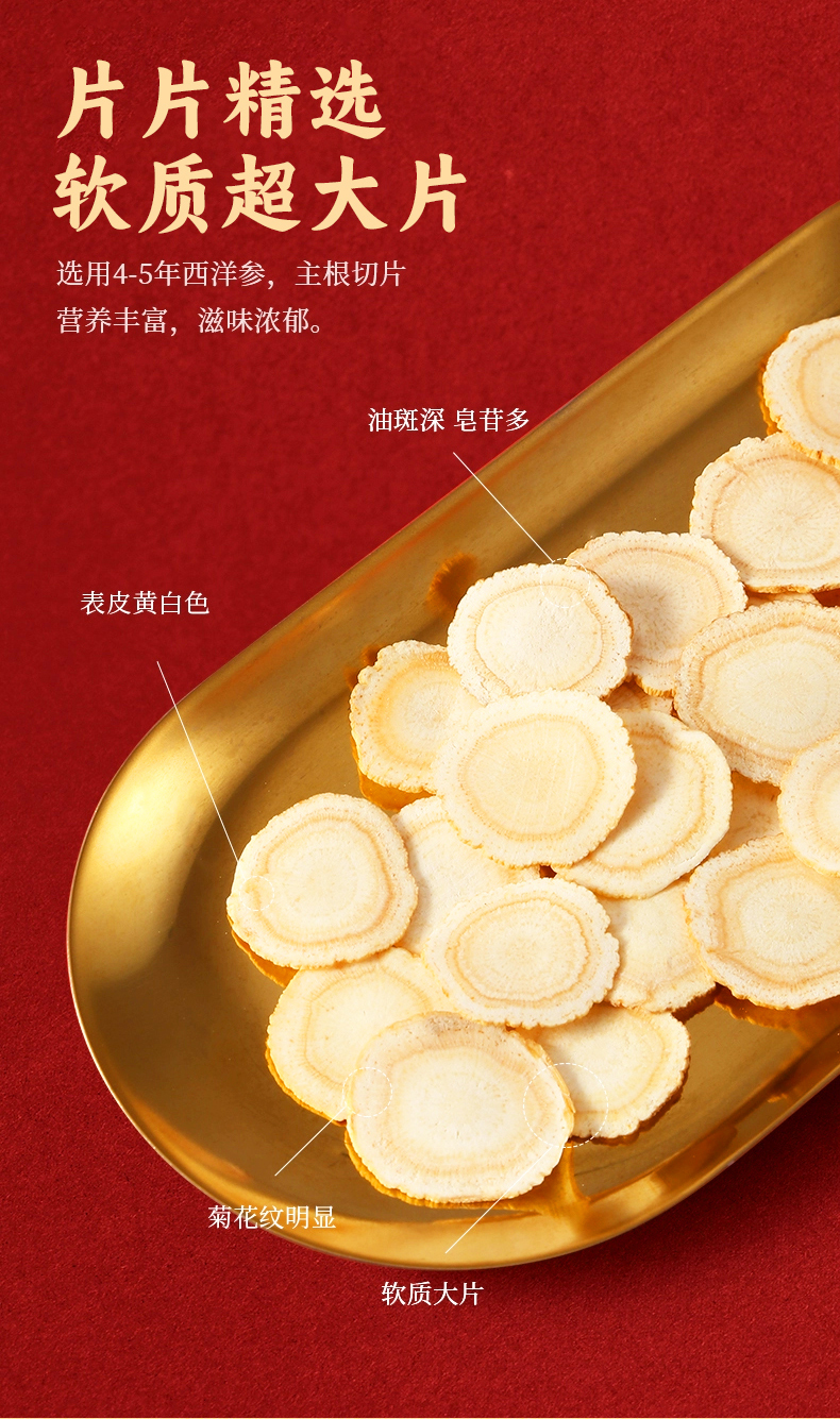 加拿大进口西洋参方礼盒100g/盒(1.6cm厚)摆片