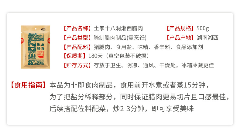 【湘西腊肉特产】唐人神 土家十八洞湘西腊肉 500g