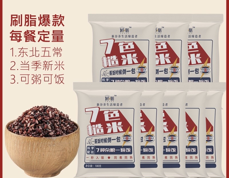 【品名】十六膳七色糙米 【规格】100g*8袋/100g*18袋 +送饭盒1个 【生产日期】近期 【保质期】12个月 【产地】黑龙江 【发货地/快递】哈尔滨等多仓发货/韵达 中通 【发货时间】72小时左右 【不发货地区】新疆 西藏 疫情地区以出单号为准 【售后标准】不支持7天无理由退换货 保存方式:常温保存,避免阳光直射及高温潮湿,开封后请尽快食用。