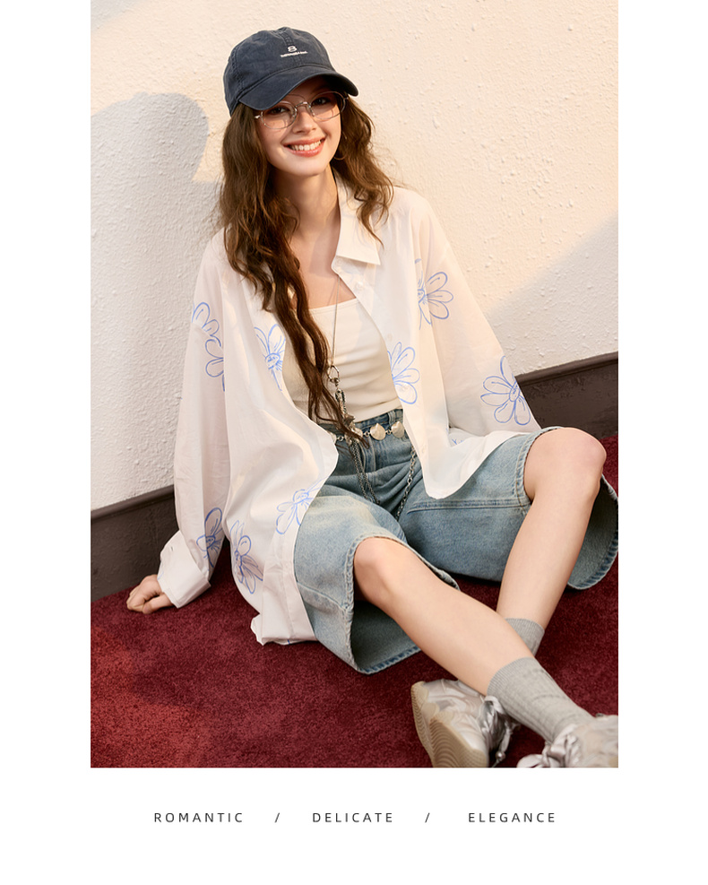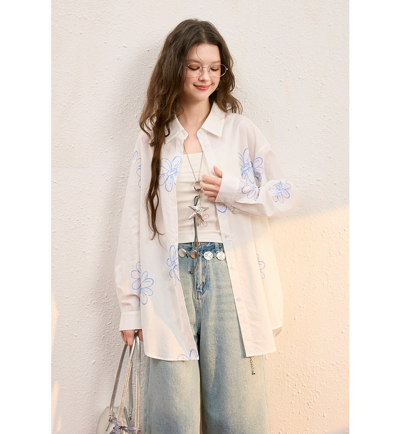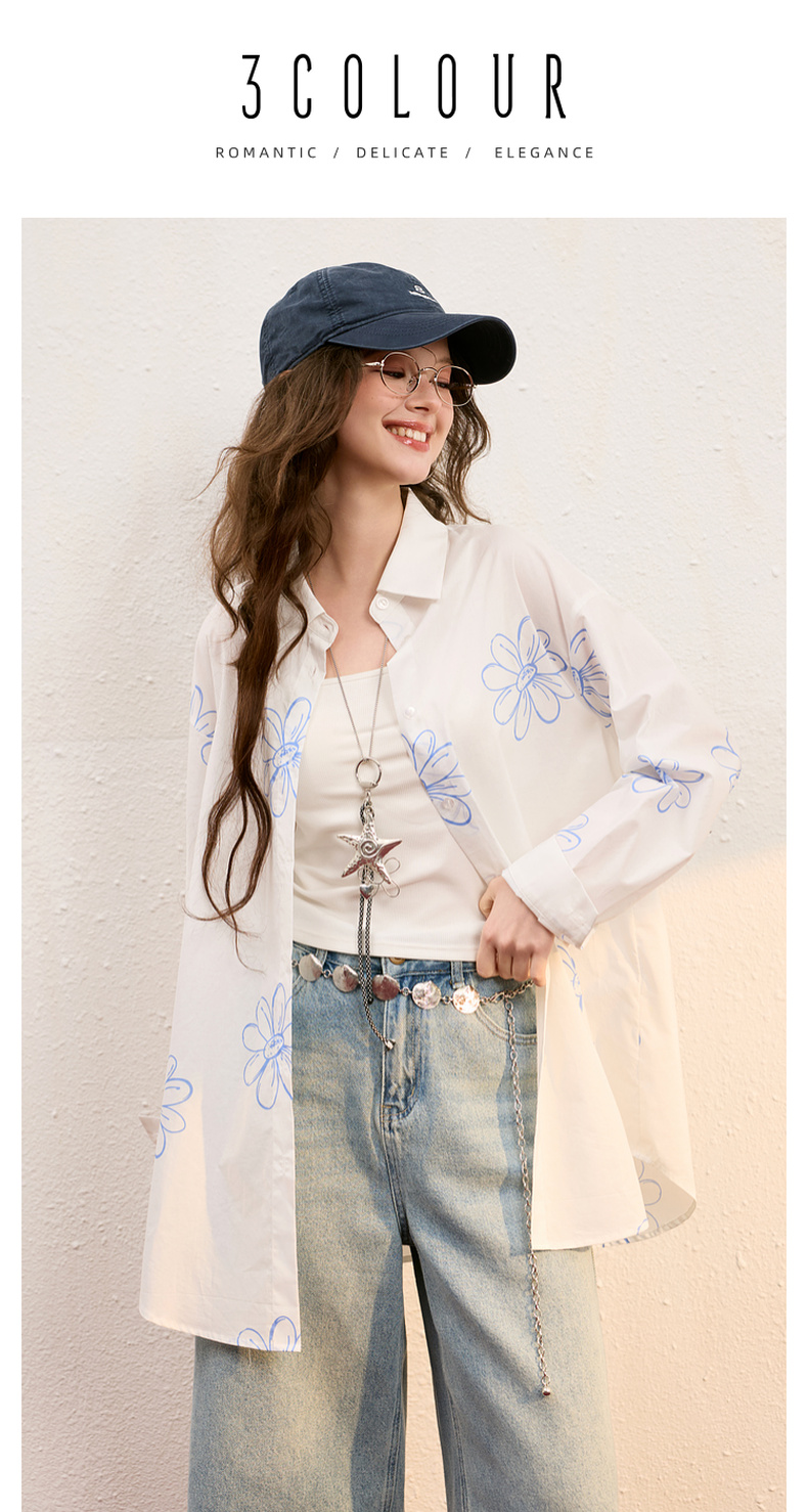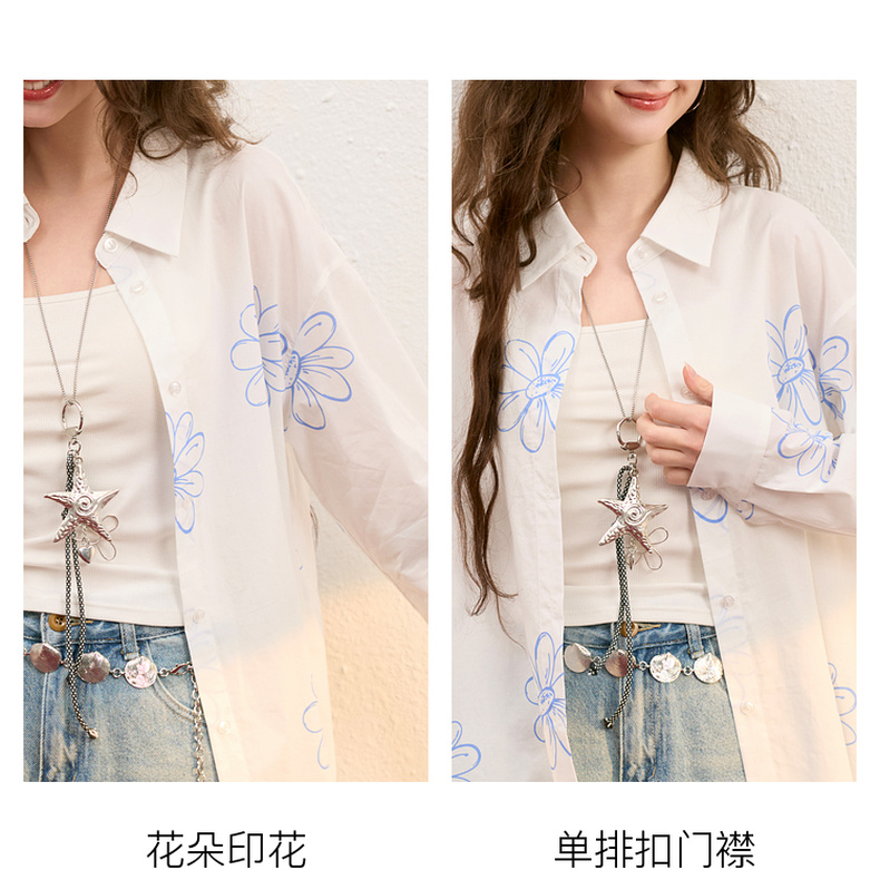 【100棉】三彩独醒2025秋季新款印花衬衫宽松休闲衬衣休闲F