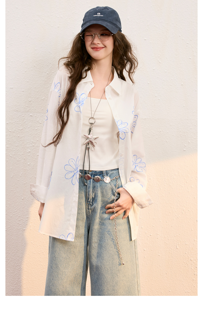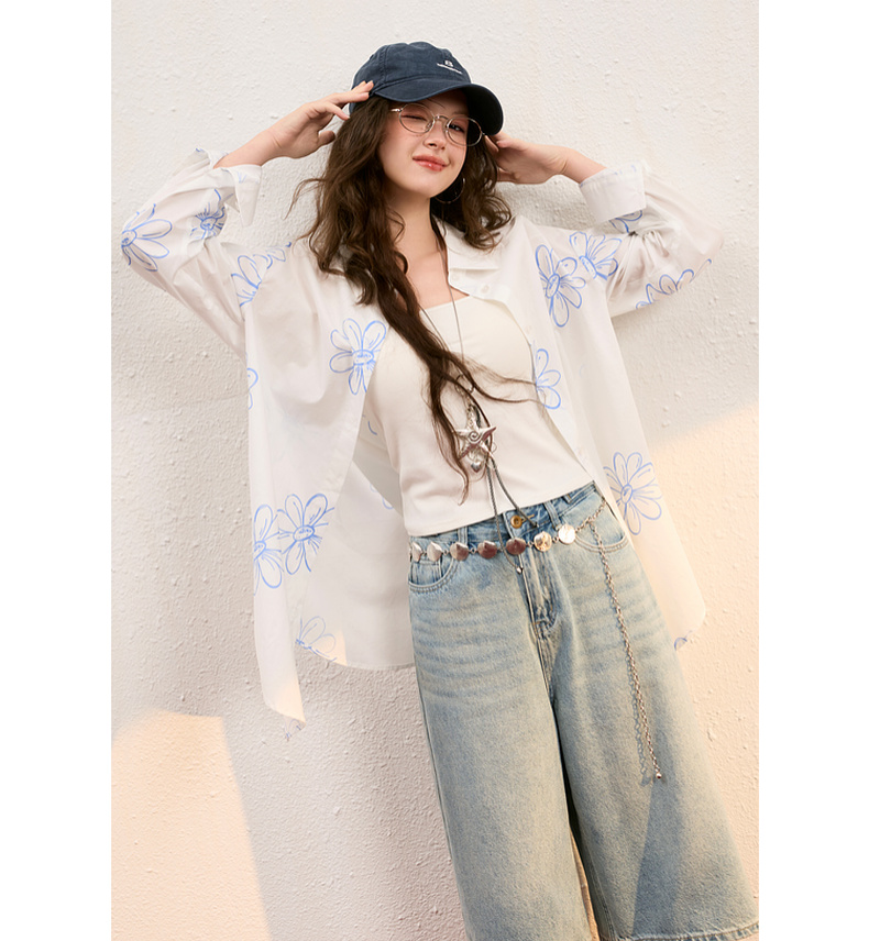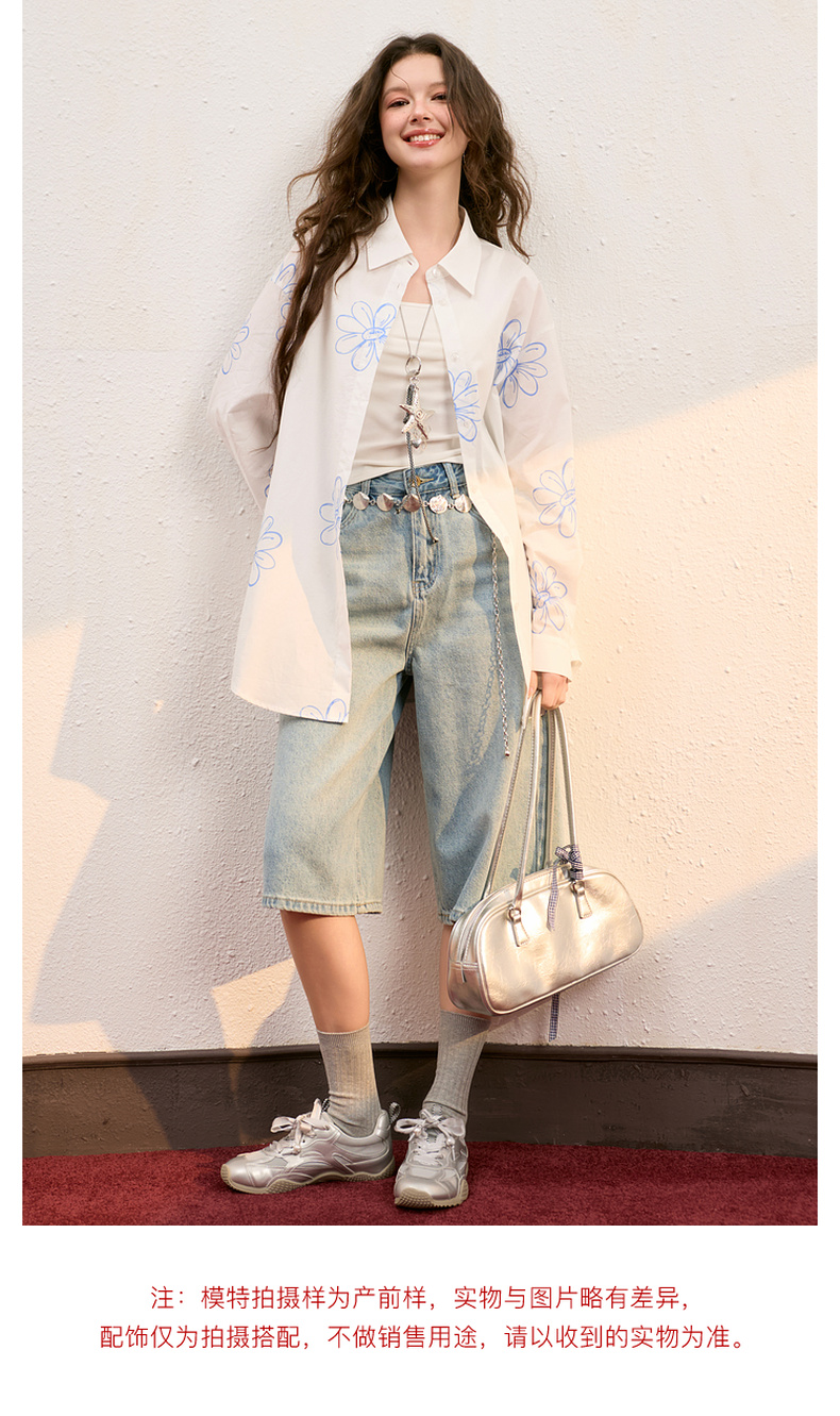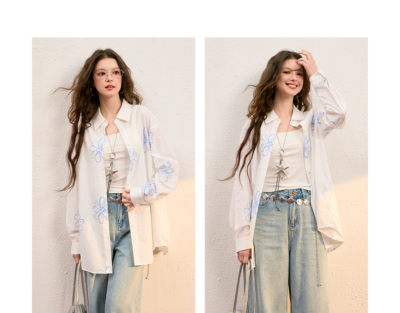 【100棉】三彩独醒2025秋季新款印花衬衫宽松休闲衬衣休闲F