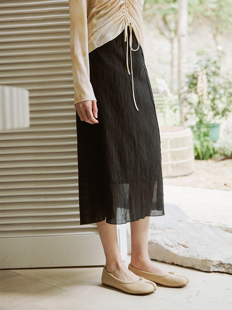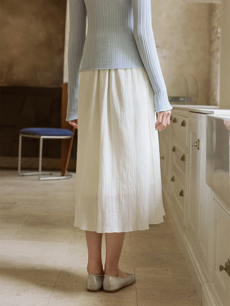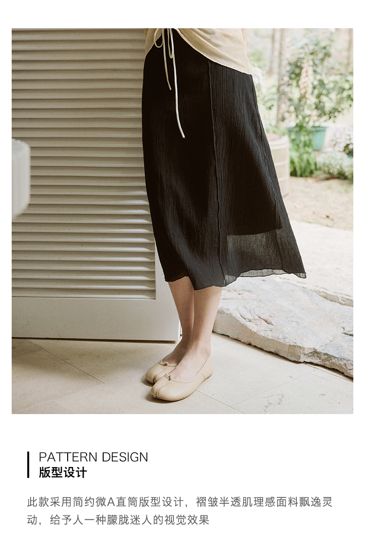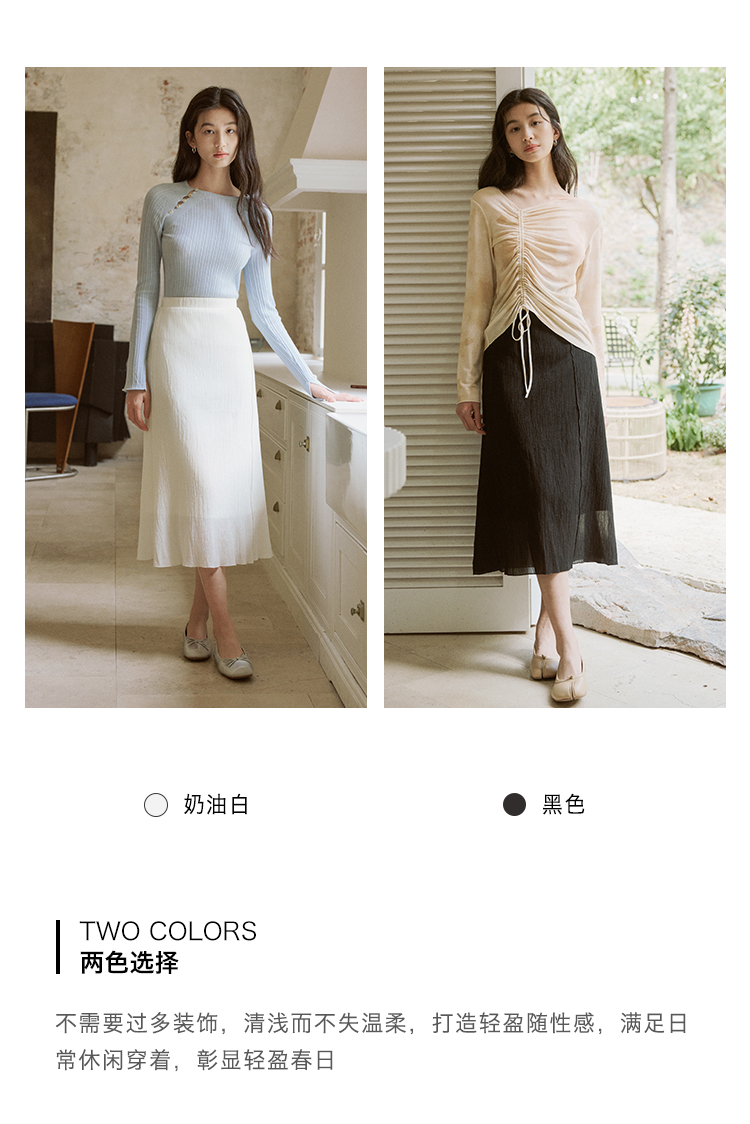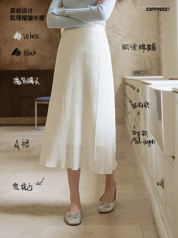ForPoem 现货 24/SS原创设计高腰显瘦肌理褶皱半身裙女中长款a字半裙