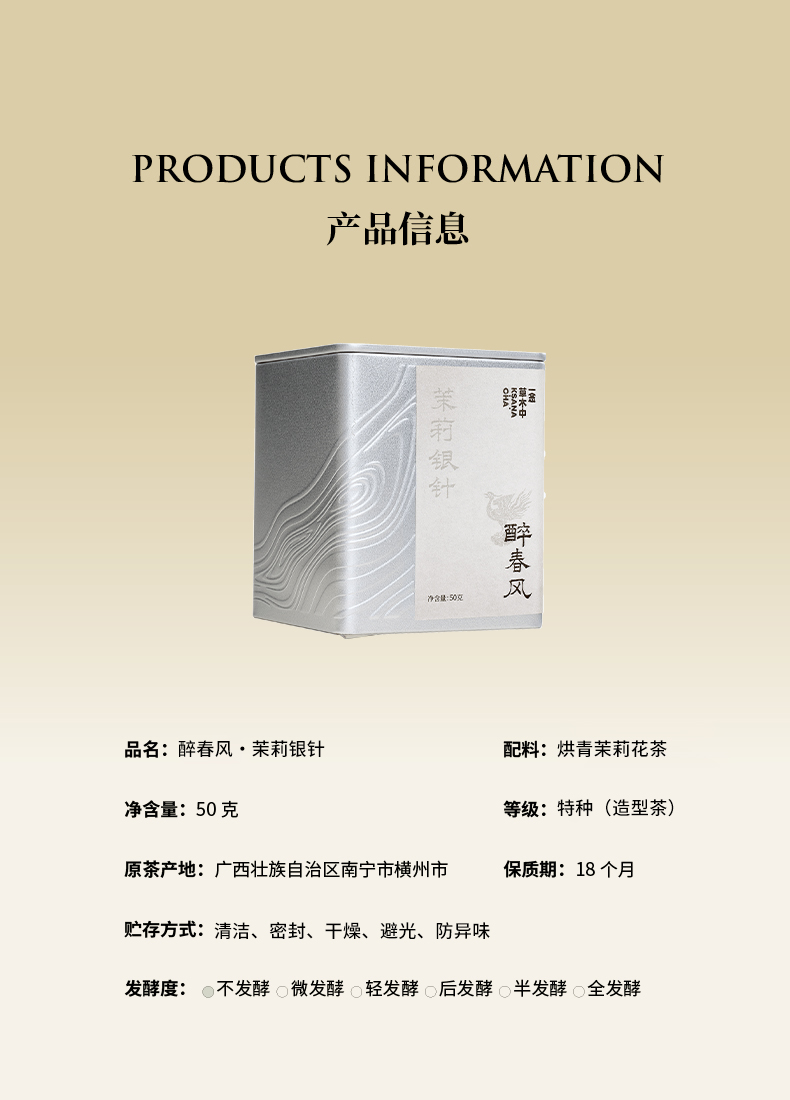 醉春风·茉莉银针 | 进阶原叶系列 | 50g原叶|绿茶类