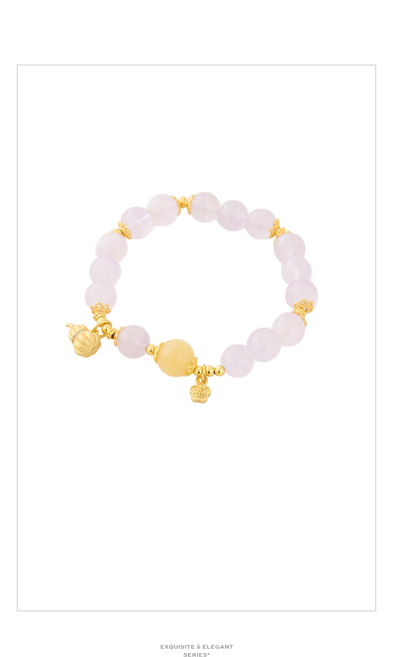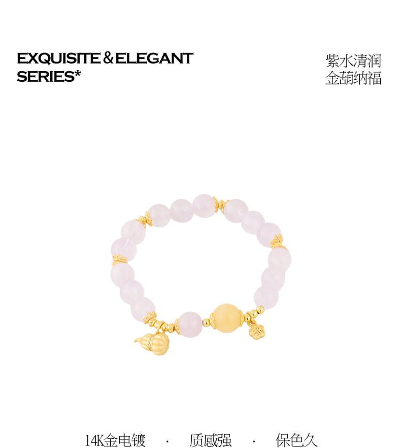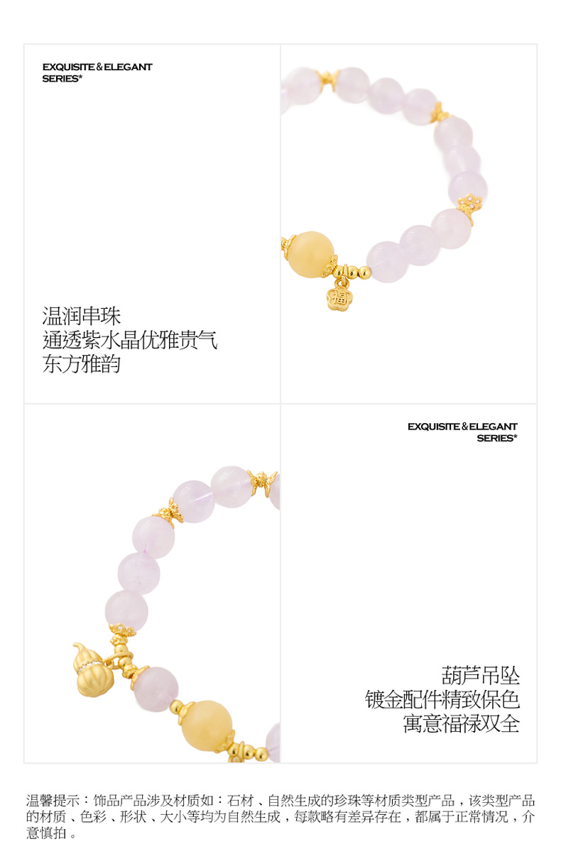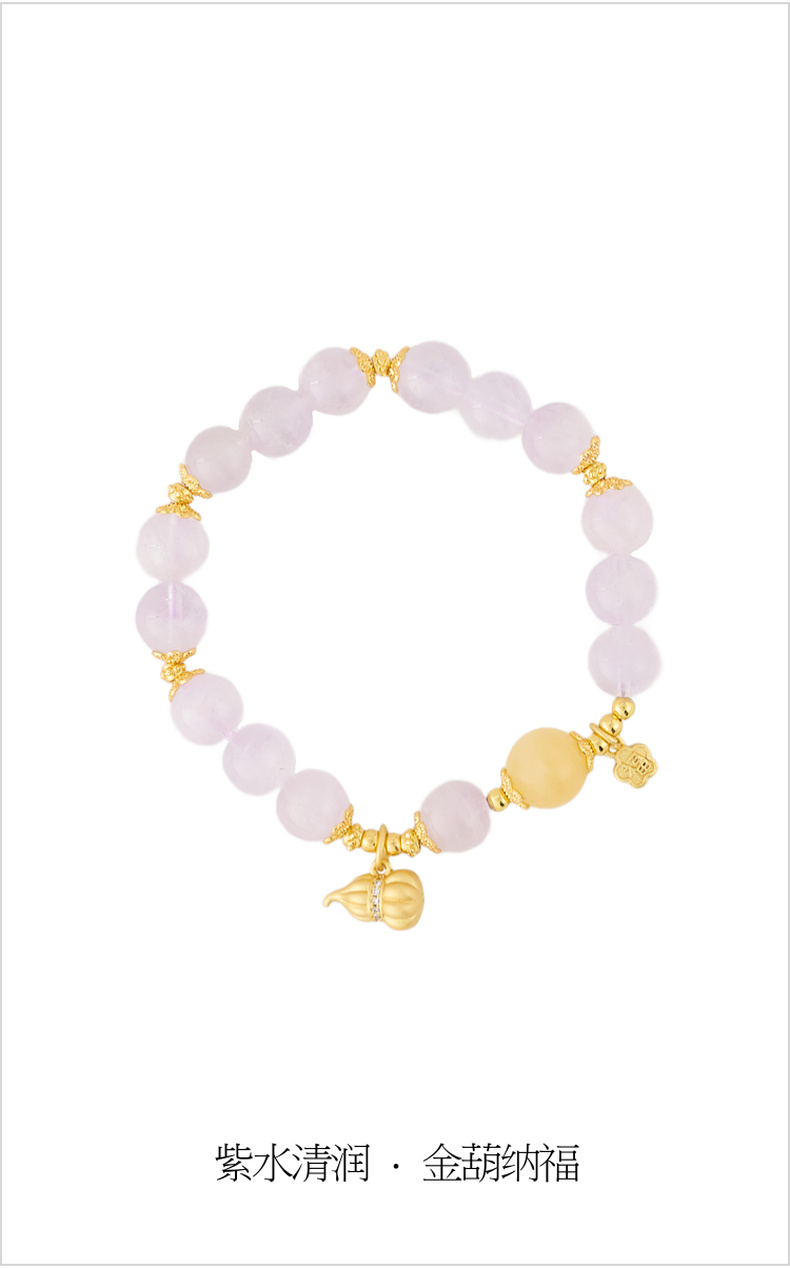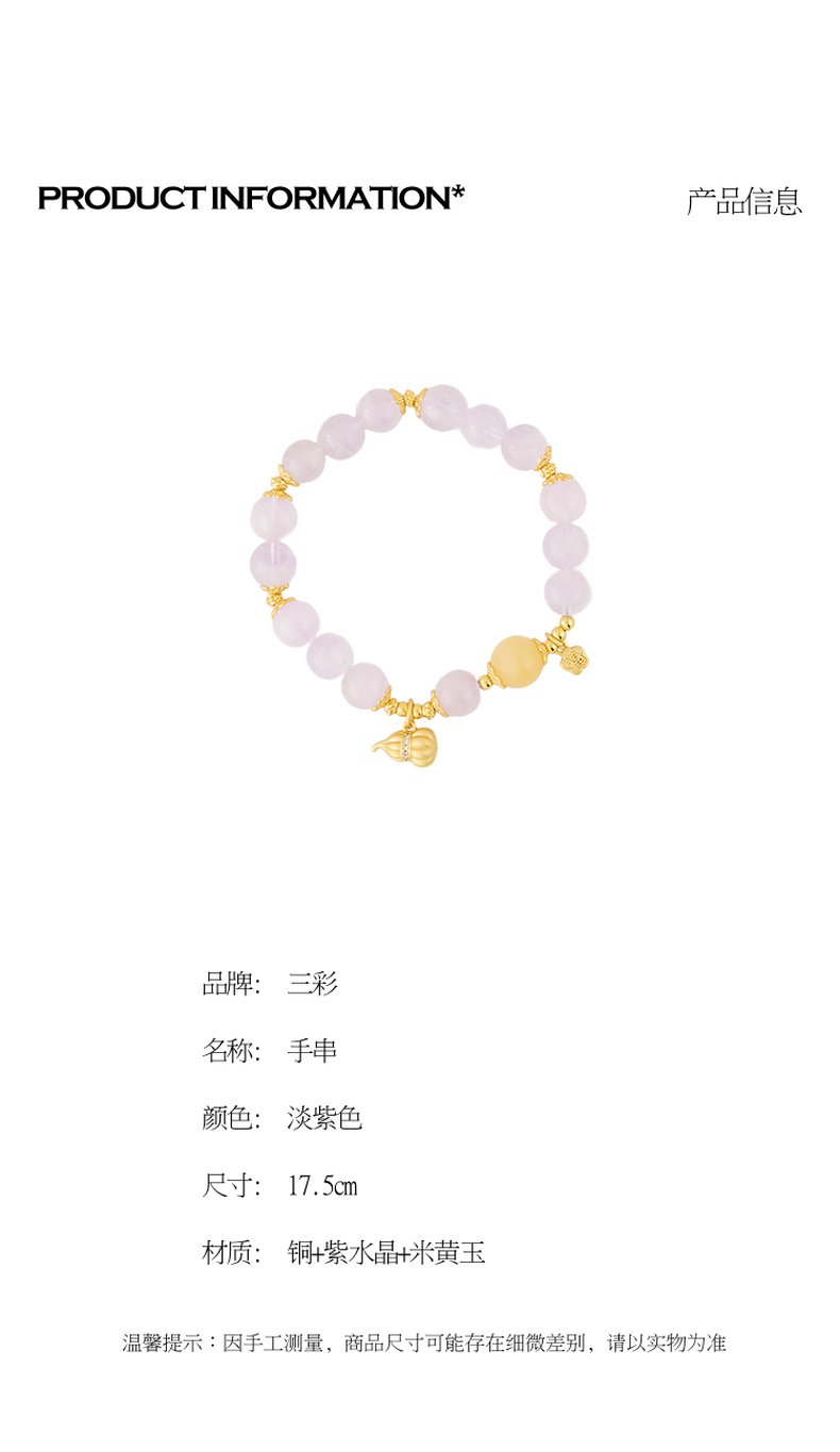 三彩2026新款国风紫水晶米黄玉手串福禄金葫芦吊坠弹力绳讨喜通勤