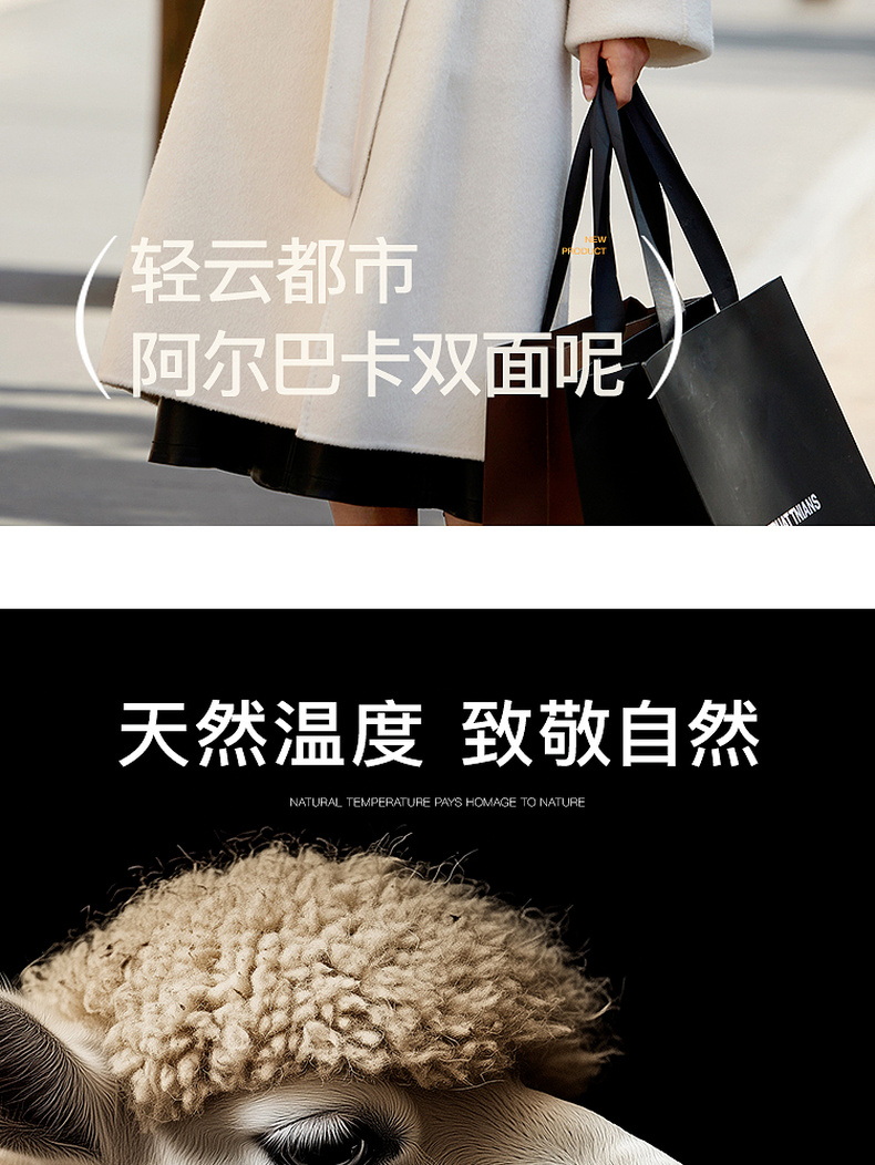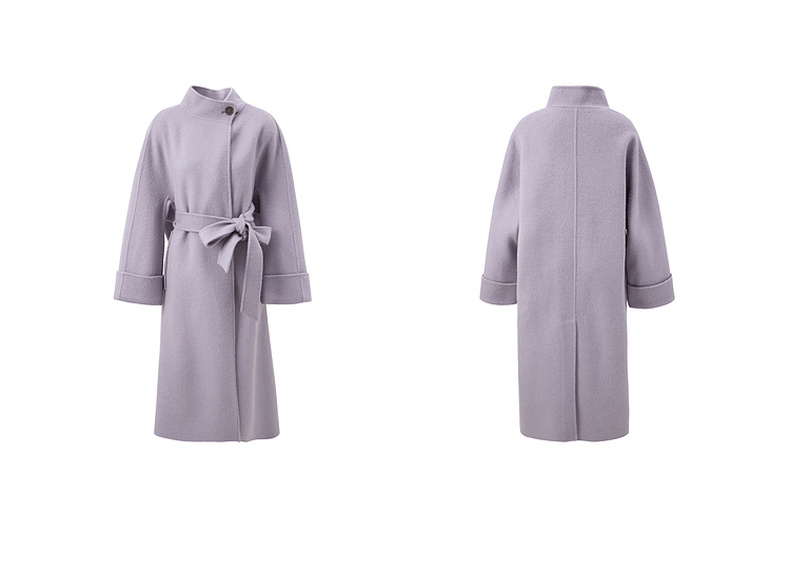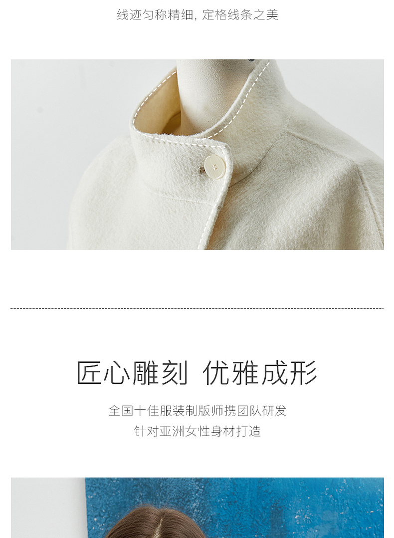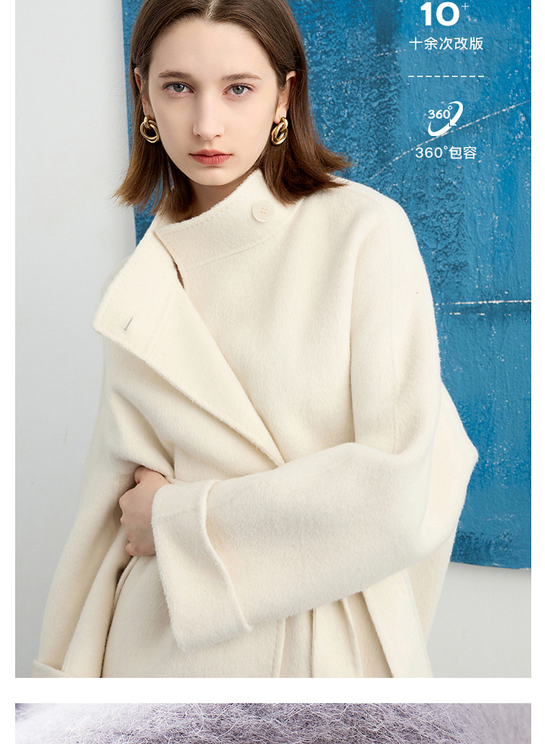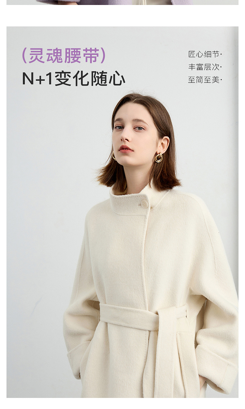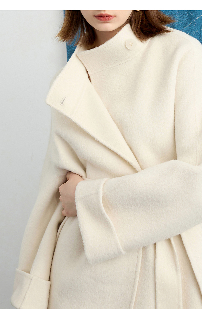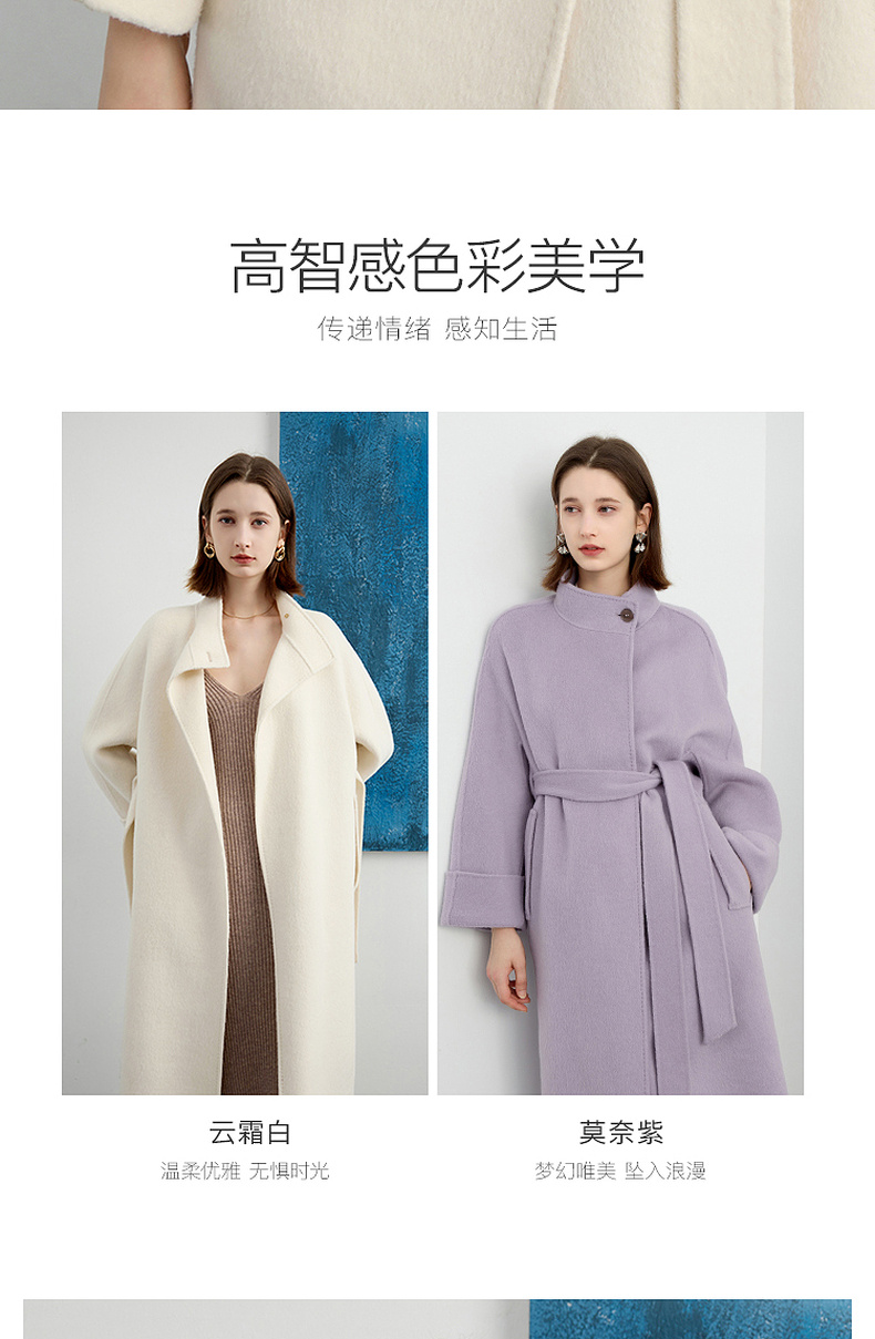【宋轶同款】三彩2024冬季新款立领叠襟阿尔巴卡双面呢外套大衣宽松长款女M