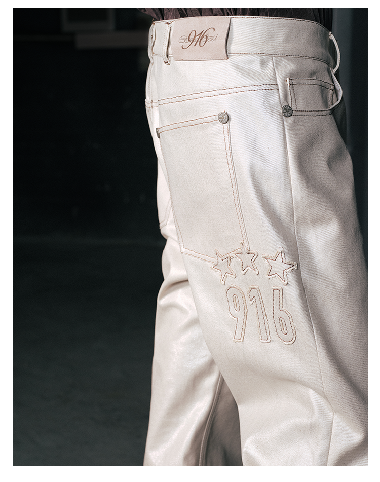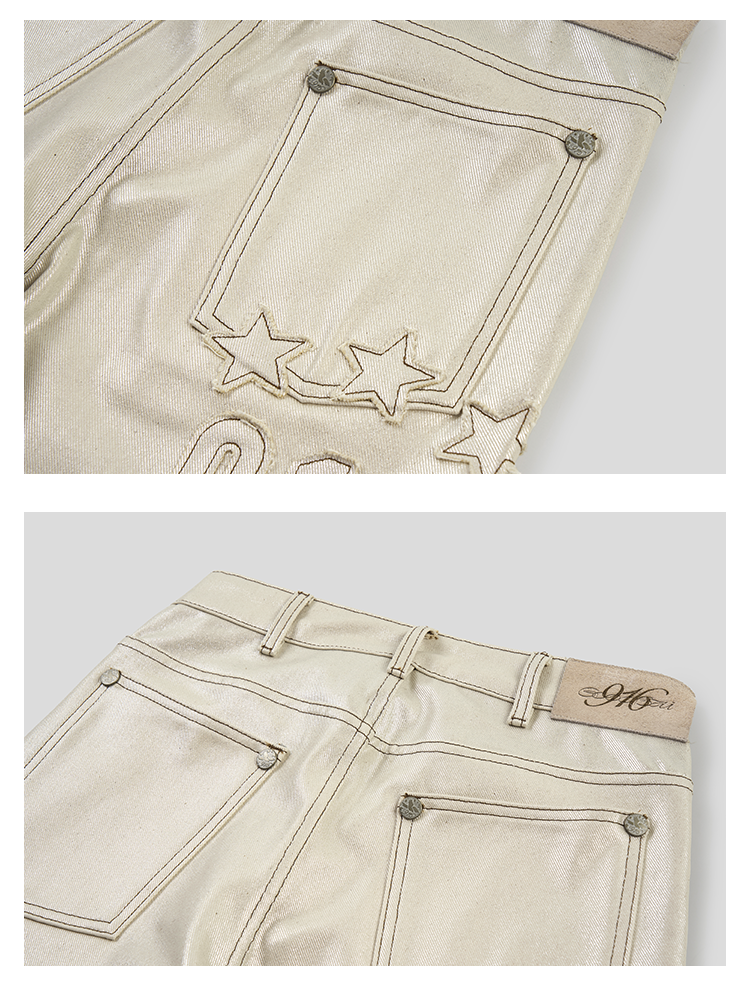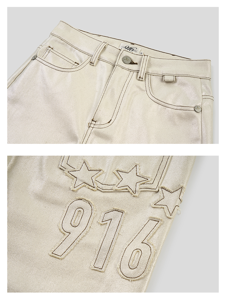 GOODBAI 916 星星logo贴布绣铺银微喇休闲长裤