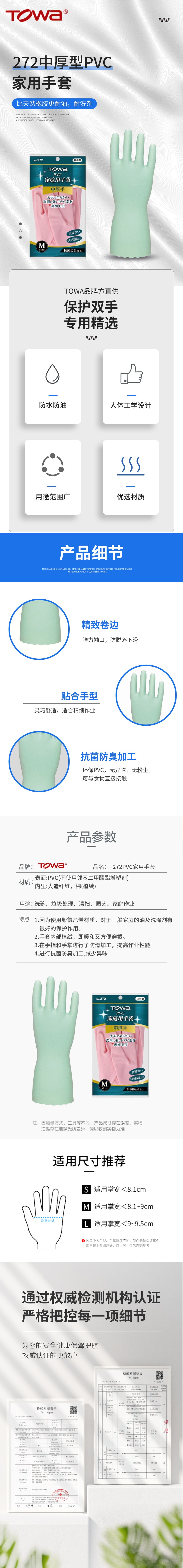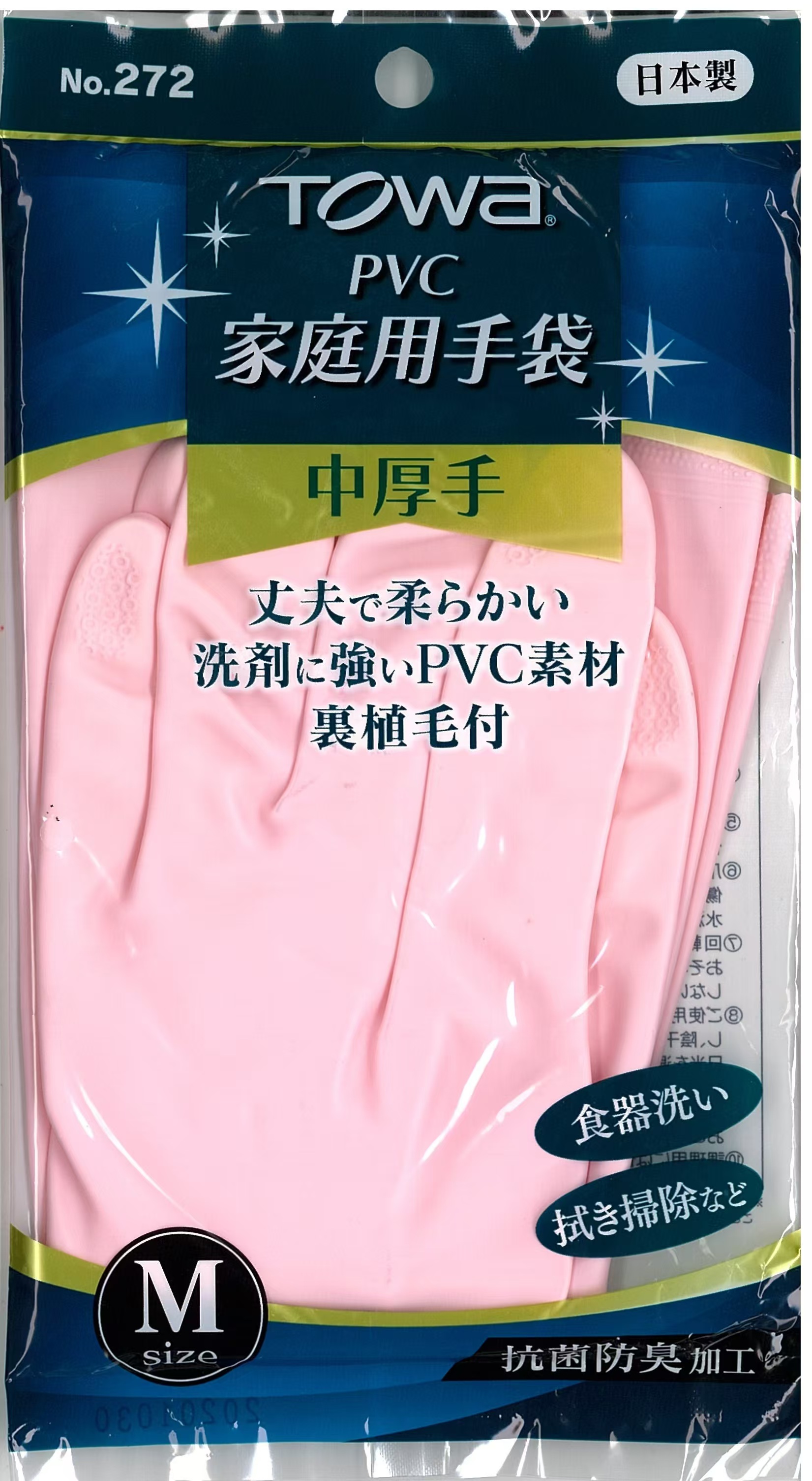日本进口TOWA牌中厚型PVC家用手套 【任选三双仅35.8元,到手单价仅需约11.9元/双】