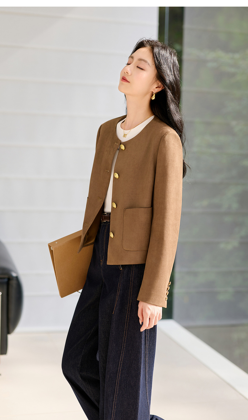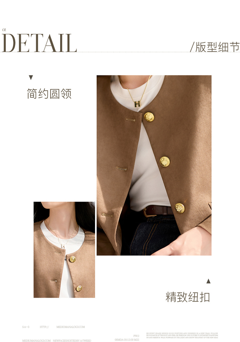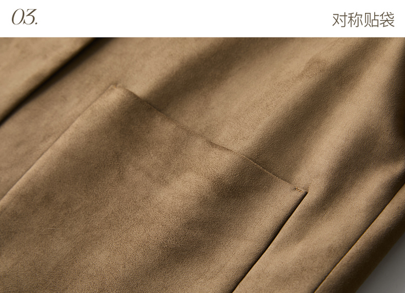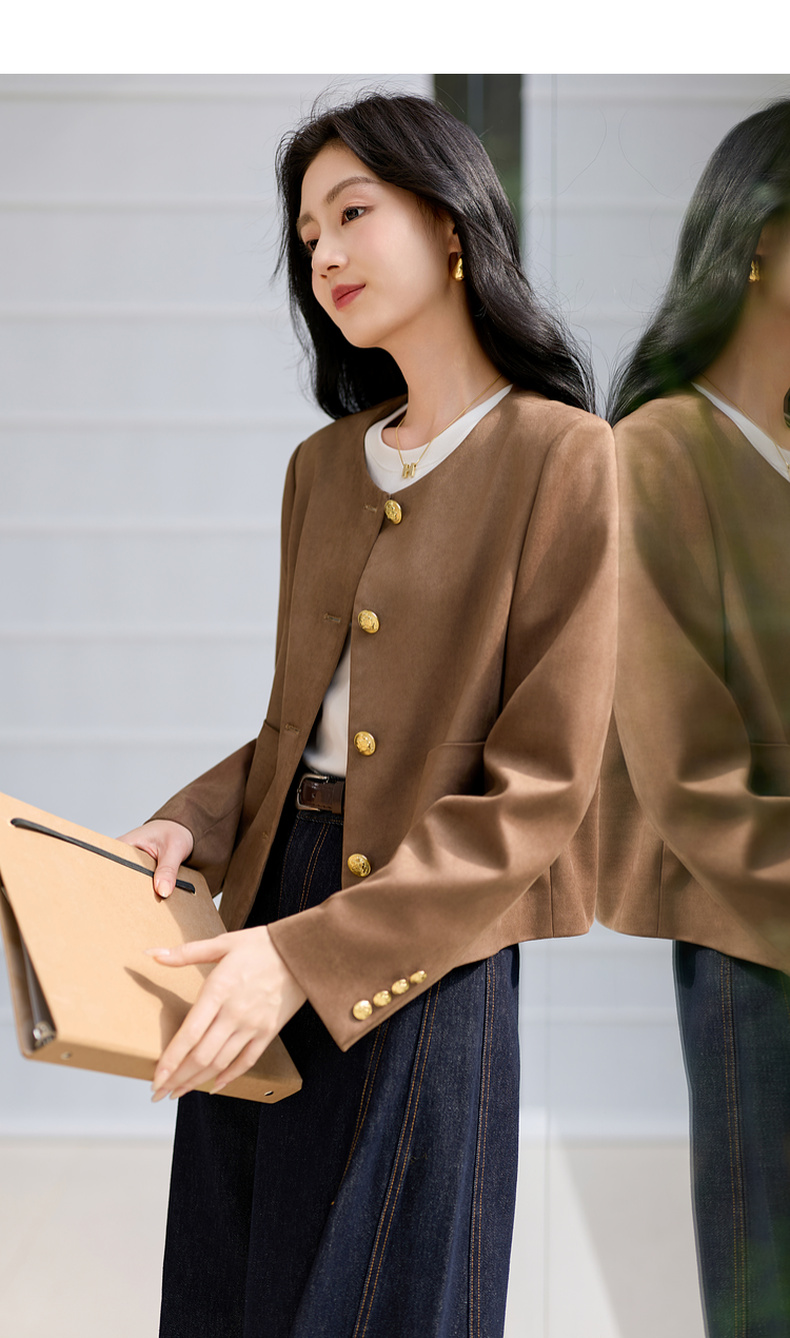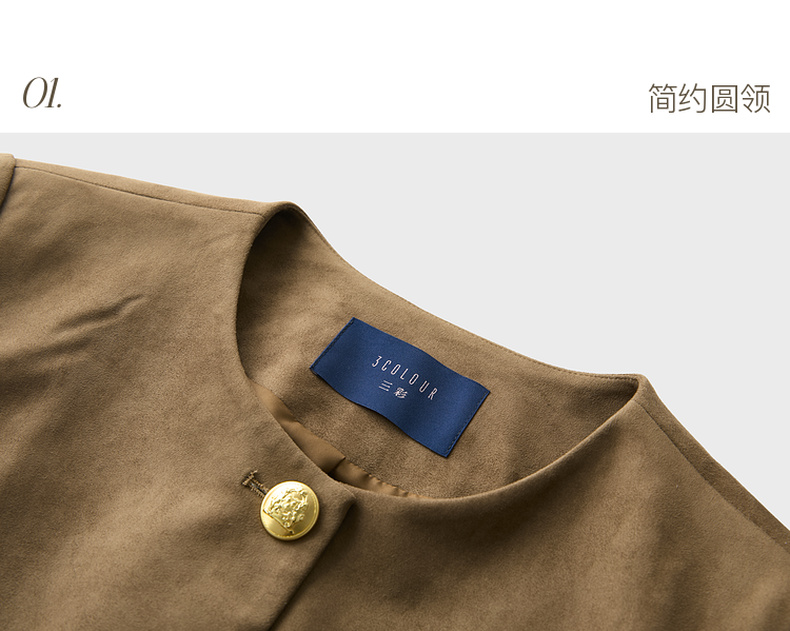 三彩2025秋季新款休闲外套仿麂皮绒正肩长袖开衫上衣复古S