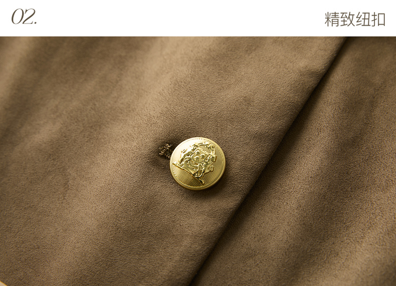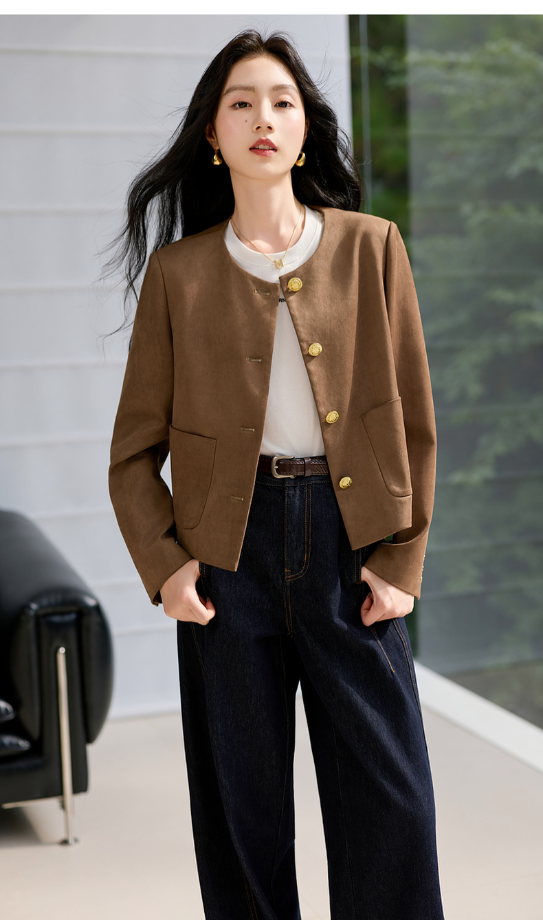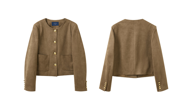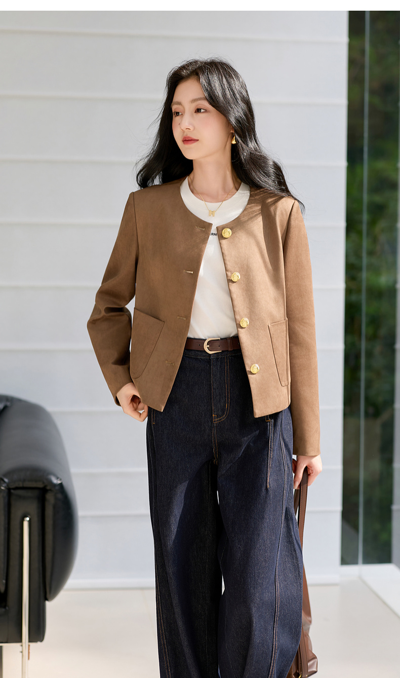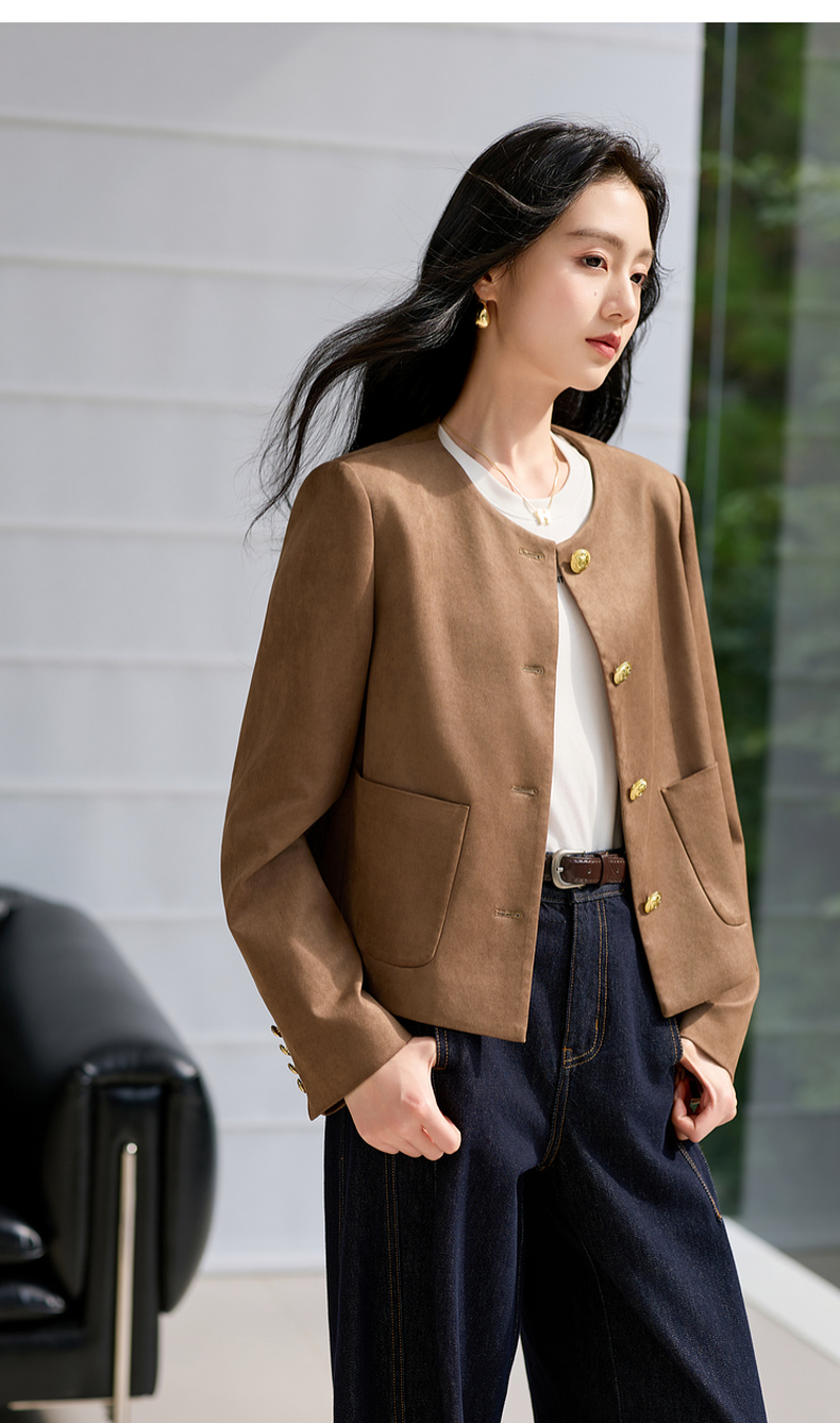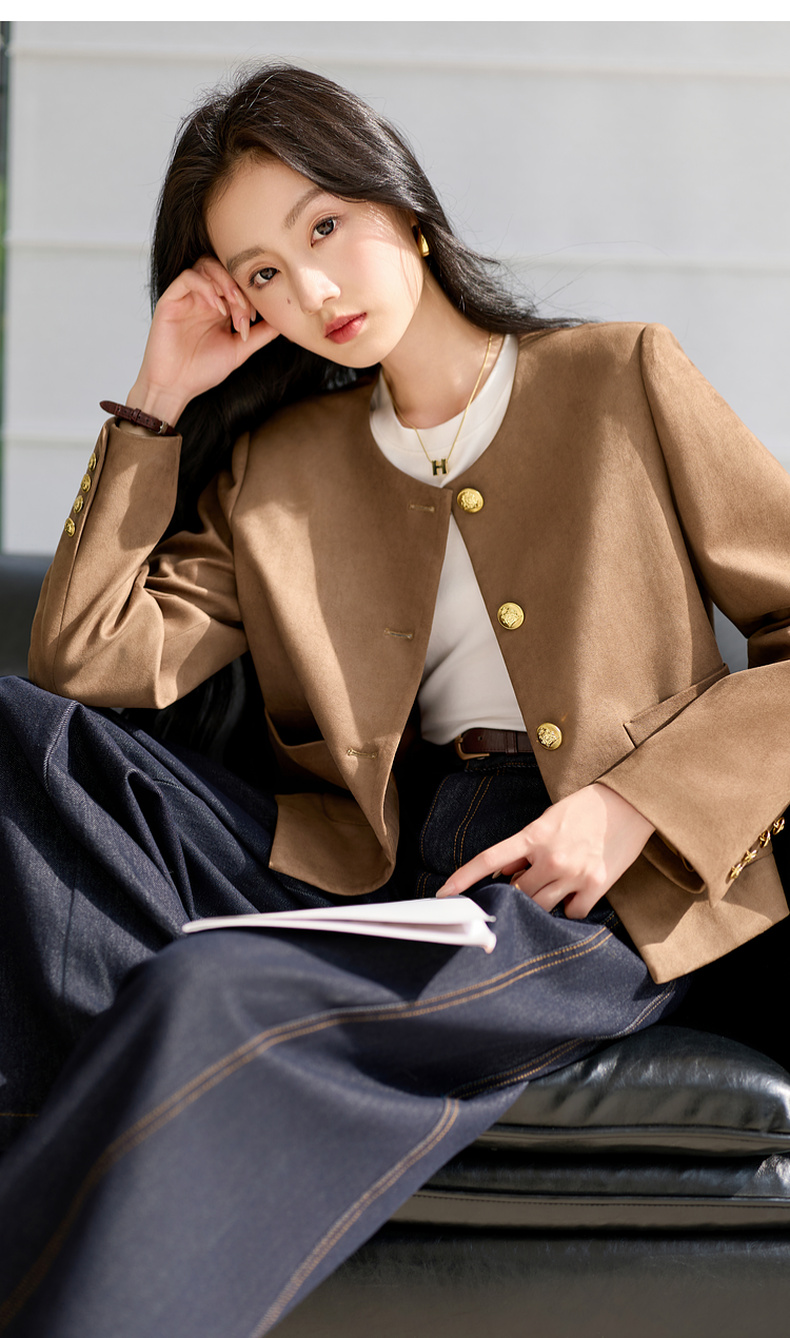 三彩2025秋季新款休闲外套仿麂皮绒正肩长袖开衫上衣复古S