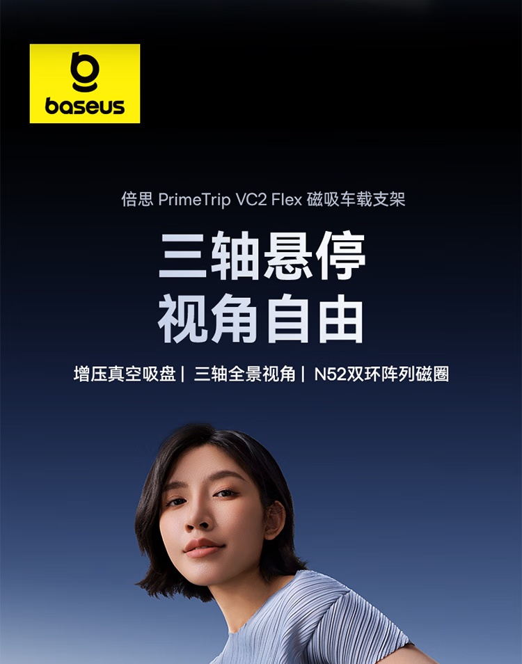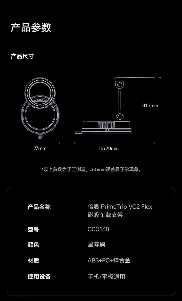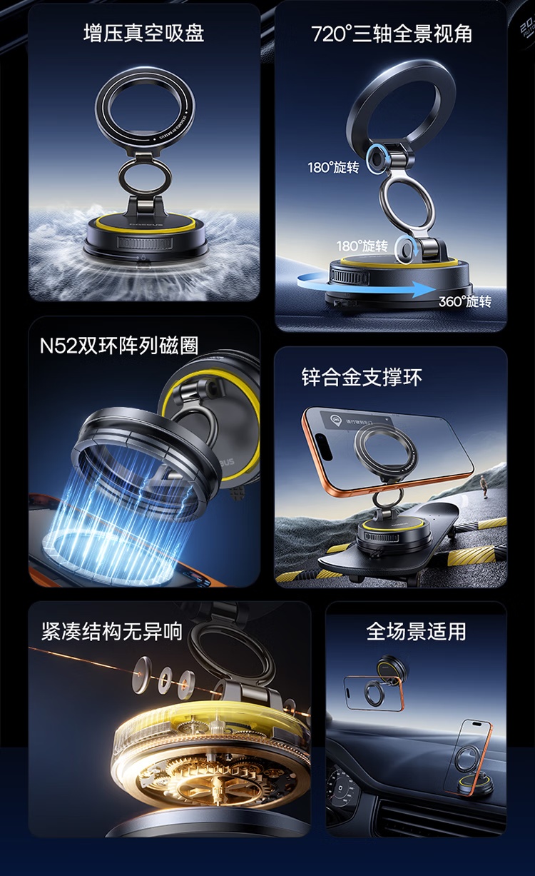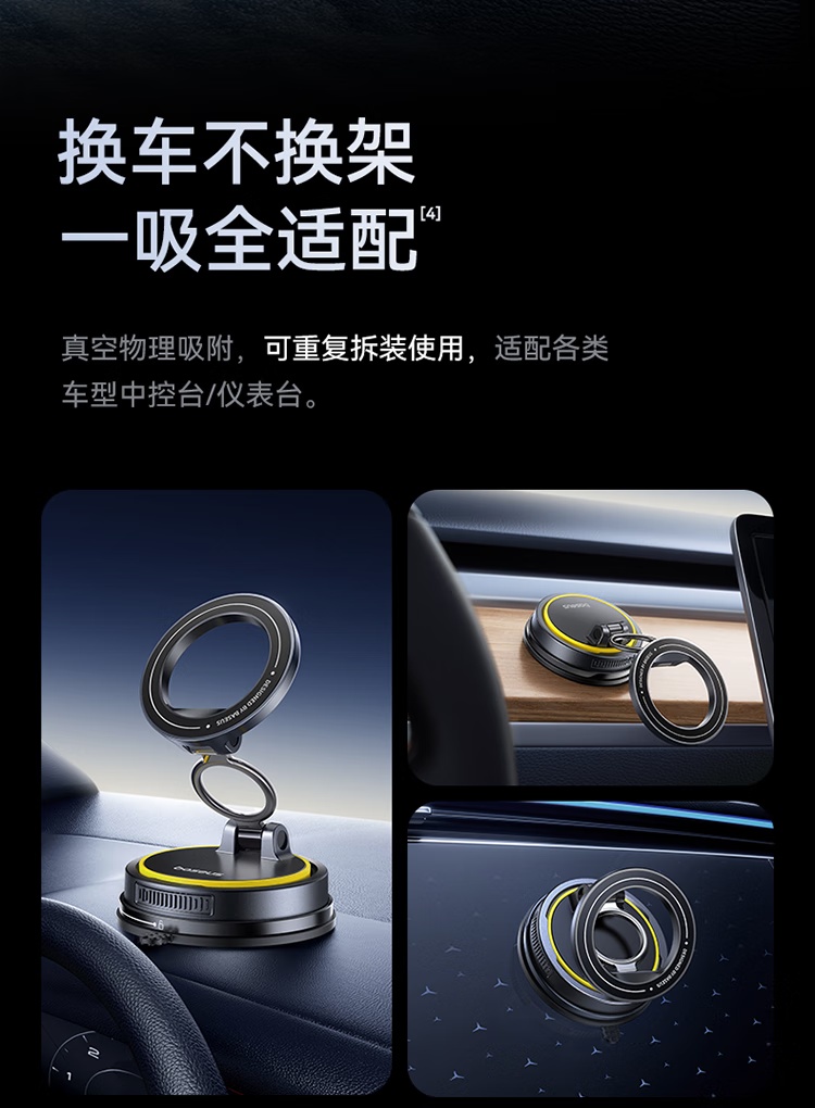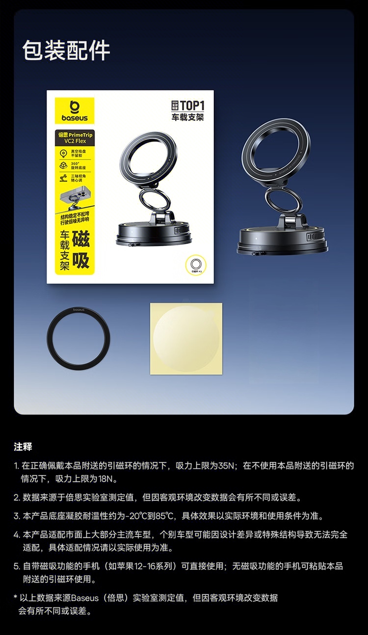 【全网热销10w+/京东车载支架热销榜TOP6】倍思 PrimeTrip VC2 Flex磁吸车载支架 星际黑 手机支架磁吸真空吸附 汽车导航仪表台通用