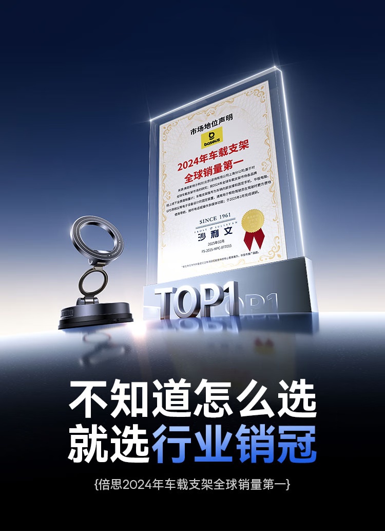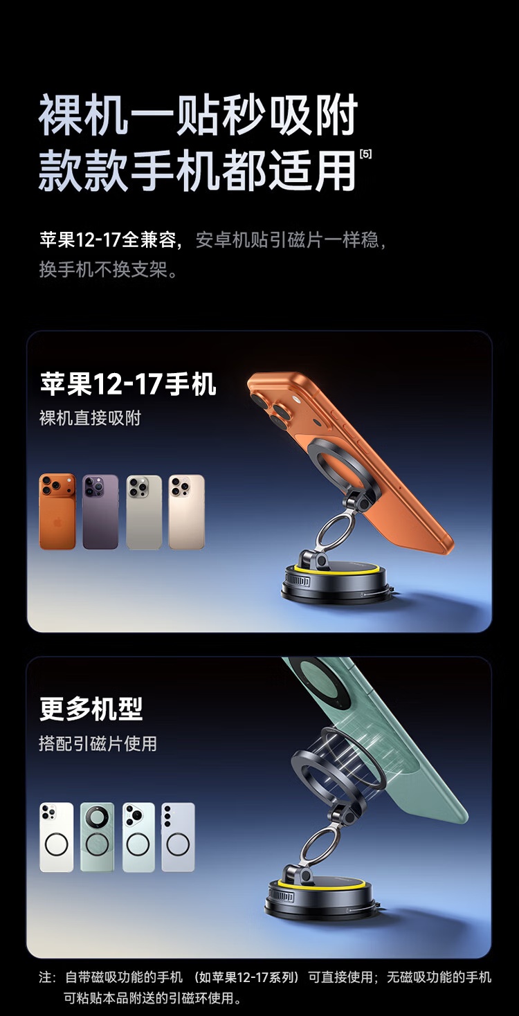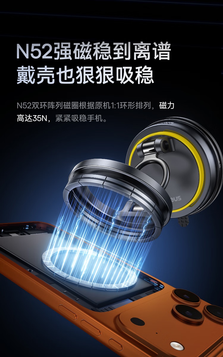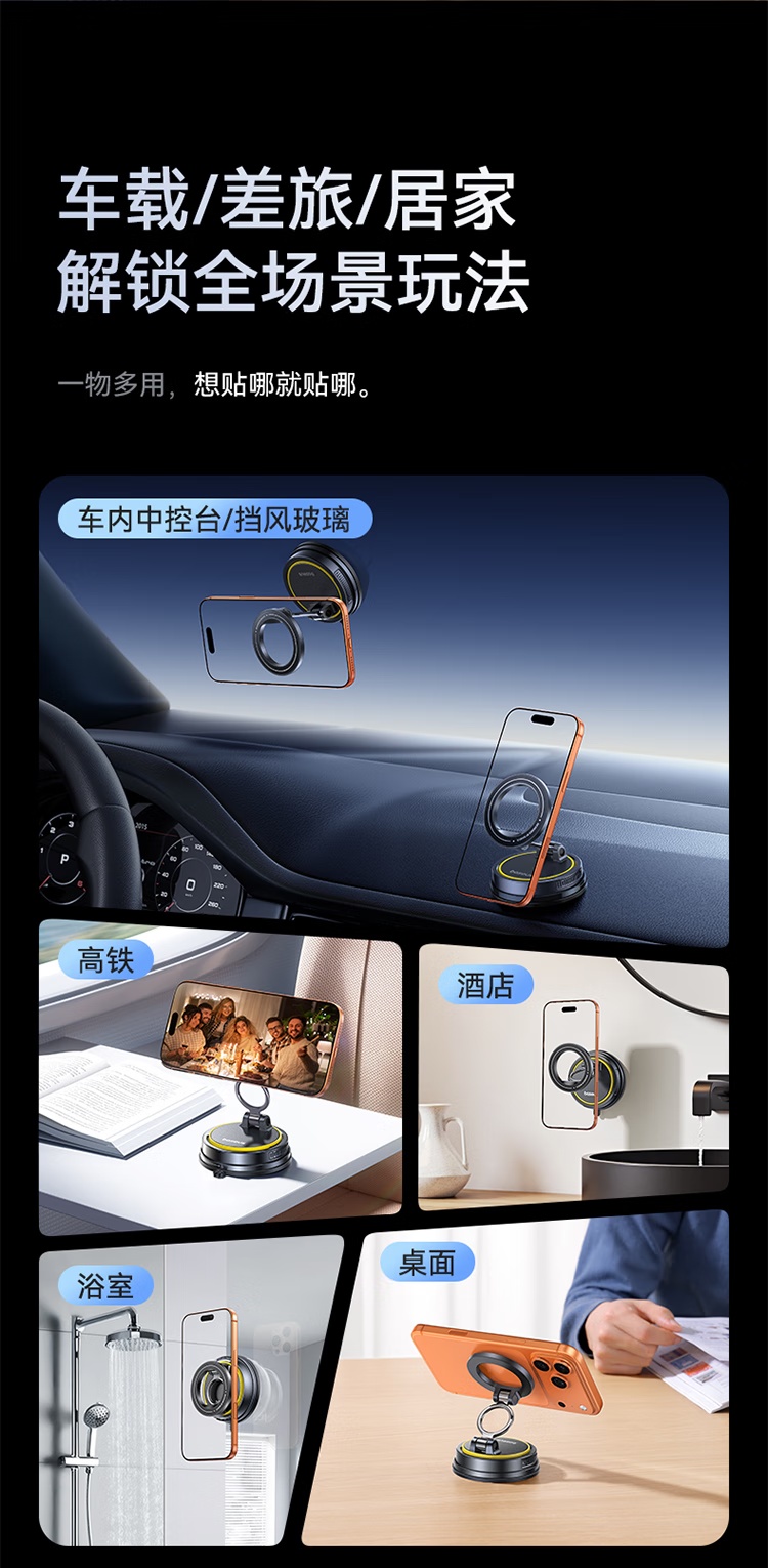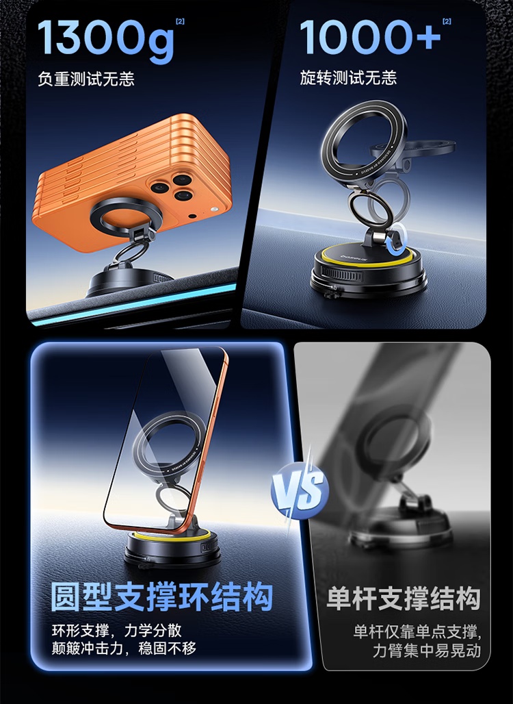 【全网热销10w+/京东车载支架热销榜TOP6】倍思 PrimeTrip VC2 Flex磁吸车载支架 星际黑 手机支架磁吸真空吸附 汽车导航仪表台通用