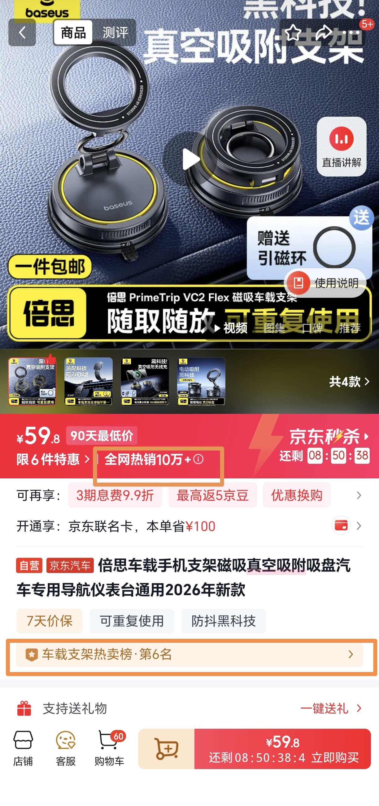 【京东售价59.8元】【全网热销10w+/京东车载支架热销榜TOP6】