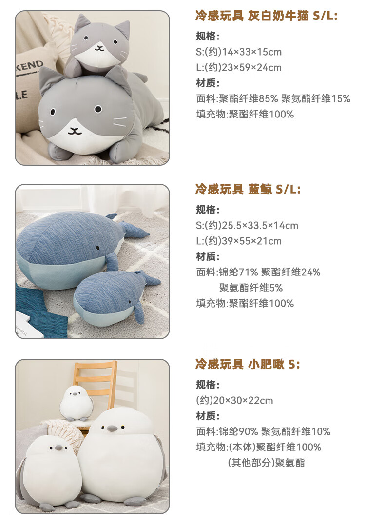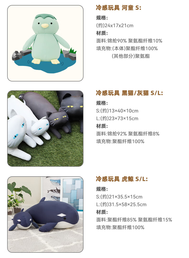 夏季冷感玩具 虎鲸/蓝鲸/灰白奶牛猫/海兔/独角兽/渡渡/河童/小肥啾/黑猫/灰猫/秋田犬/海龟