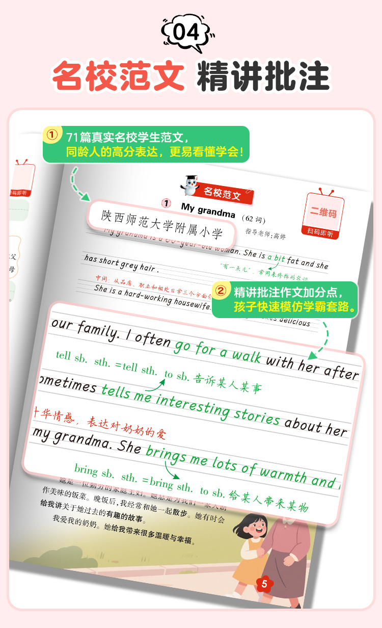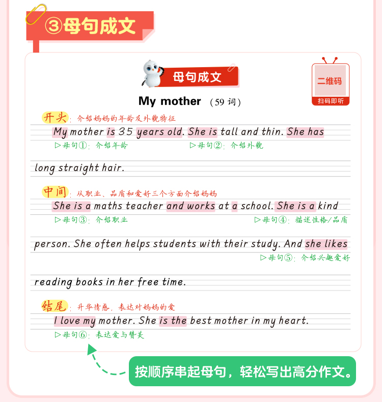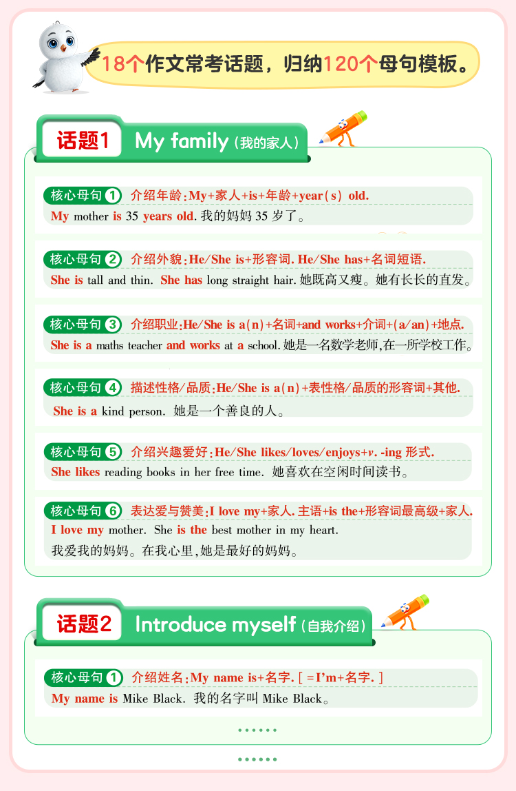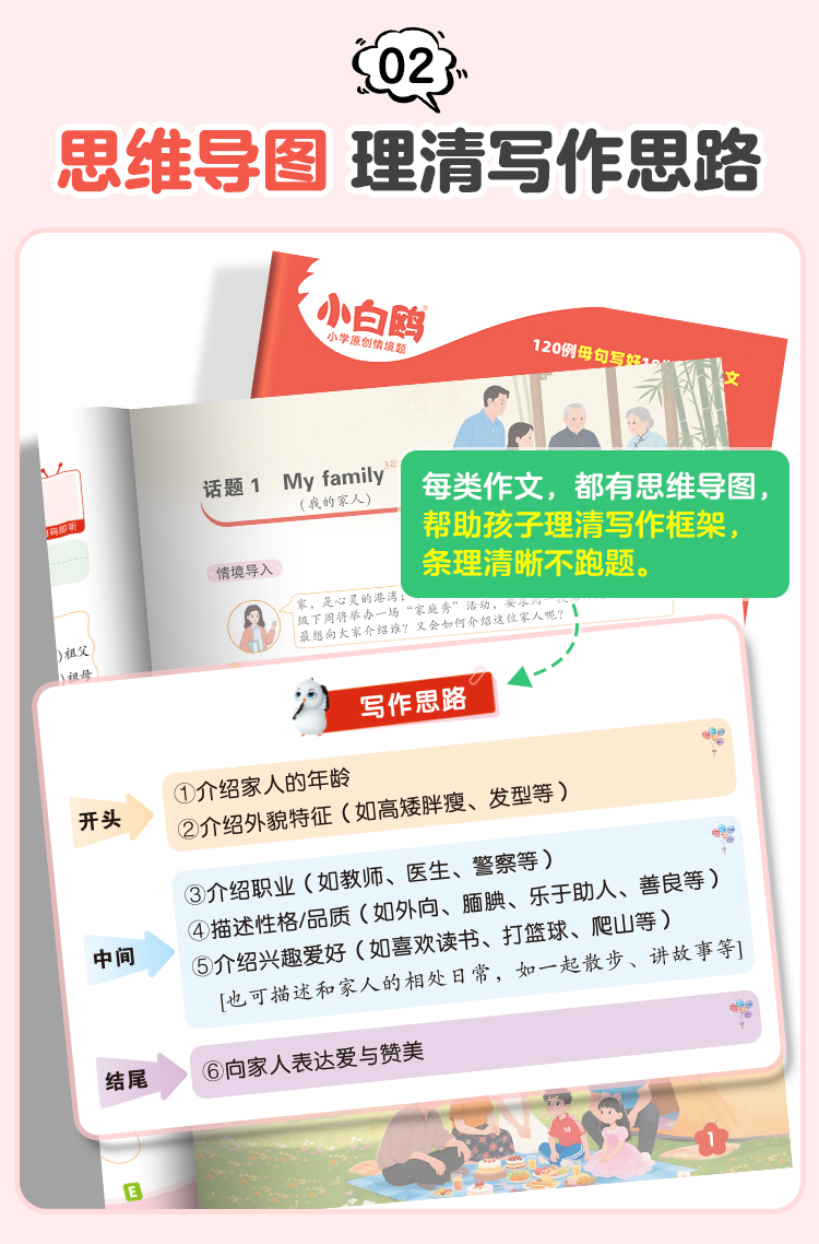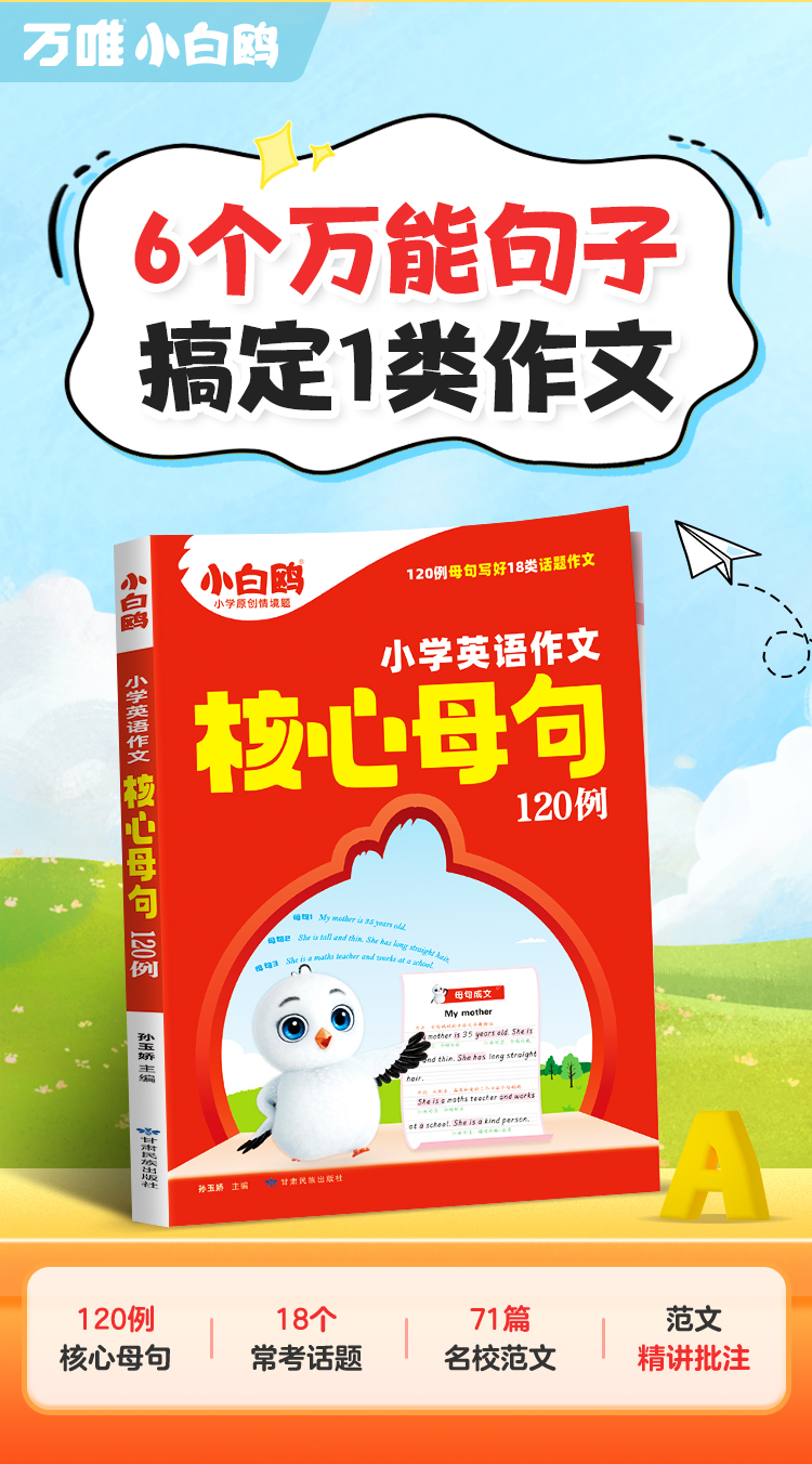 2025年万唯小白鸥英语作文核心母句120例小学英语句子三四五六年级满分作文训练专项练习高频真题范文批注式讲作文