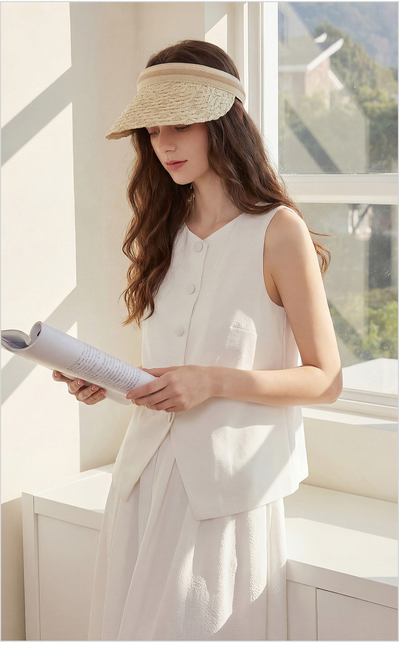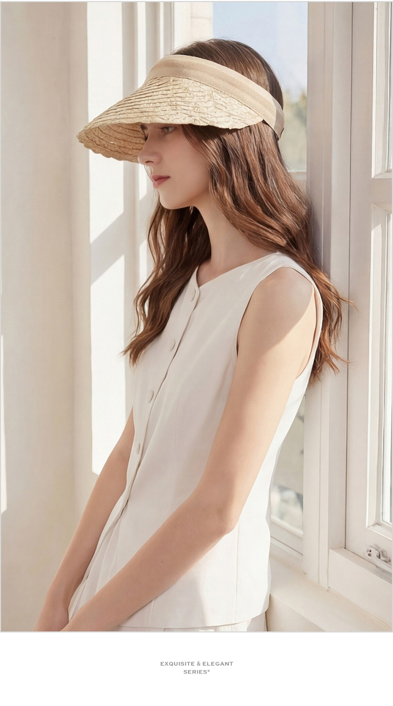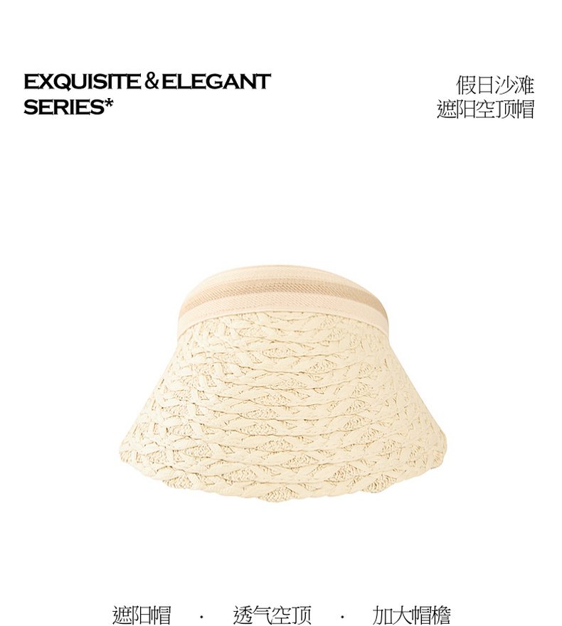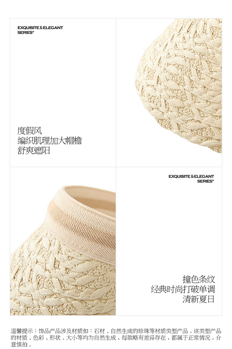 三彩2026新款空顶大帽檐遮阳帽休闲海边沙滩出游夏编织帽子鸭舌女