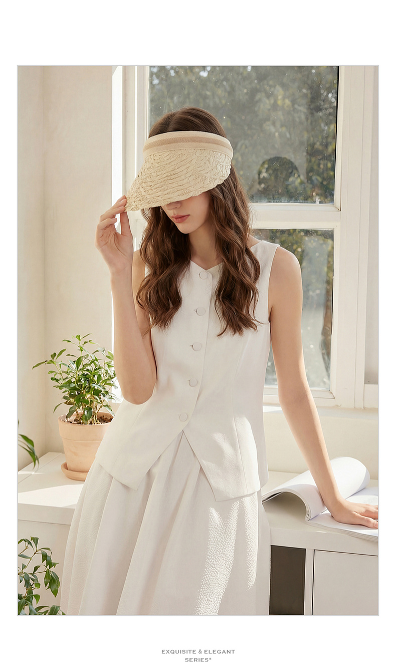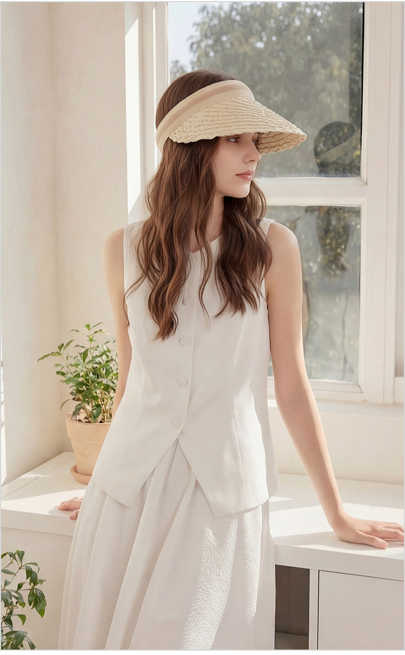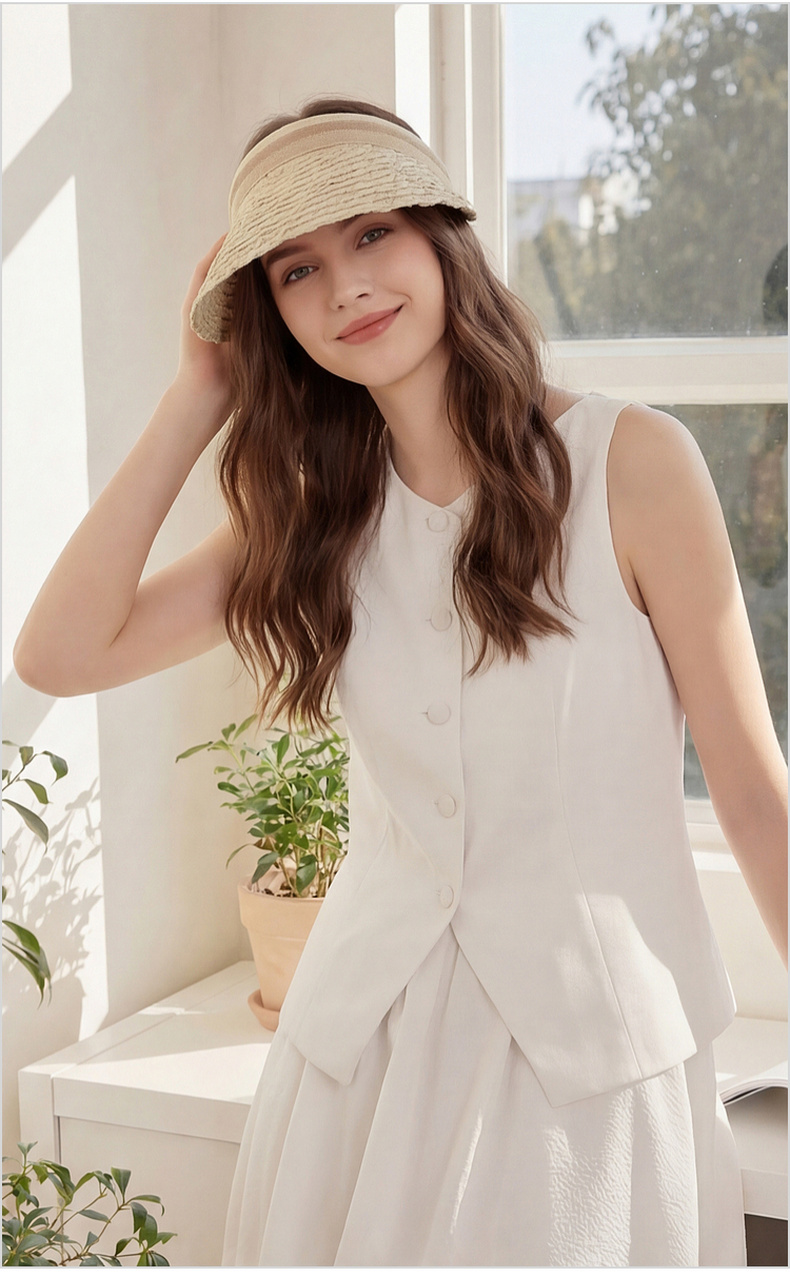 三彩2026新款空顶大帽檐遮阳帽休闲海边沙滩出游夏编织帽子鸭舌女