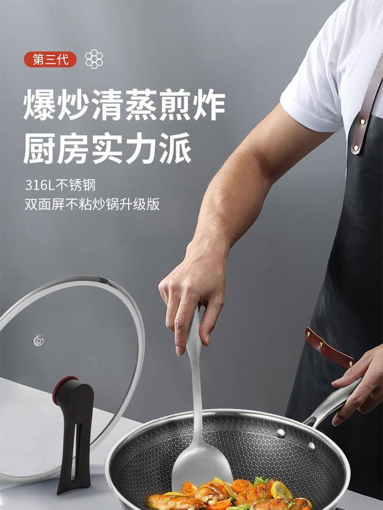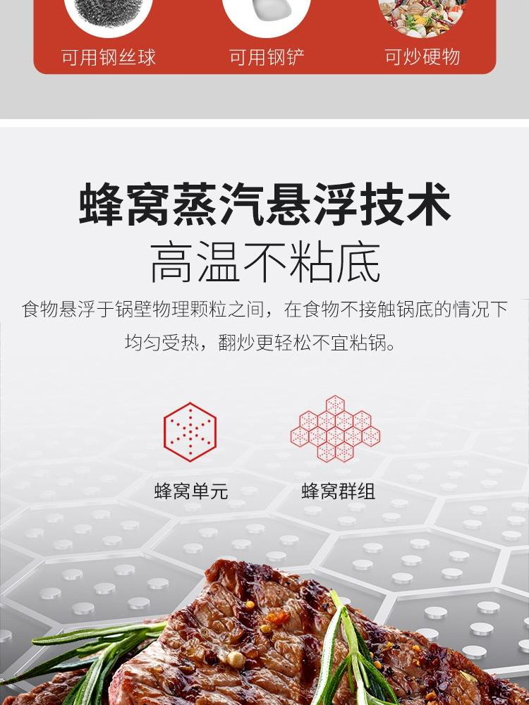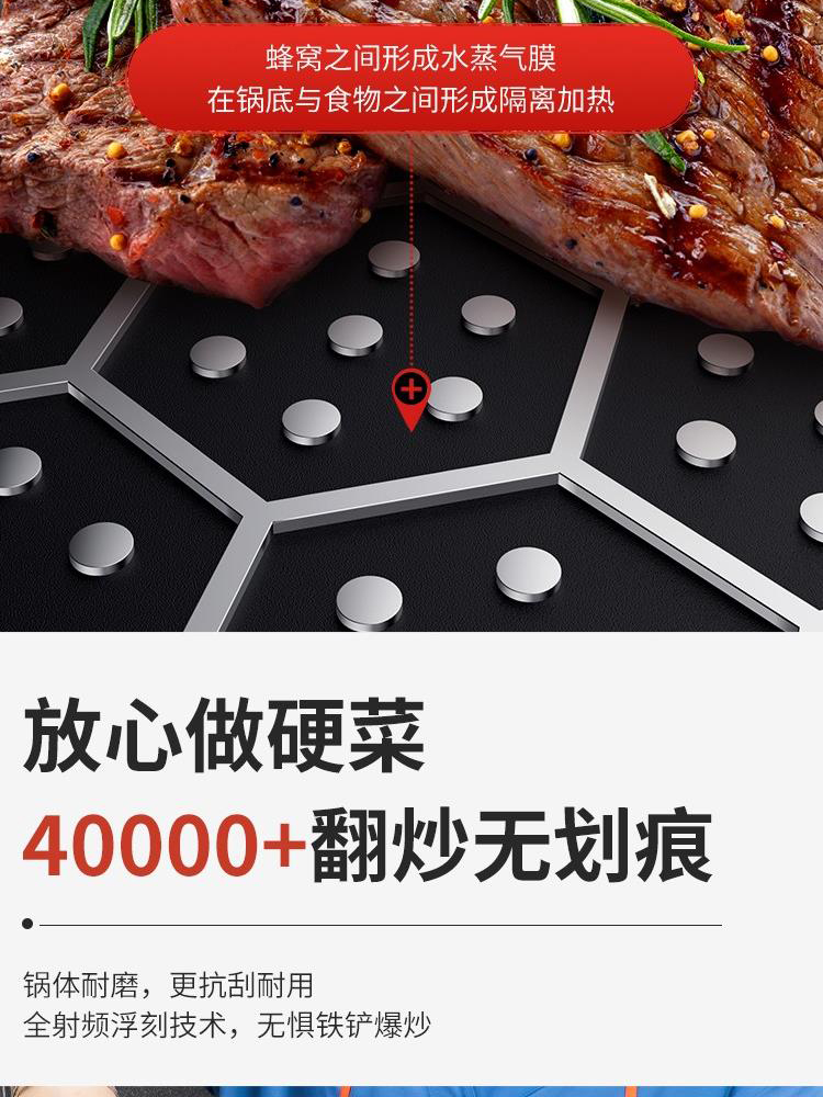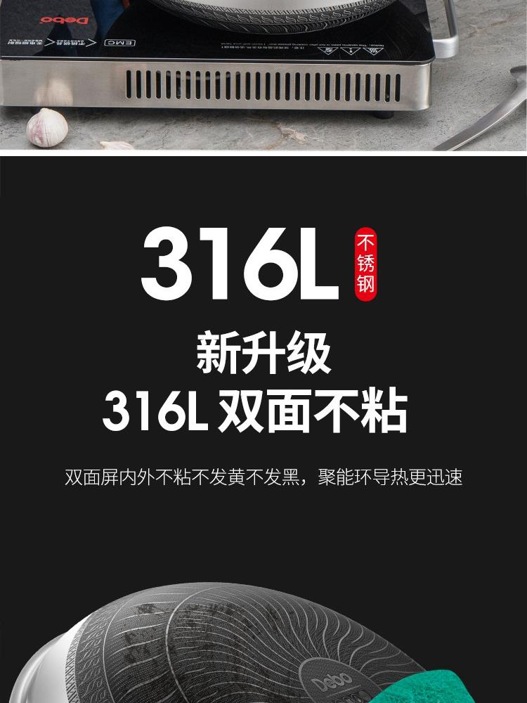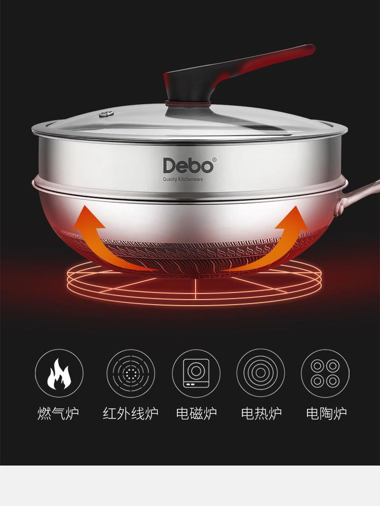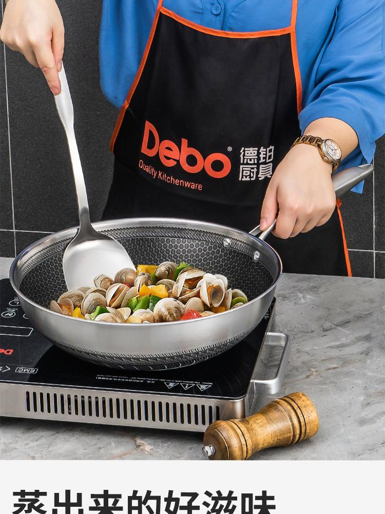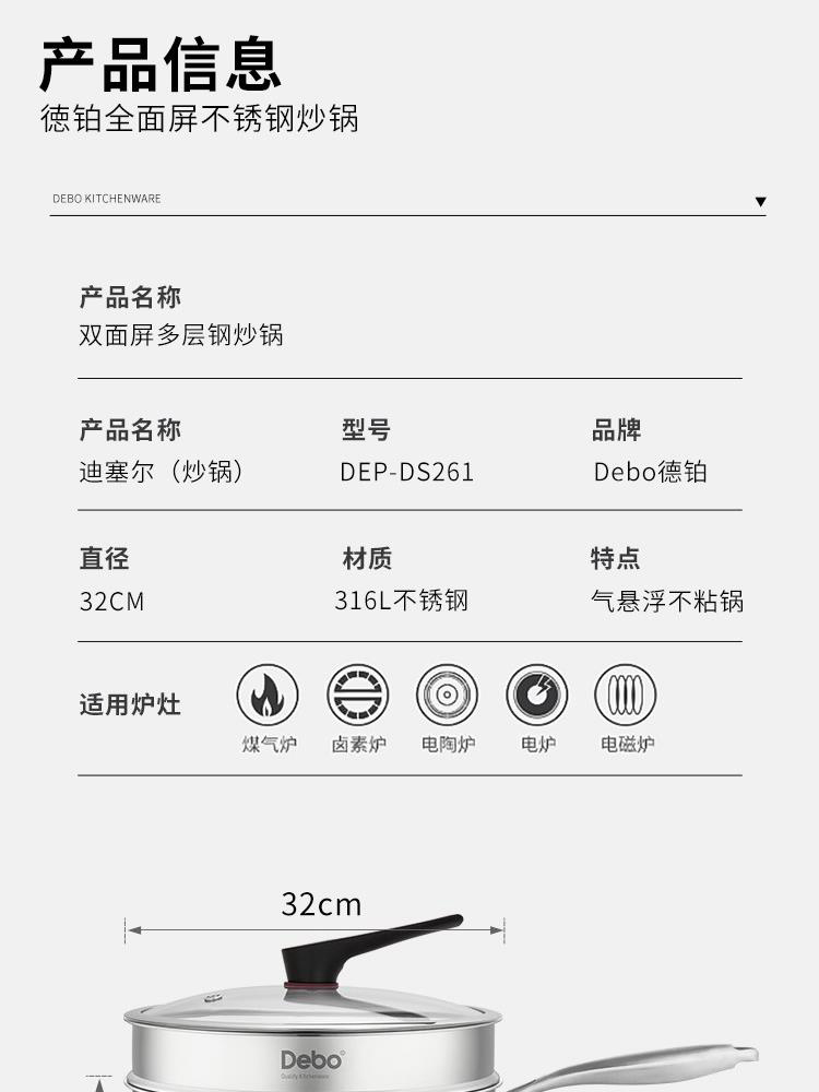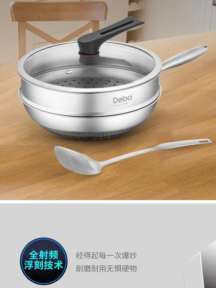 德铂Debo 迪塞尔炒锅 DEP-DS261 带蒸屉32cm 不粘锅蜂窝炒菜锅