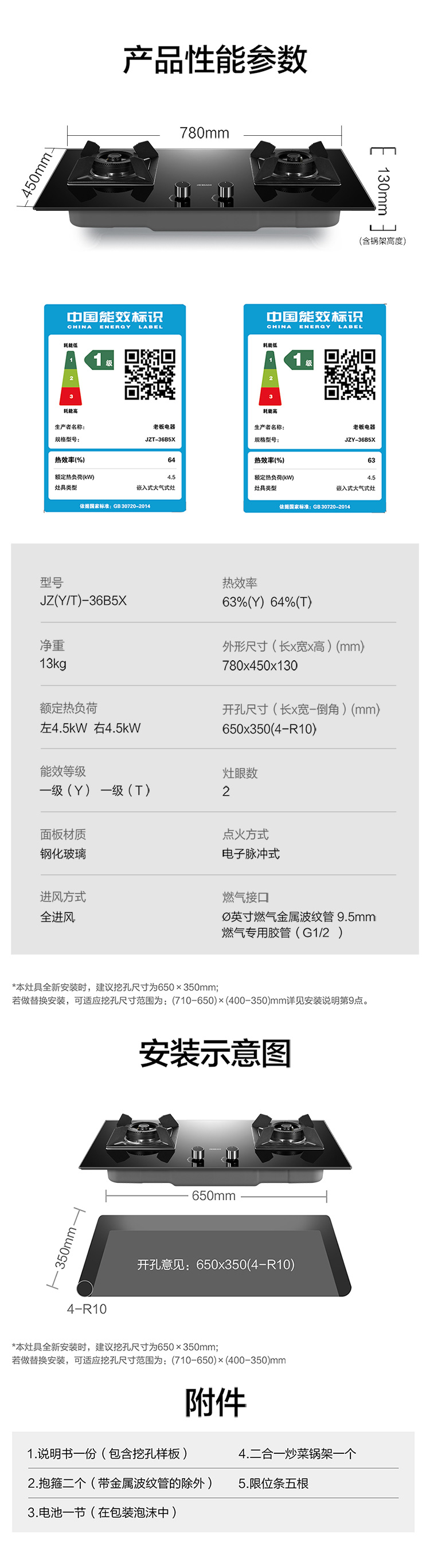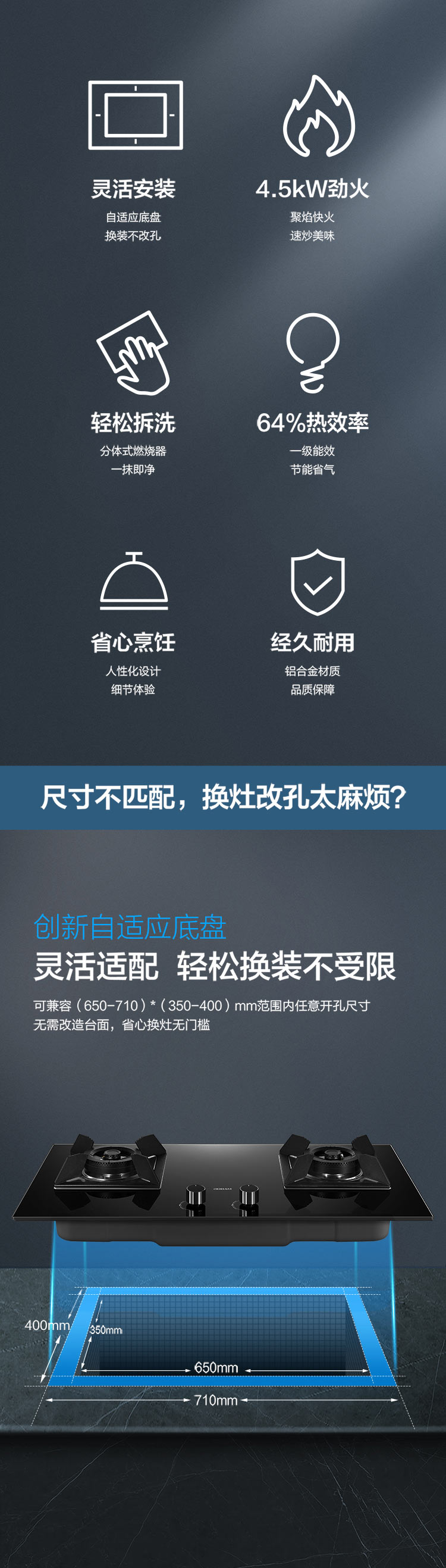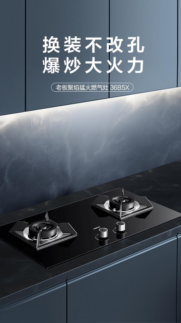 老板36B5X燃气灶煤气灶可调节嵌入式双灶天然气液化气官方旗舰店
