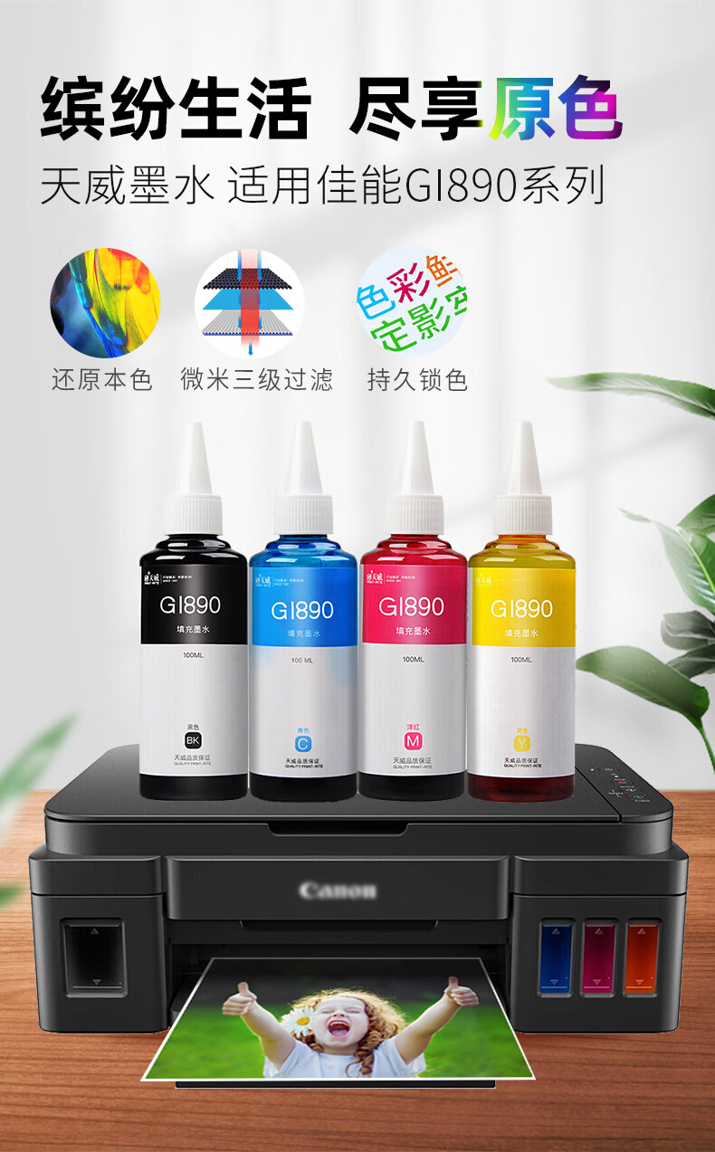 天威 GI890墨水 适用于佳能Canon G2810 G1810 G2800 G3800 G1800 G3810 G4810 G4800 喷墨打印机墨水