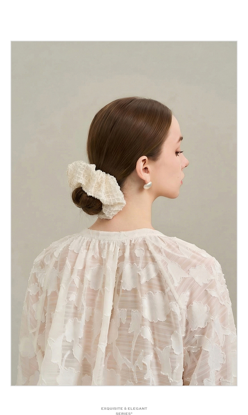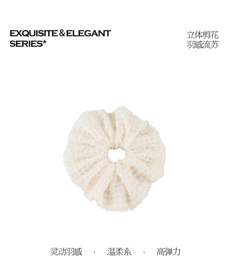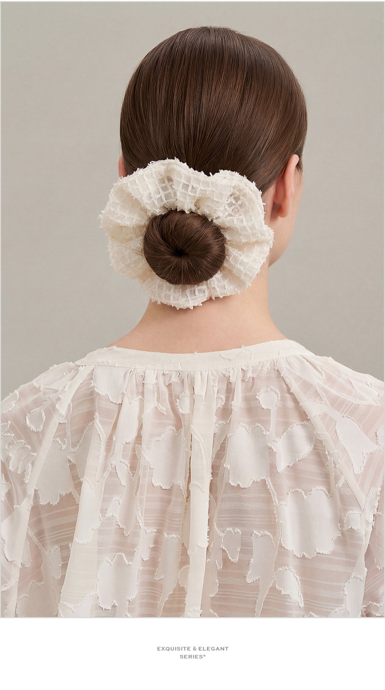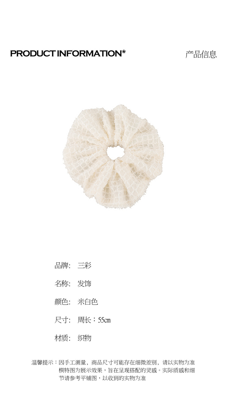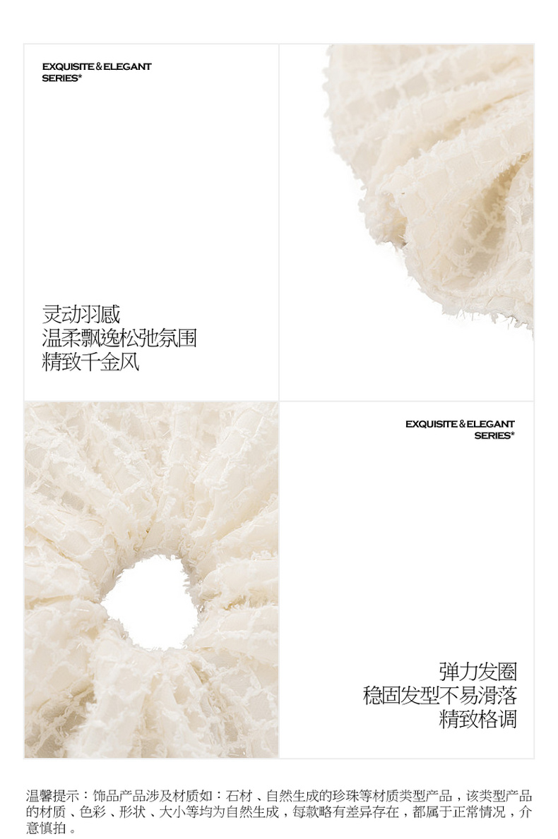三彩2026新款白色褶皱发圈丸子头皮筋头饰毛边大肠优雅韩系温柔女