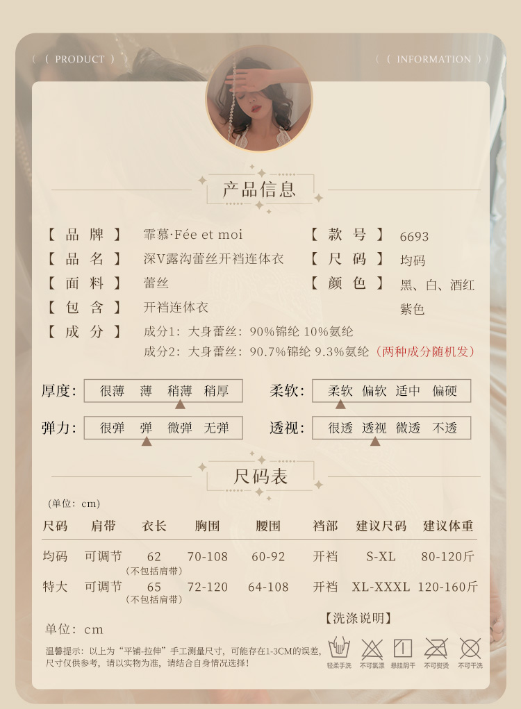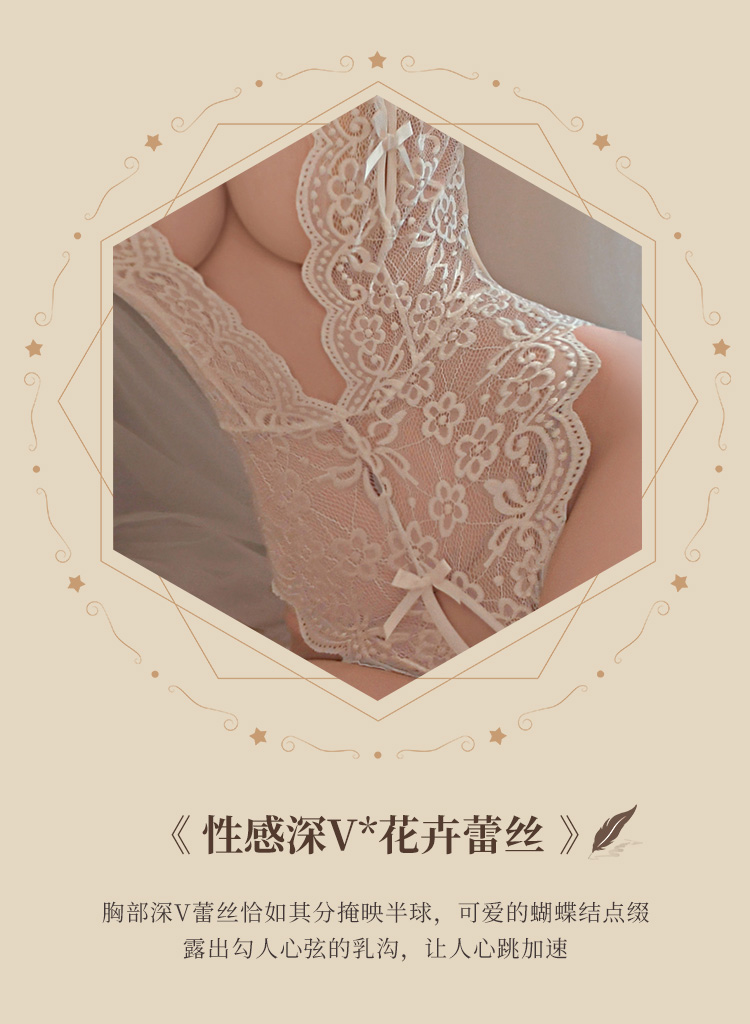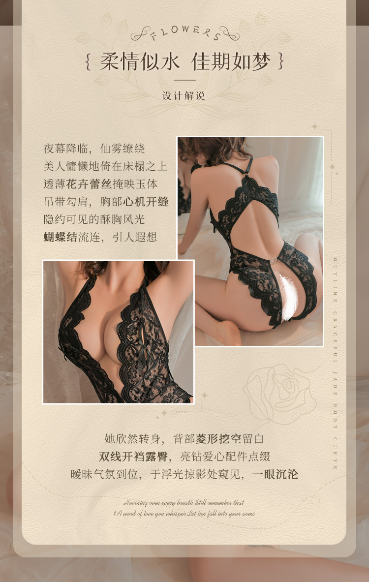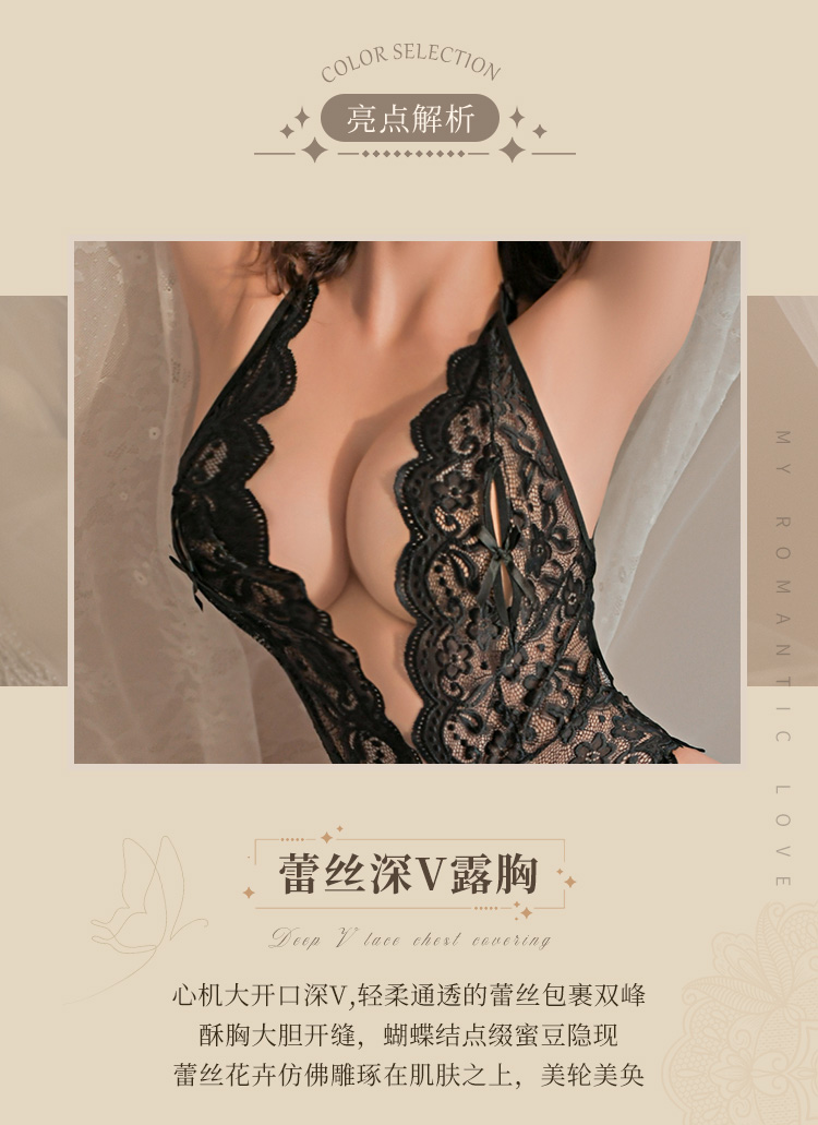 【情趣内衣】霏慕 深V露沟蕾丝开裆连体衣6693