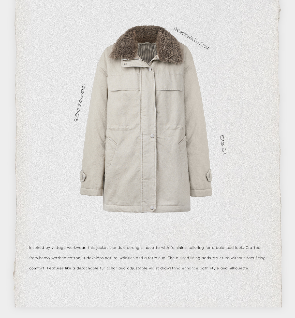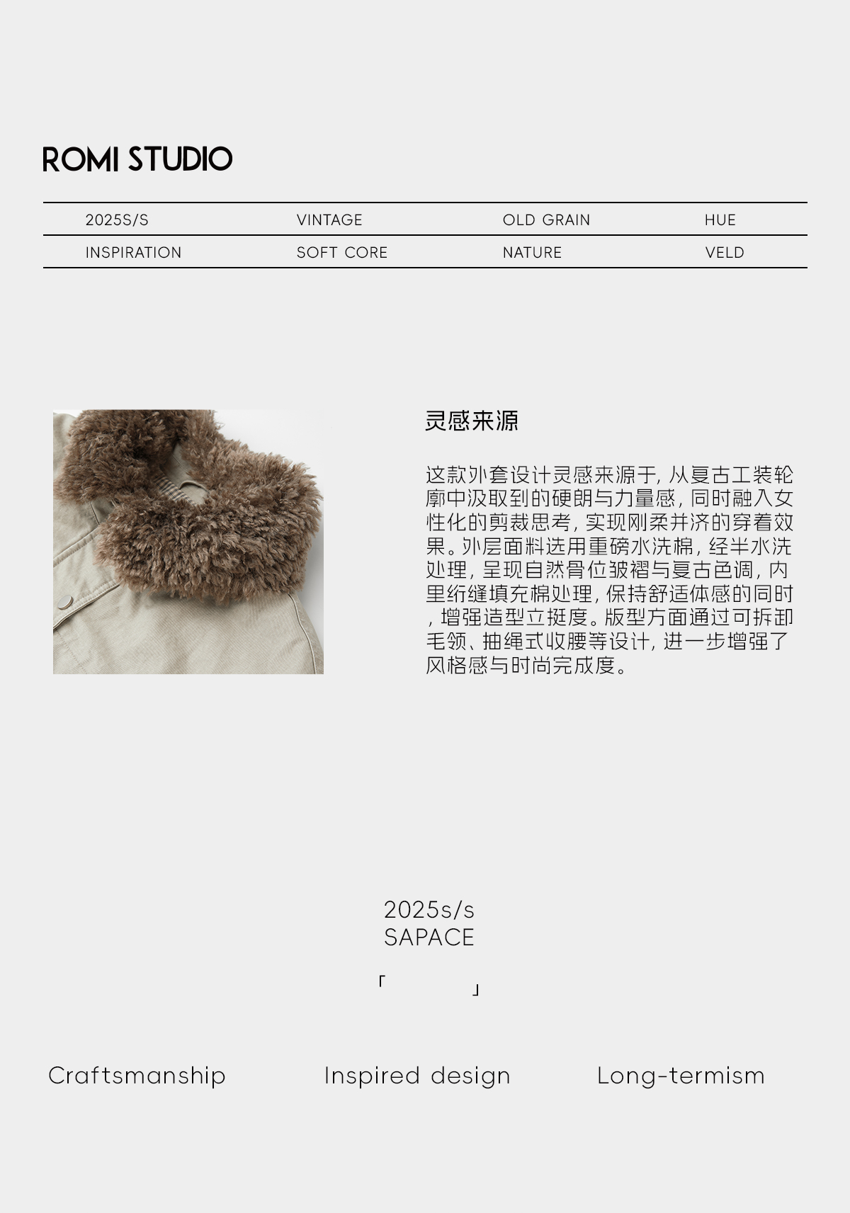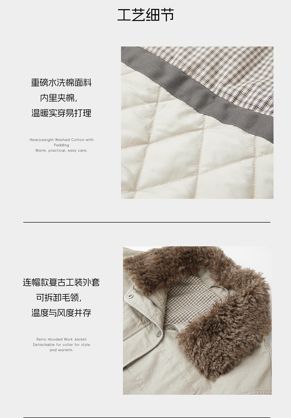 ROMI STUDIO“冬日温暖”复古洗水拆卸毛领厚款棉服外套RWCWWT6628
