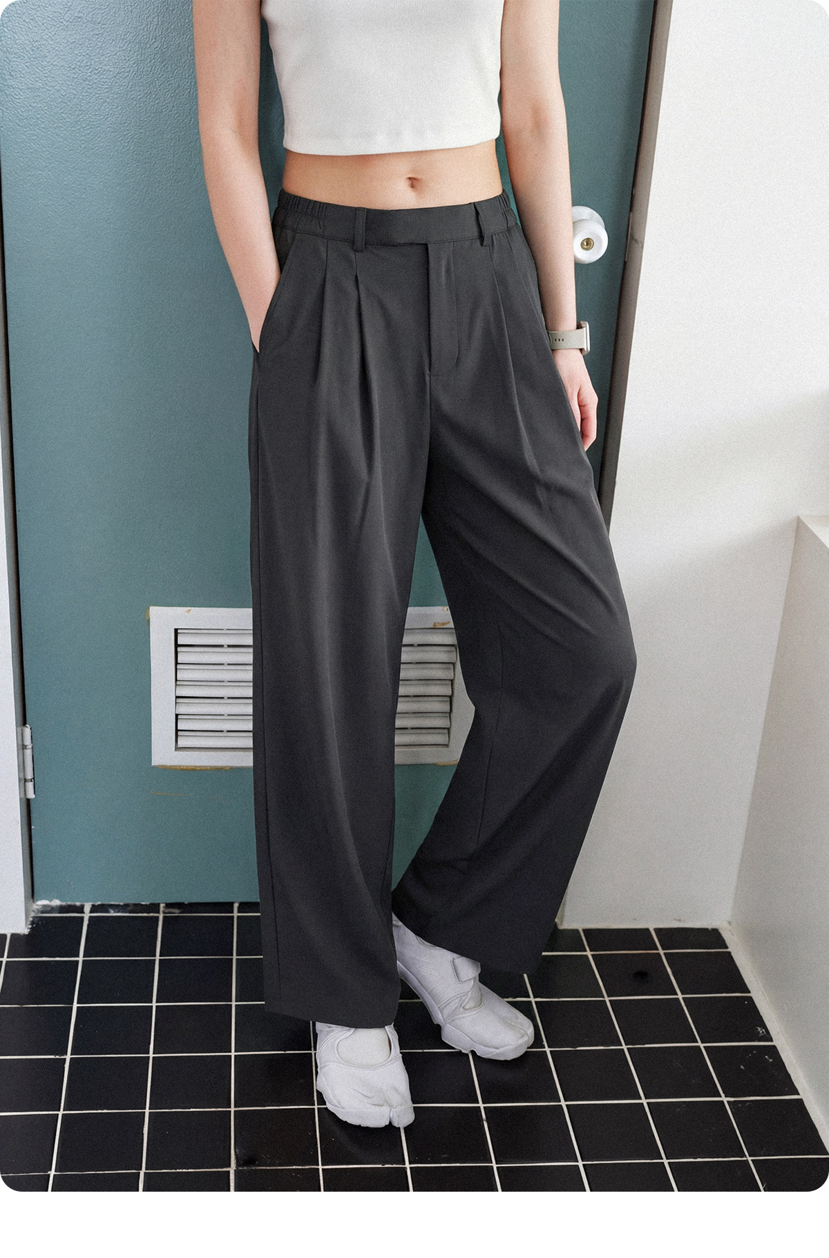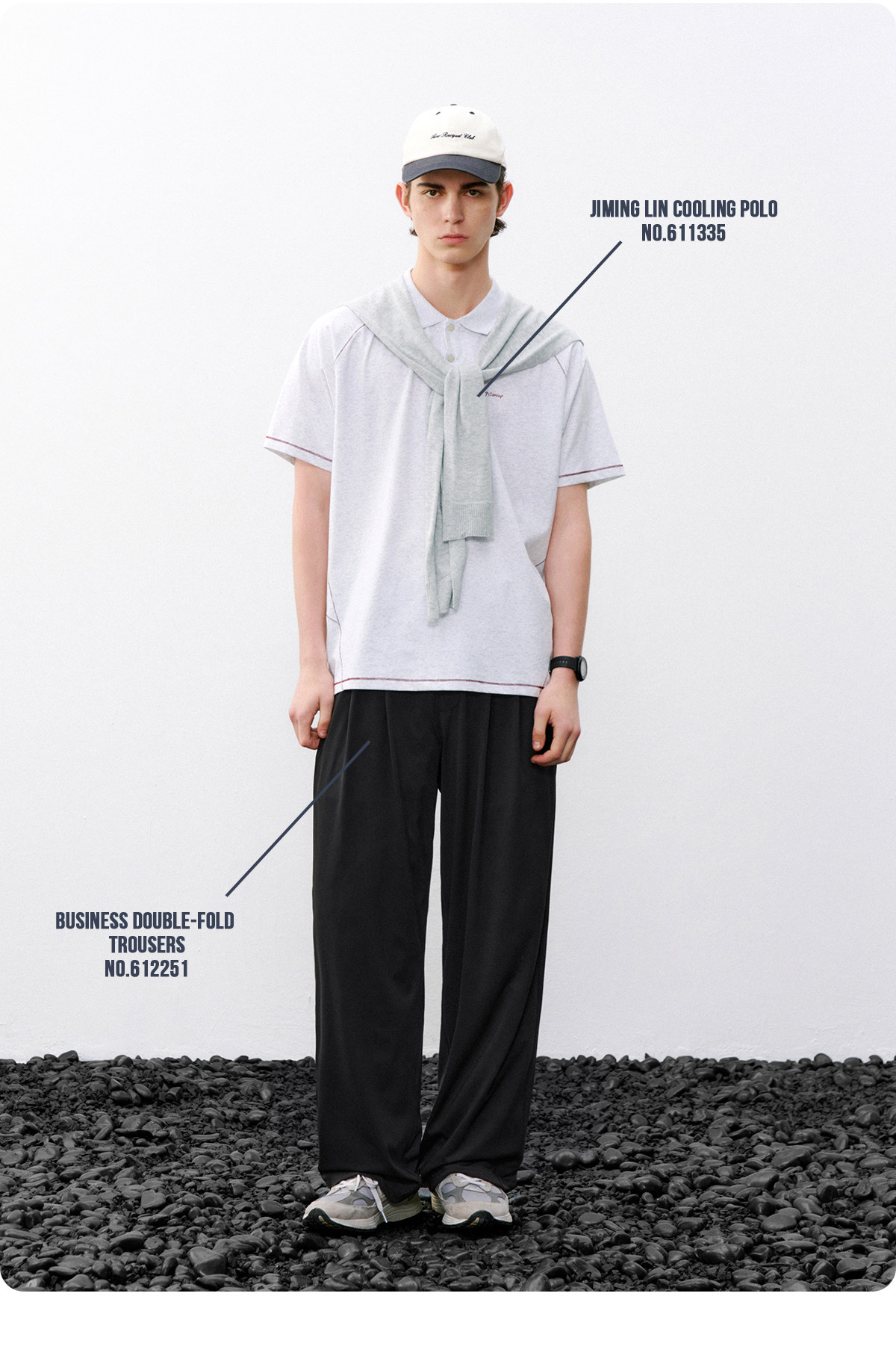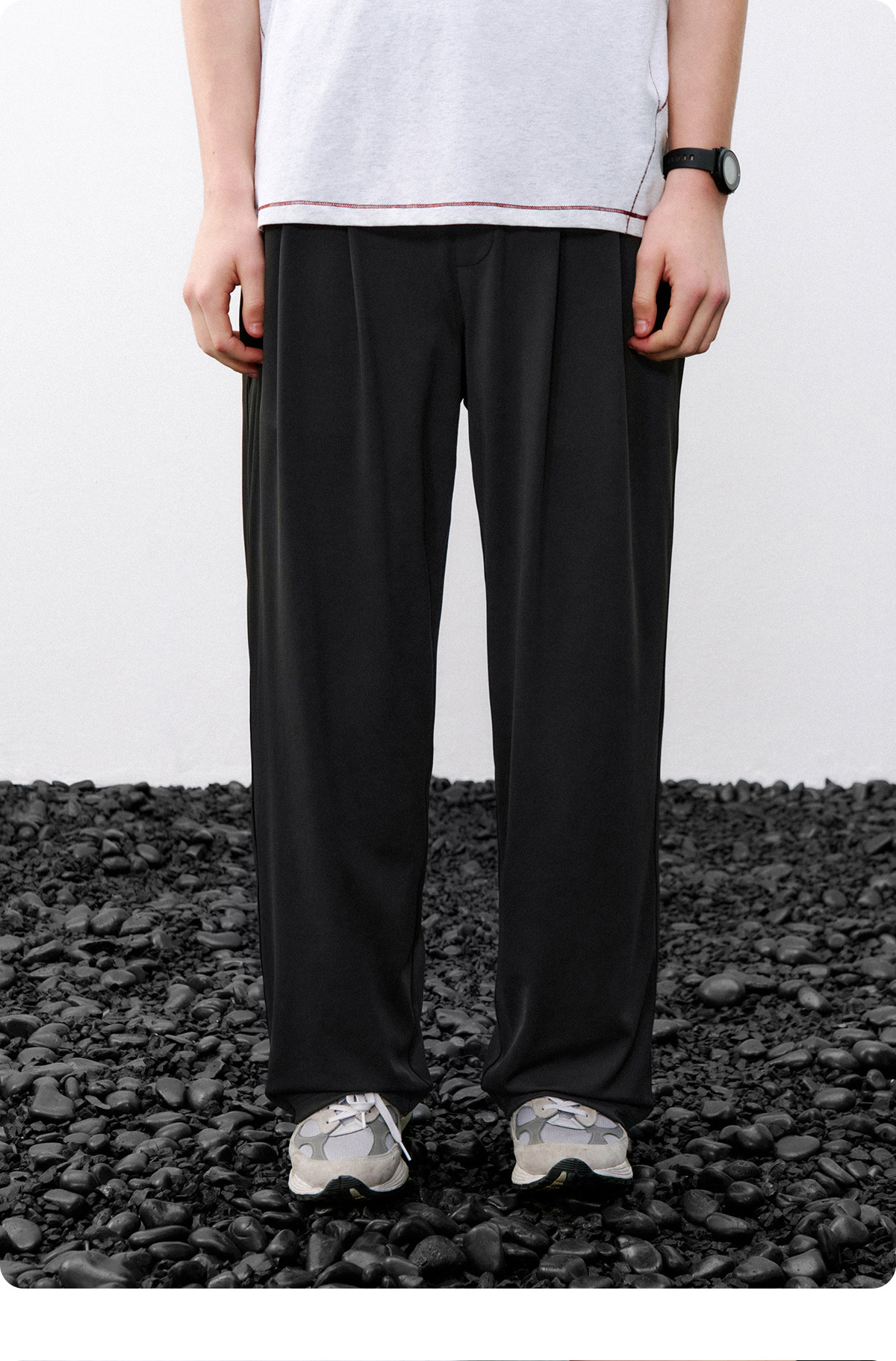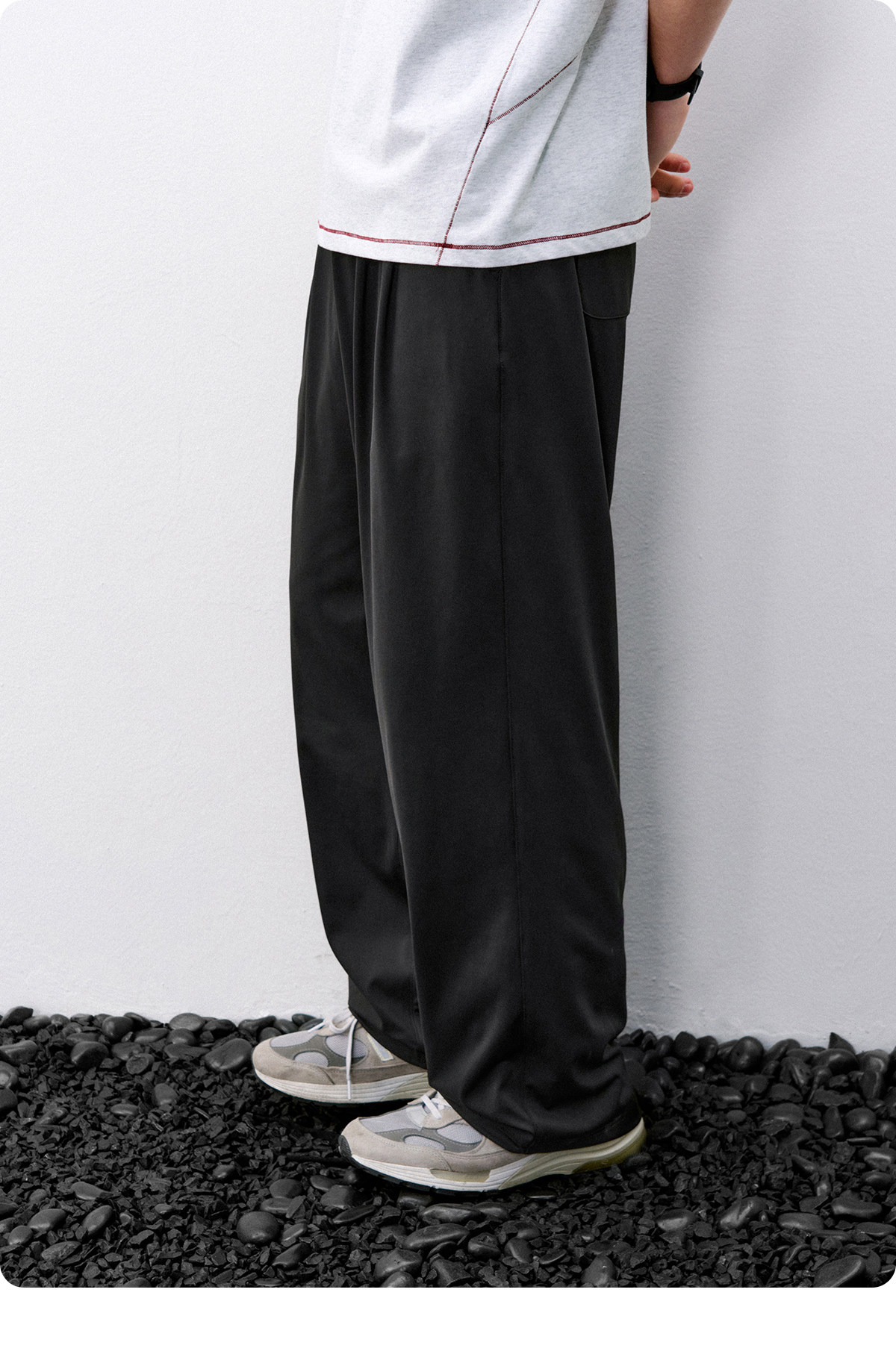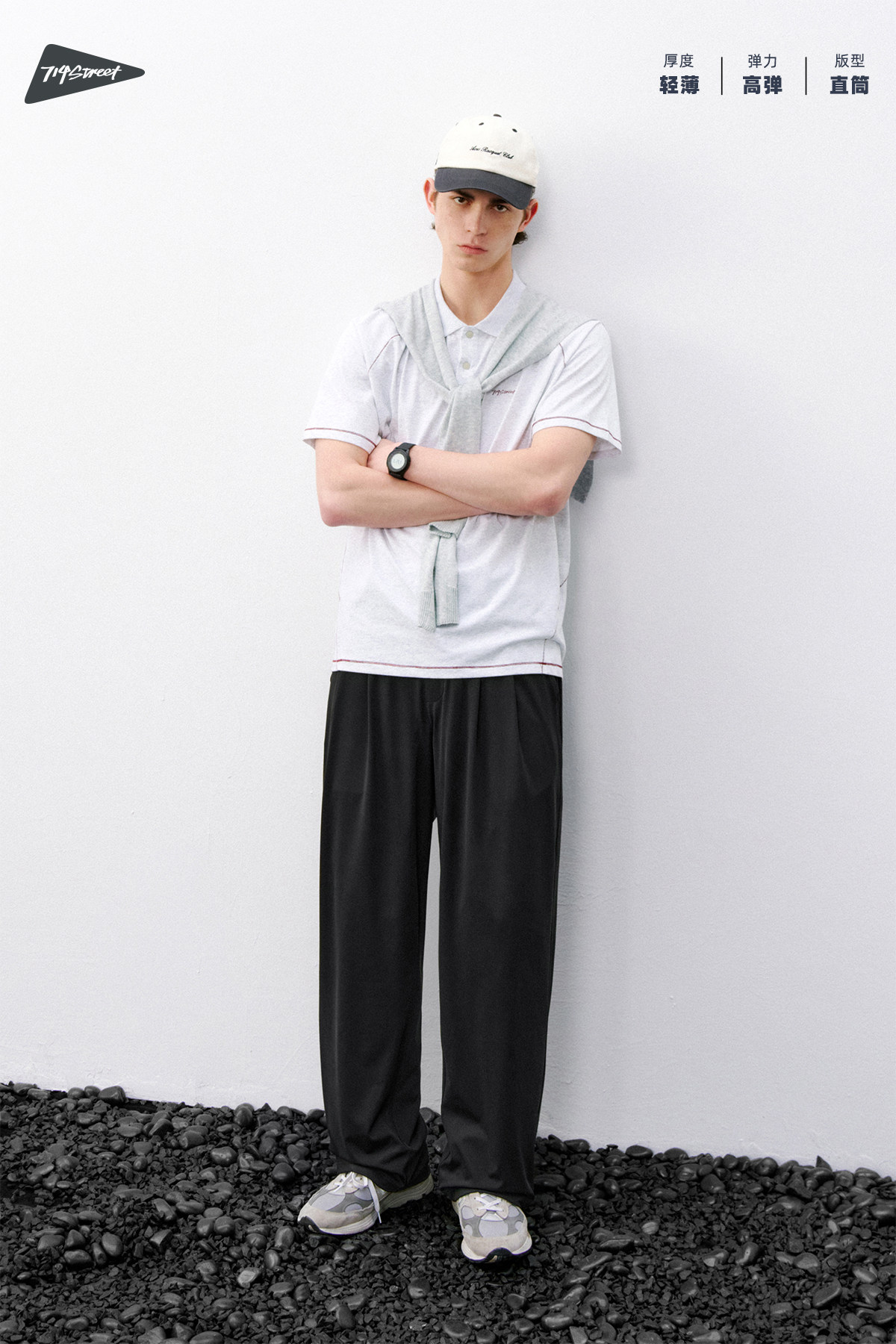 714street柔软舒适抗皱弹力双褶西裤2026夏季宽松显瘦男士休闲裤