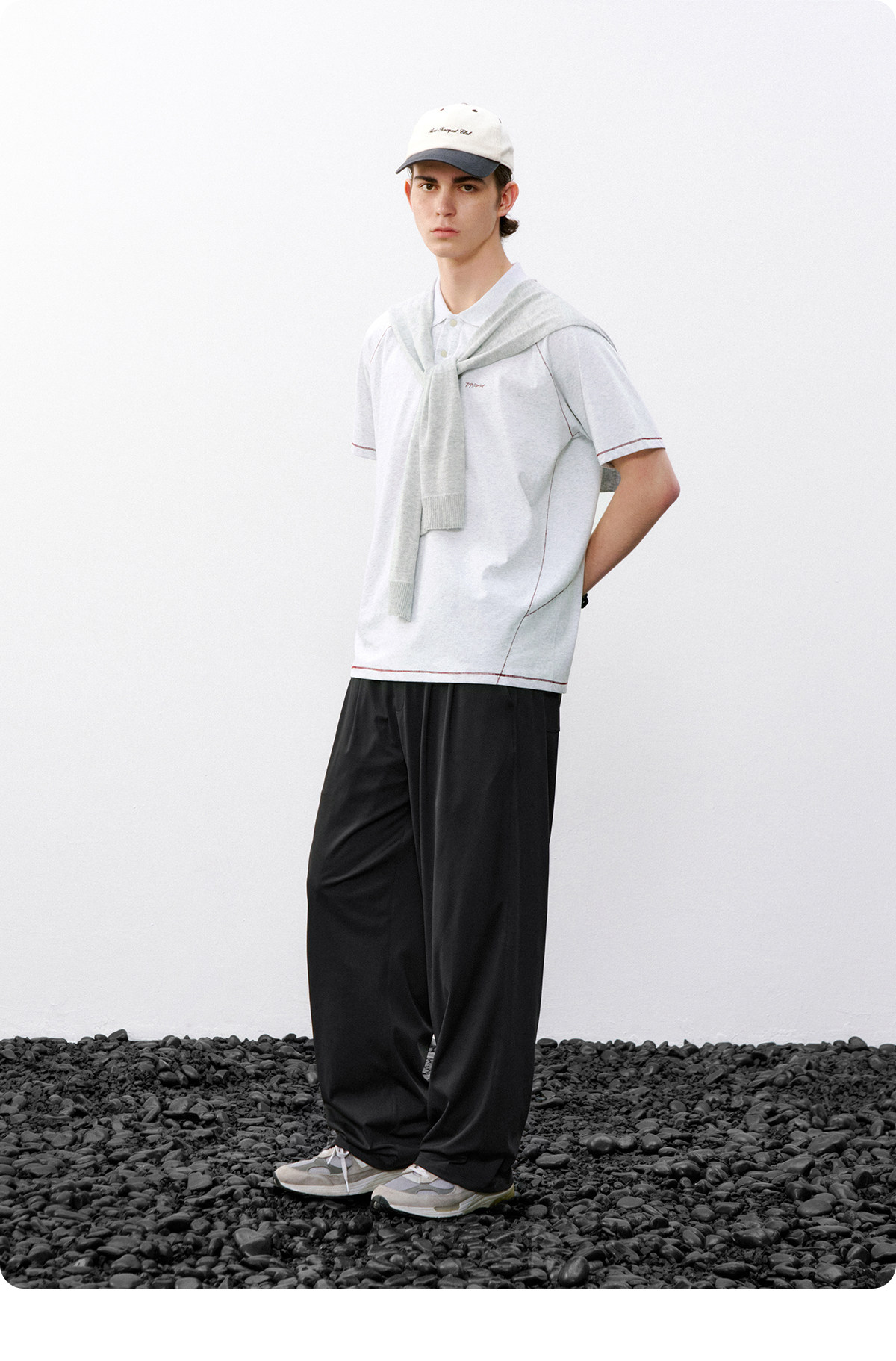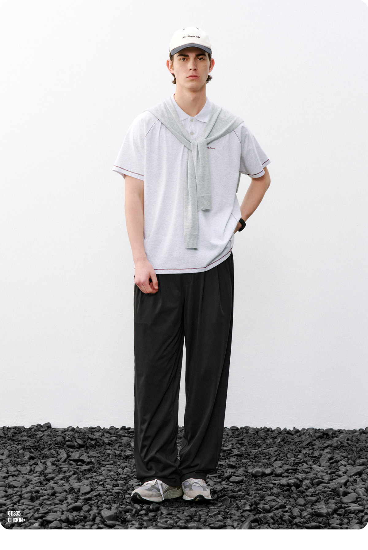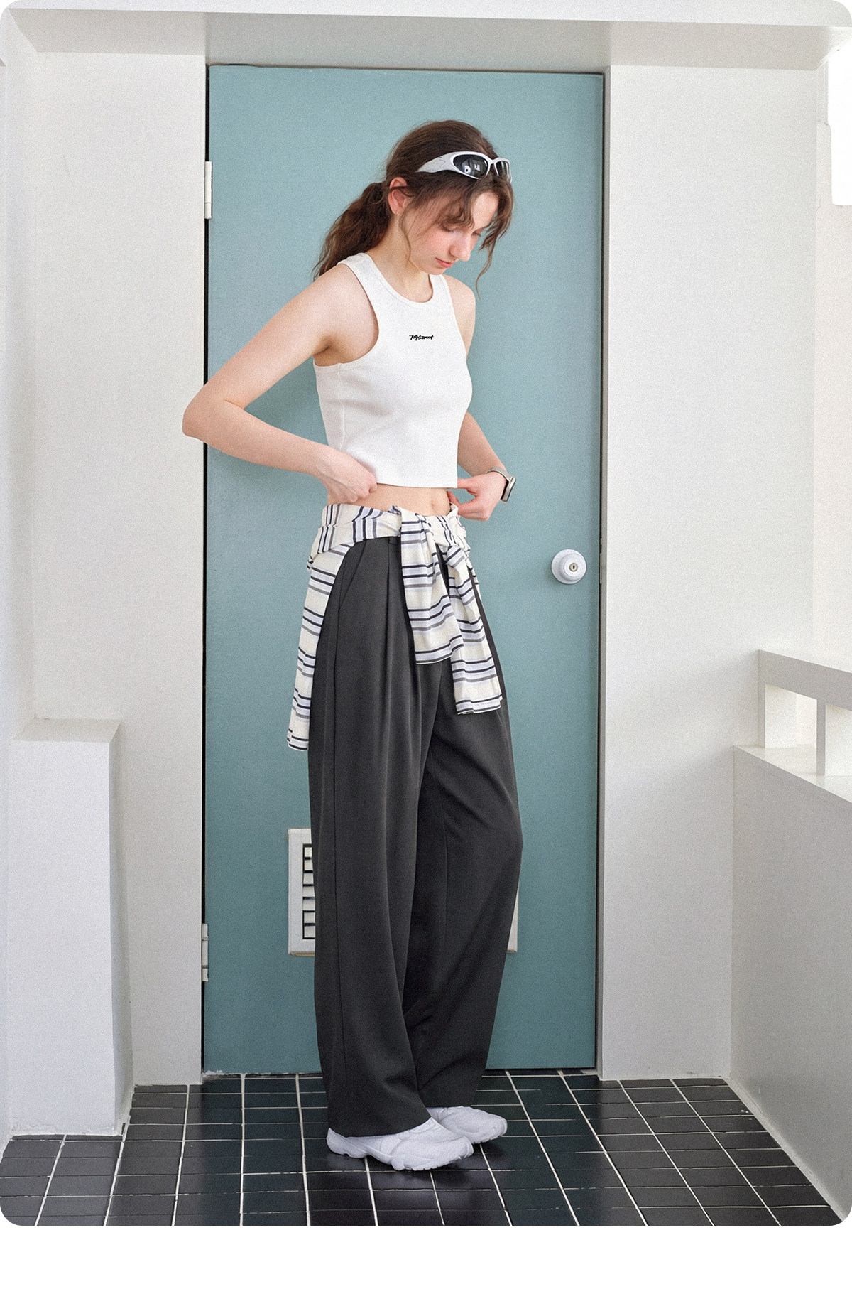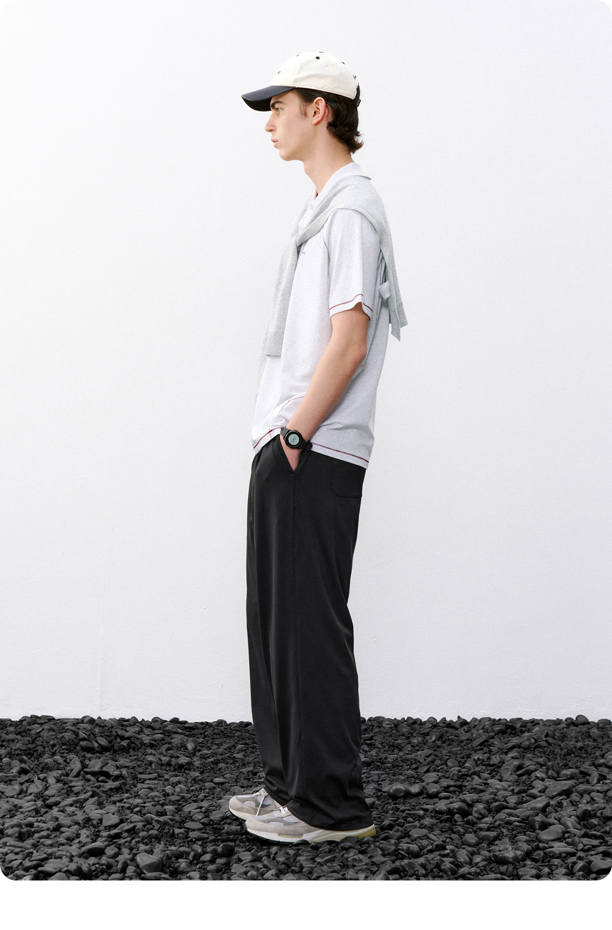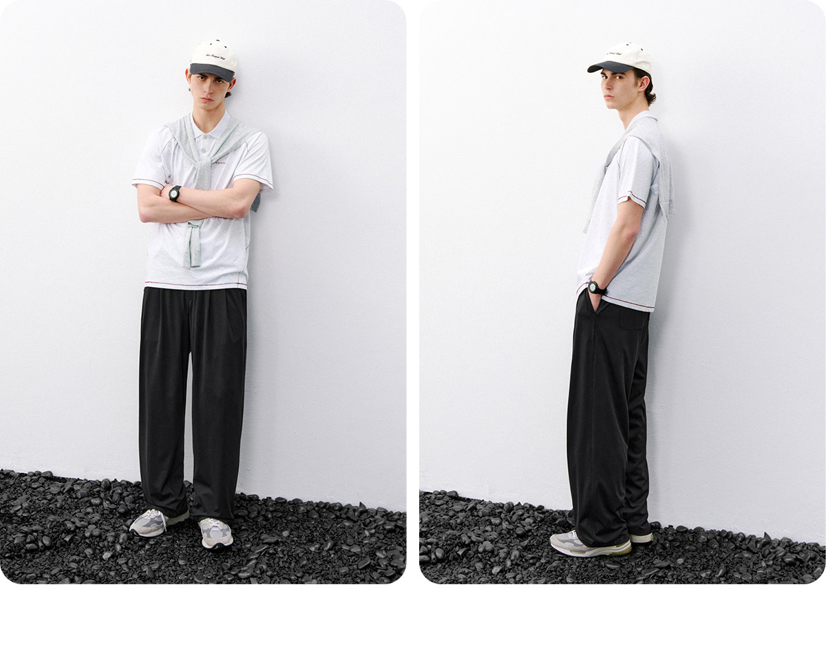 714street柔软舒适抗皱弹力双褶西裤2026夏季宽松显瘦男士休闲裤