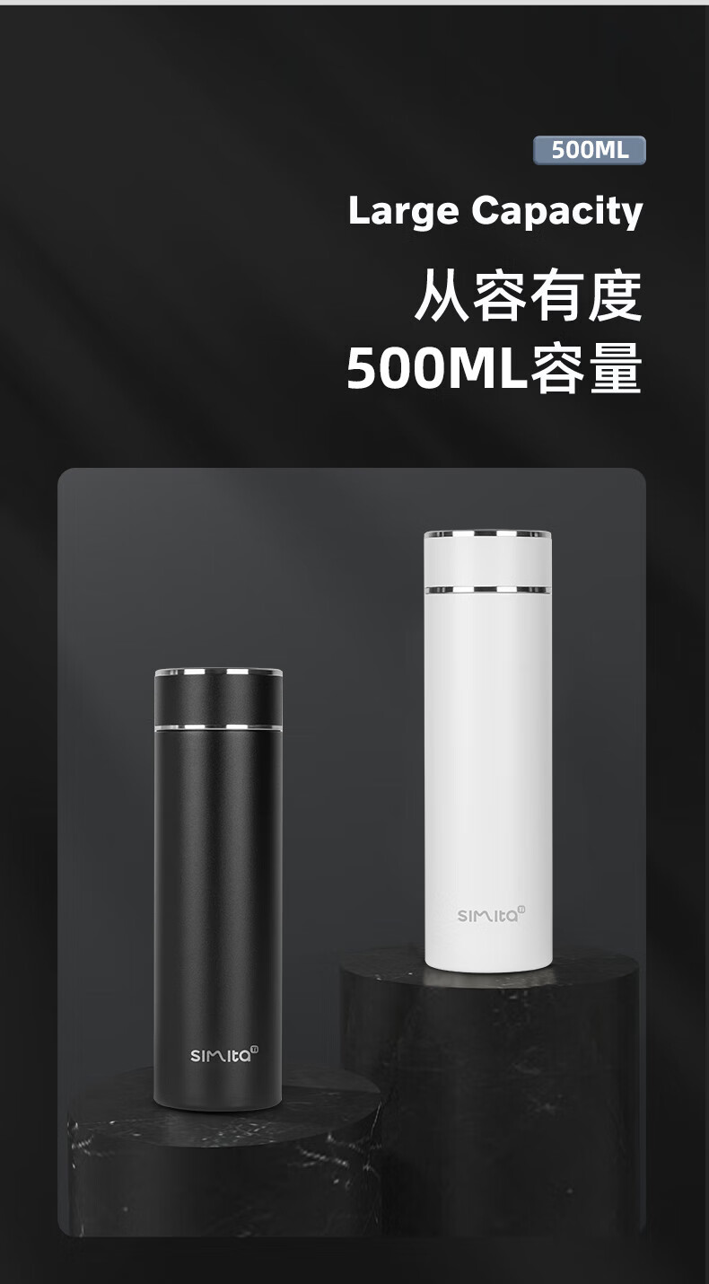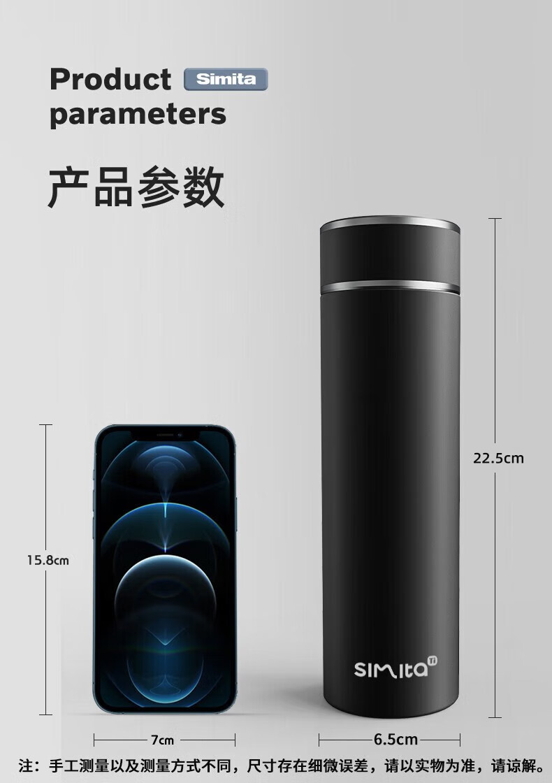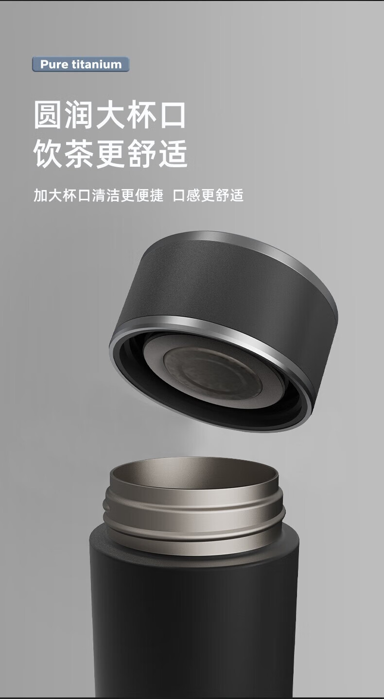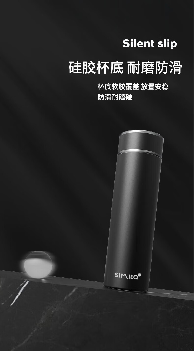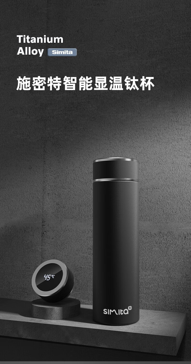 施密特(Simita)保温杯 纯钛内胆智能显温水杯泡茶杯男商务便携大容量带茶隔礼盒 尊贵黑MTi6002-048A