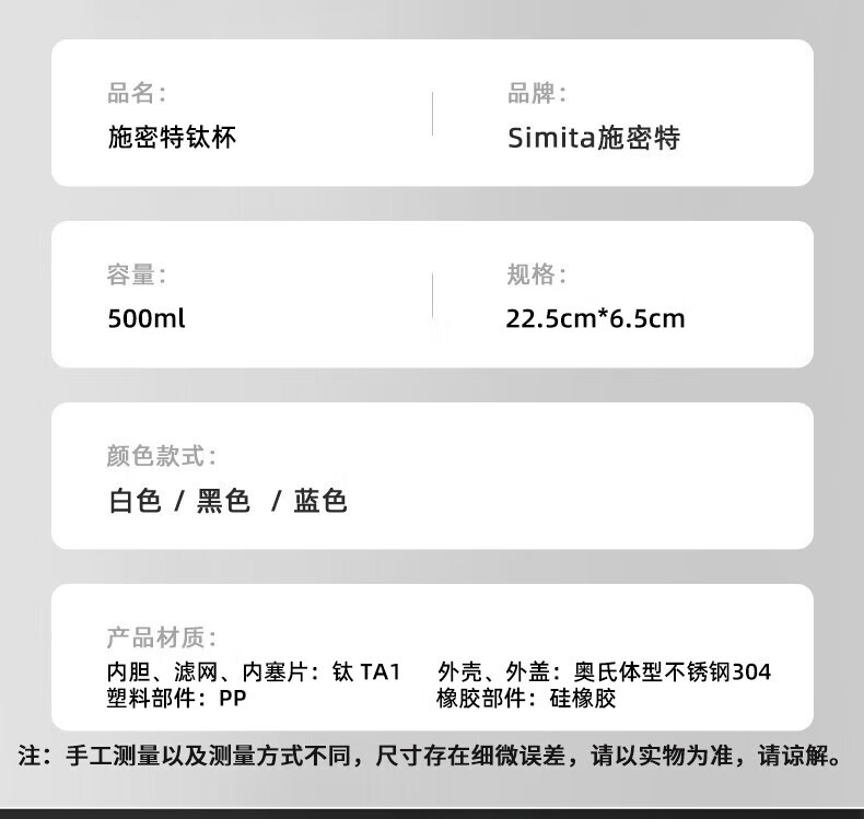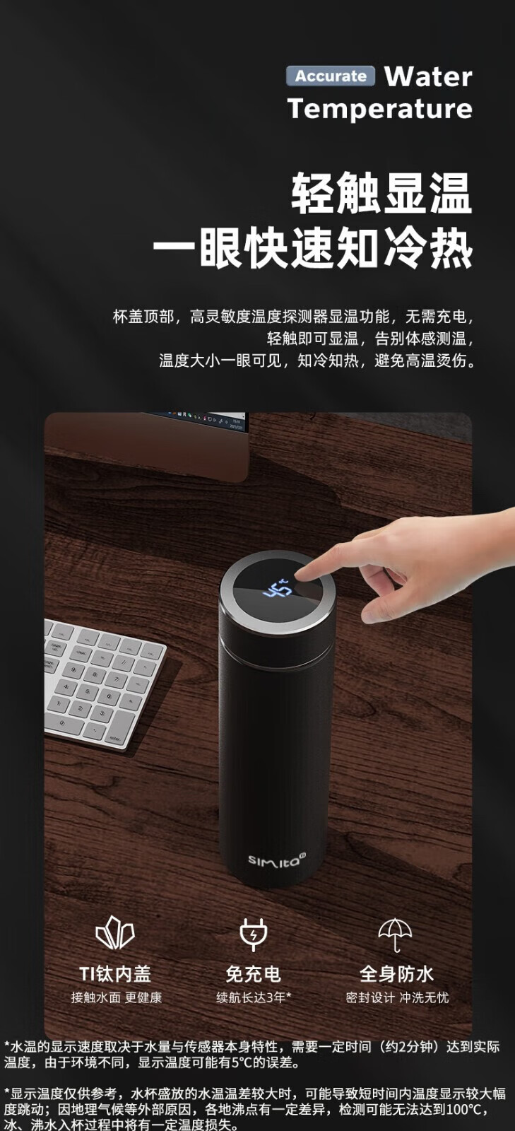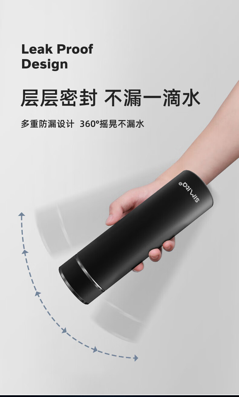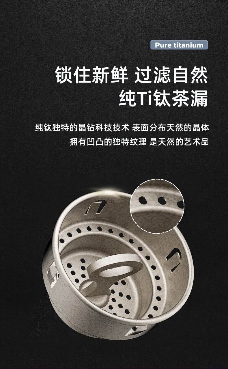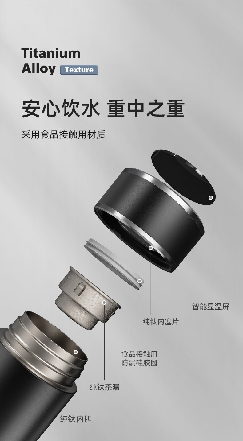 施密特(Simita)保温杯 纯钛内胆智能显温水杯泡茶杯男商务便携大容量带茶隔礼盒 尊贵黑MTi6002-048A