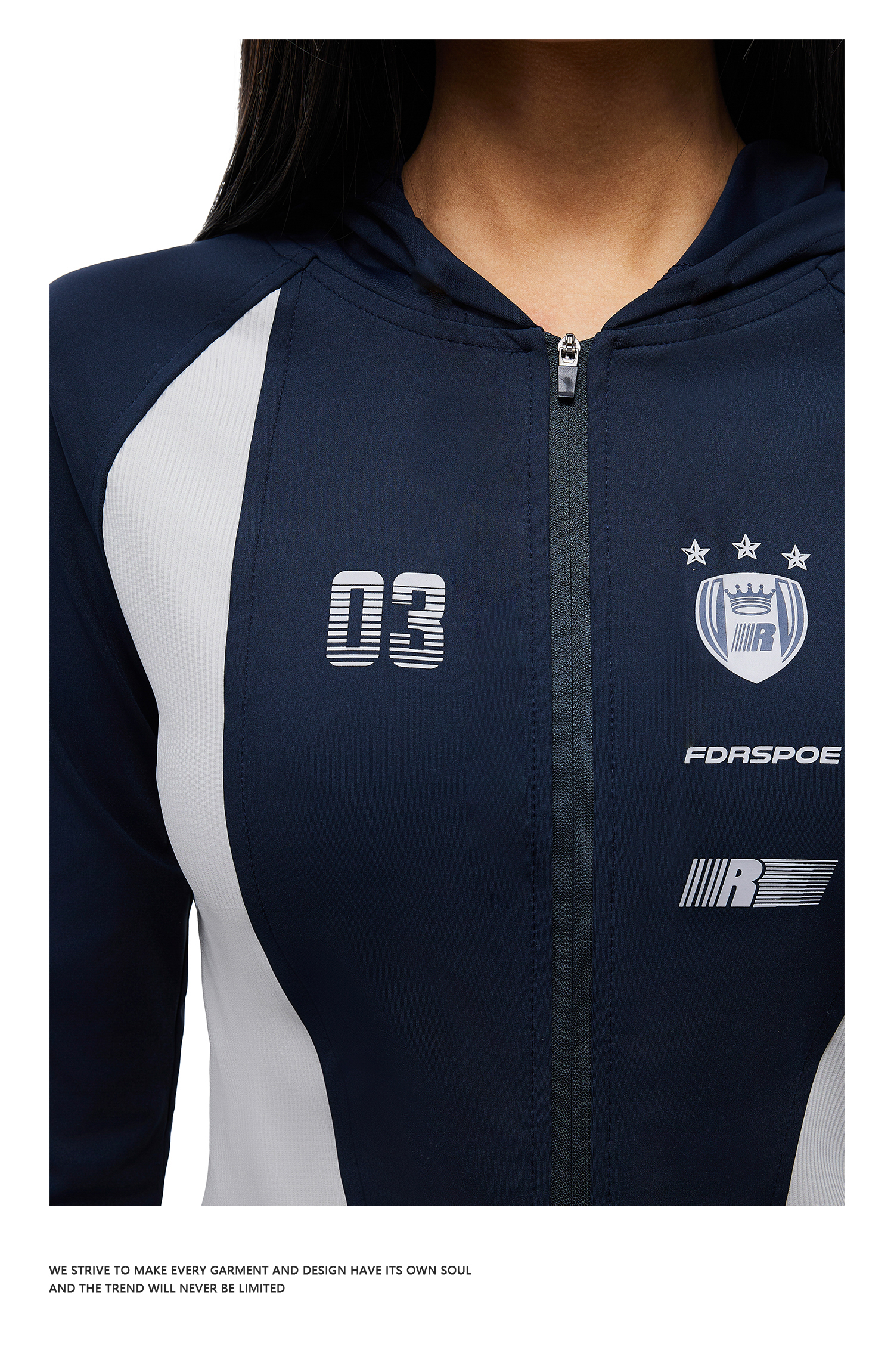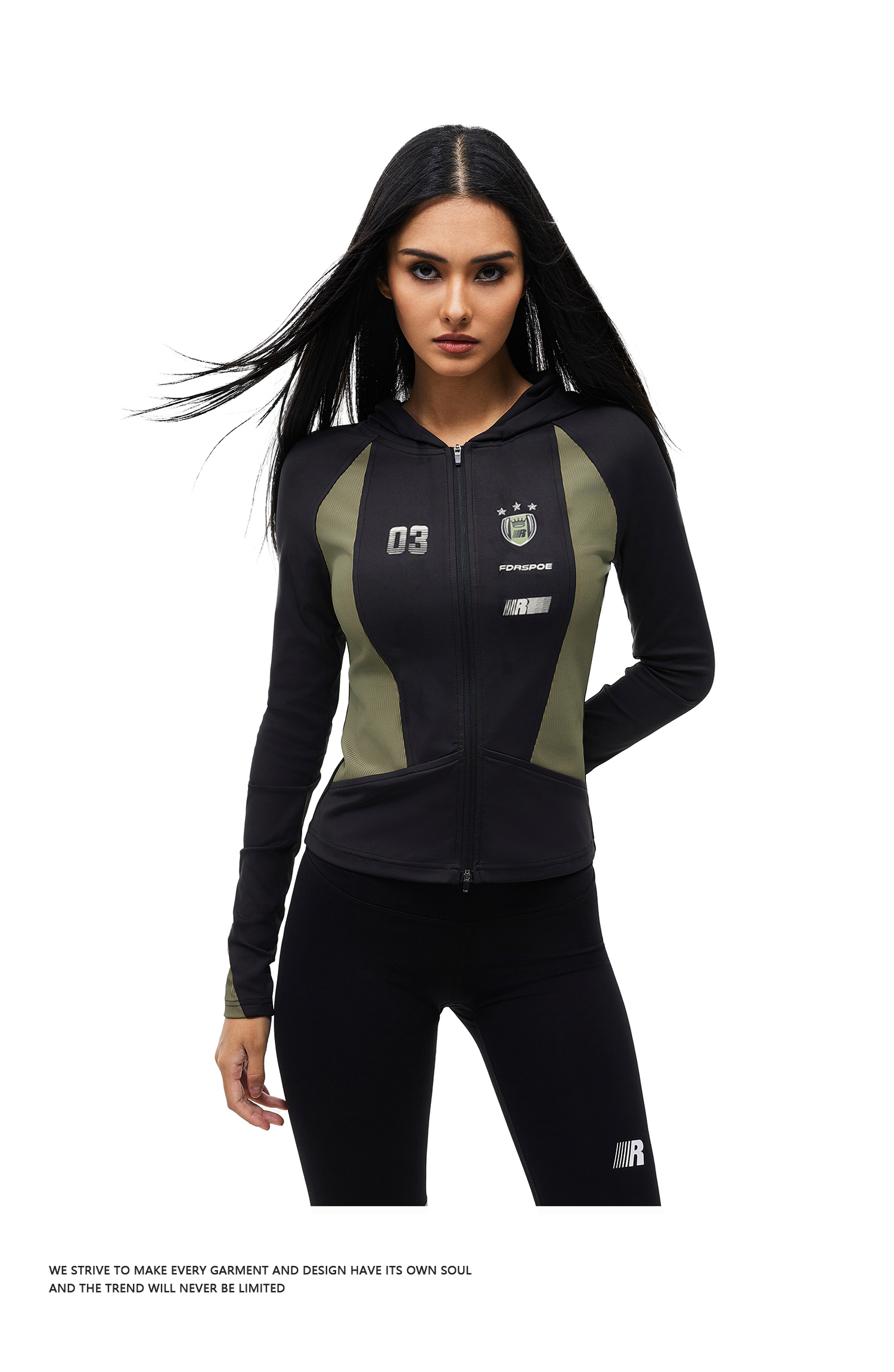 FDR官方店 美式复古撞色拼接速干连帽卫衣女秋季骑行运动上衣外套