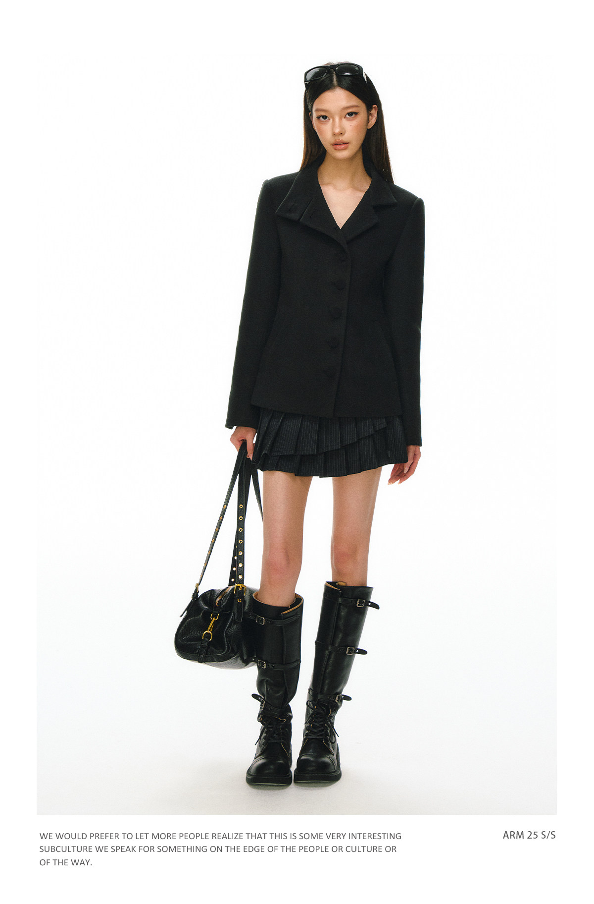 Ariseism 美式复古半高领包扣外套呢子大衣女冬季新款外套