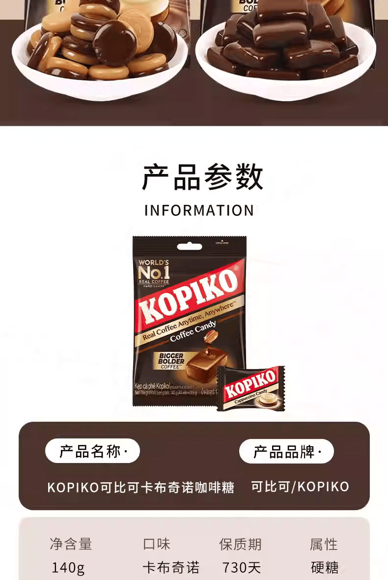 【香港直邮】Kopiko卡布奇诺咖啡糖 50粒 KOPIKO Cappuccino Coffee Candy