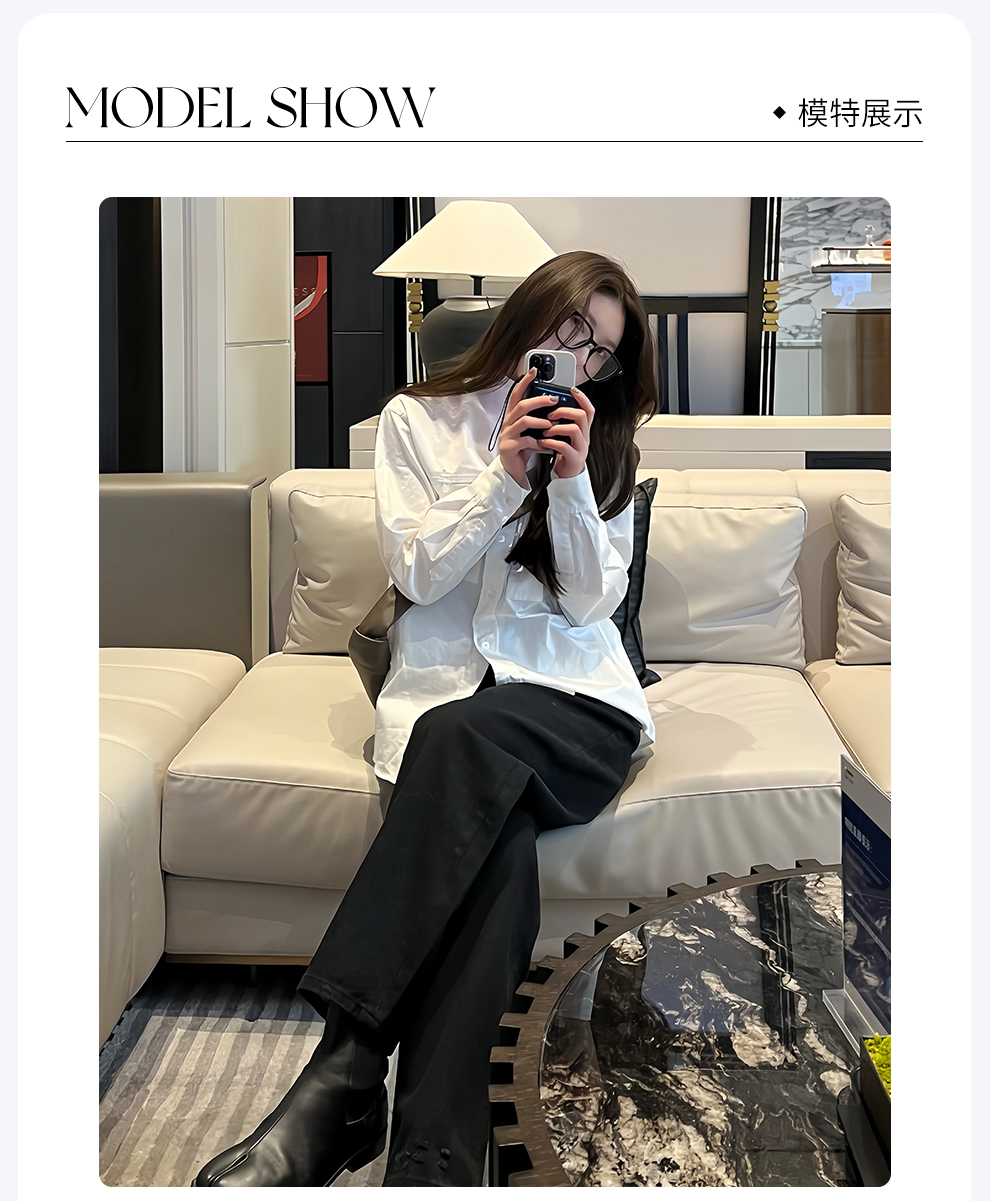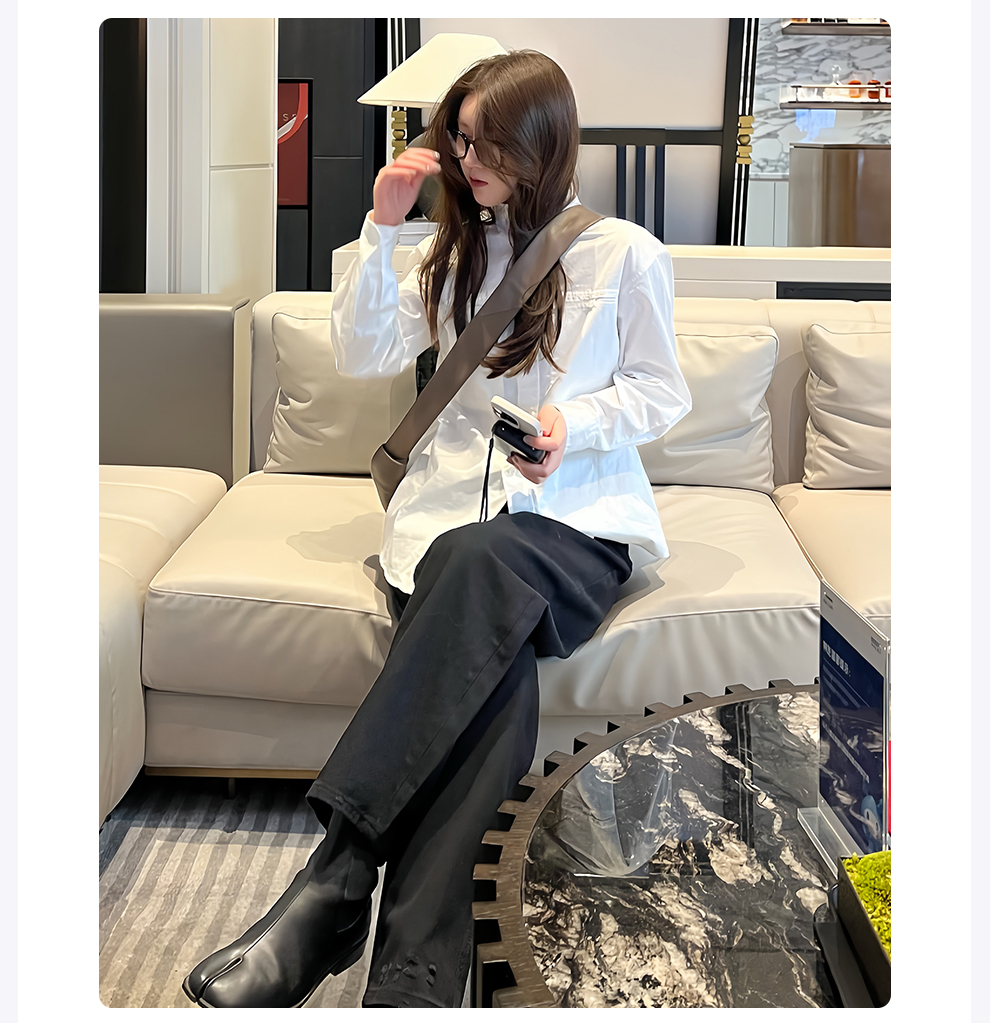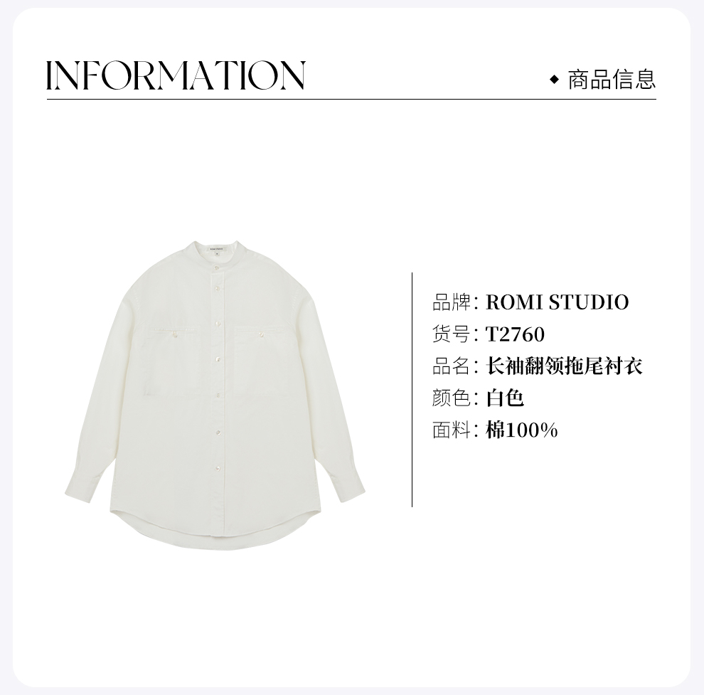 ROMI STUDIO“随手穿”100%府绸棉 宽松廓形立领口袋白色衬衣T2760