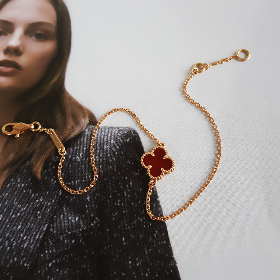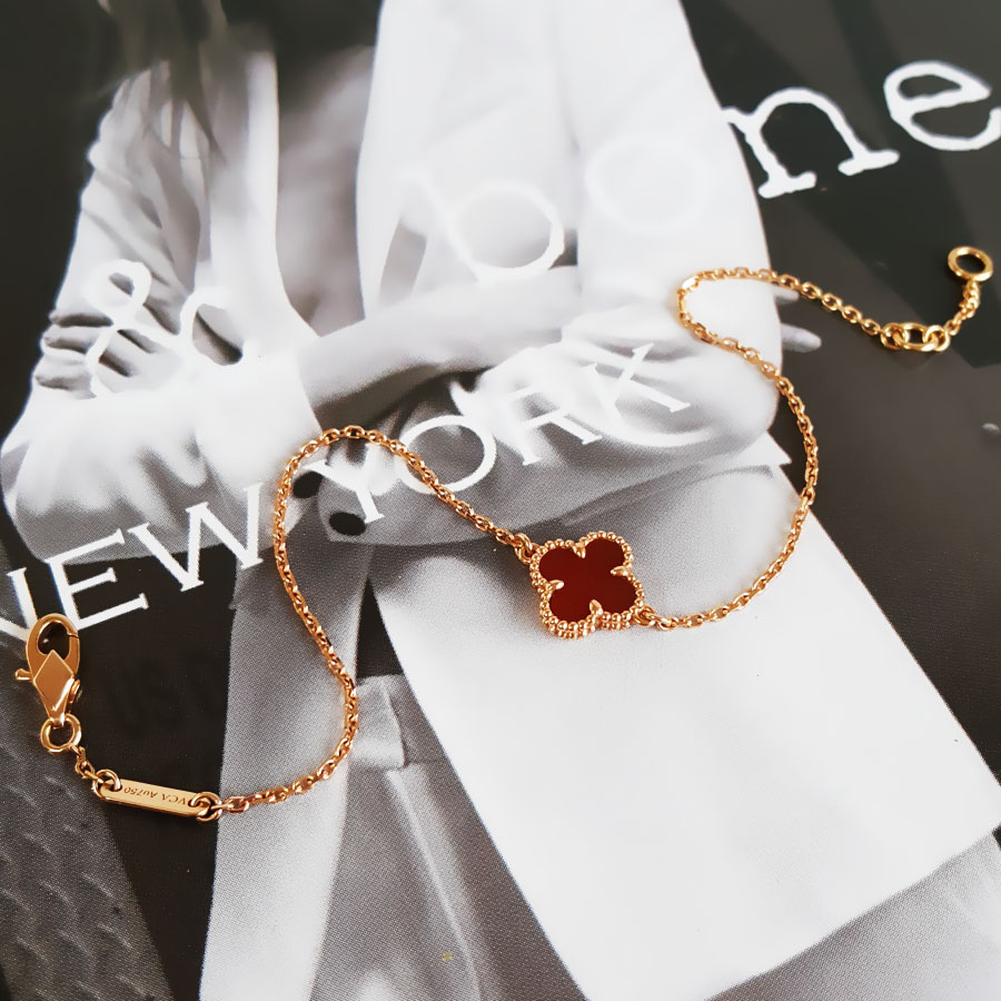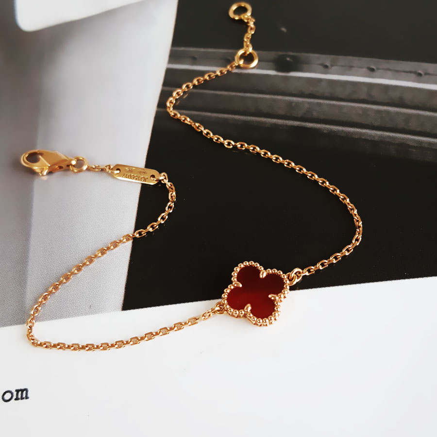 款式 | 18K玫瑰金小号红玉髓四叶草小红花手链 |