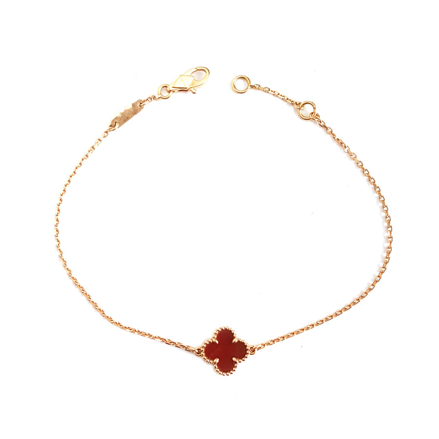 【98新闲置】VCA梵克雅宝Sweet Alhambra手链VCARN59K00 18K玫瑰金小号红玉髓四叶草小红花手链 链长16-17.5cm女士070226TJ24